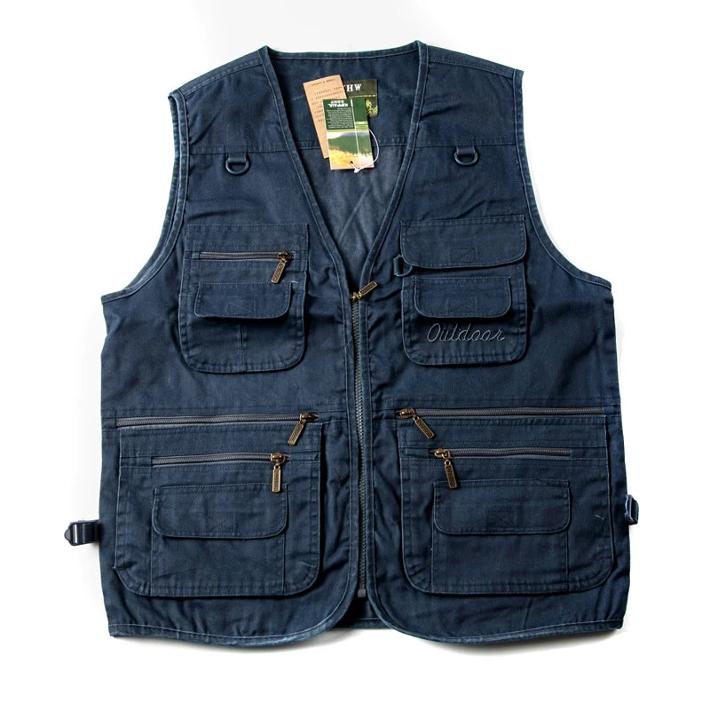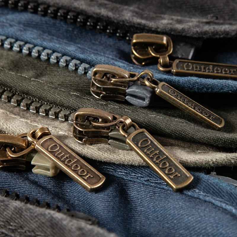 American Workwear Retro Metal Zipper Three-dimensional Pocket Cotton Men Women Tactical V-neck Vest Jacket Aesthetic Urban Chic
