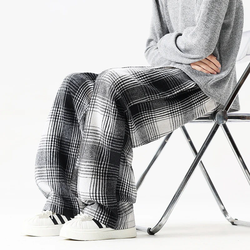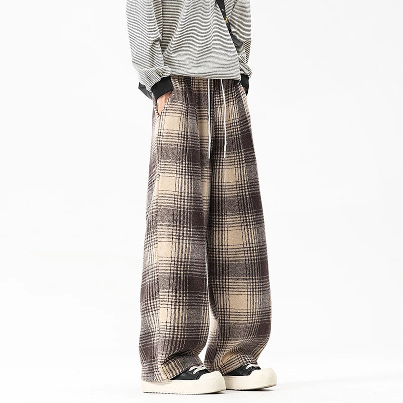 Autumn Thick Pants Men Warm Fashion Retro Plaid Pants Men Japanese Streetwear Loose Wide Leg Pants Men Vintage Trousers M-3XL