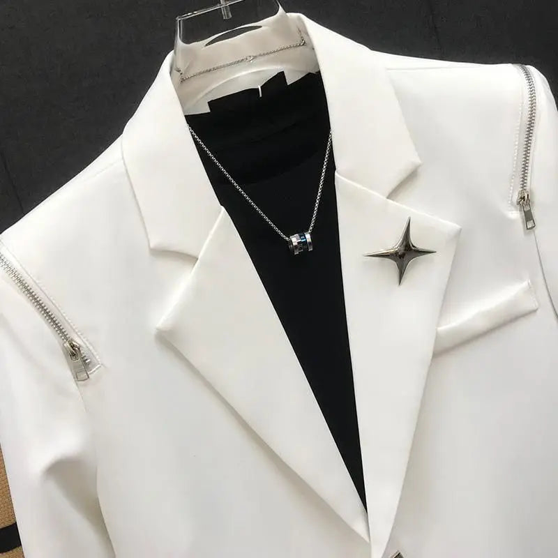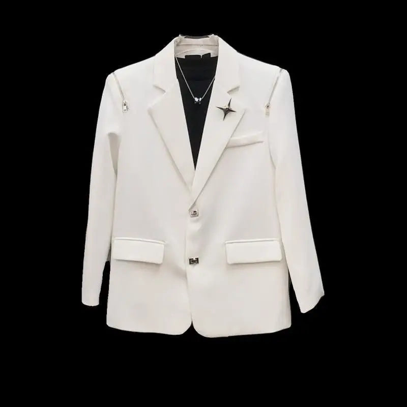Japanese Niche Design Suit Jacket Loose High-end Metal Buckle Trendy Shoulder Pad Long Sleeved Zipper Decoration Suit