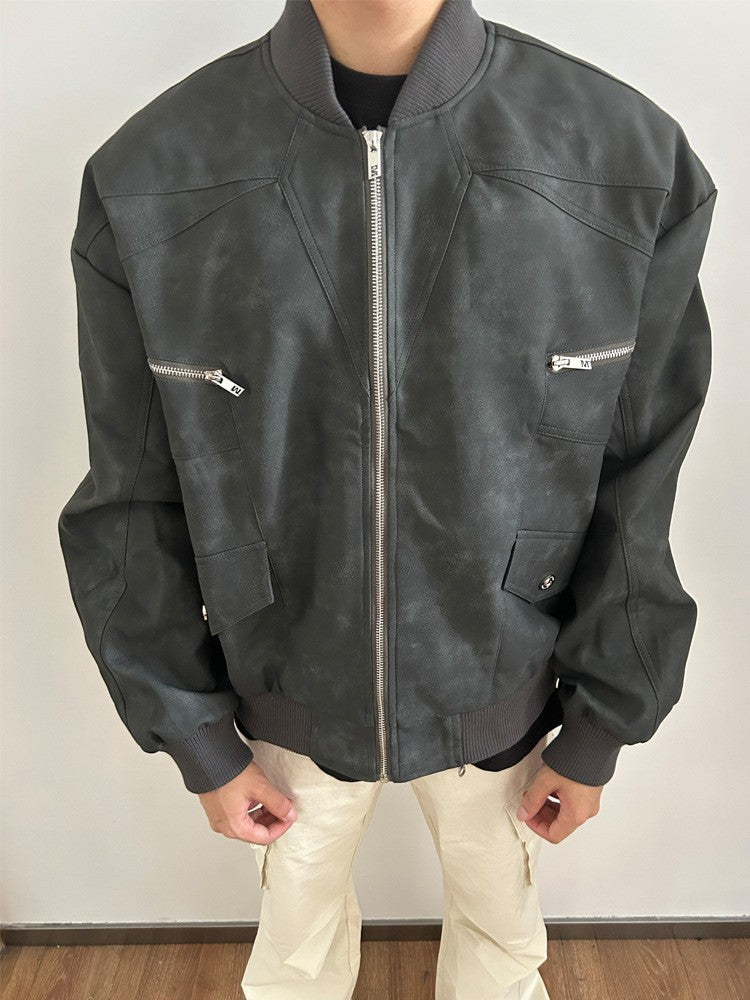Autumn and winter design niche high-end American street retro zipper pocket suede jacket unisex jacket