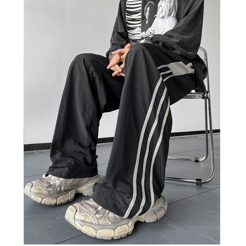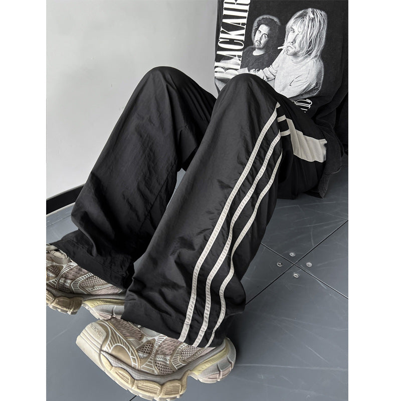 American retro spring and autumn wide-leg oversize design striped assault pants loose versatile casual trousers