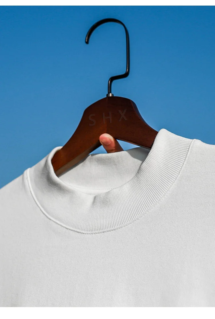 American Classical Small Neck T-shirt 300g Heavy 100% Cotton Short Sleeve T-shirt Men's Summer Leisure Loose Basic Top Tees