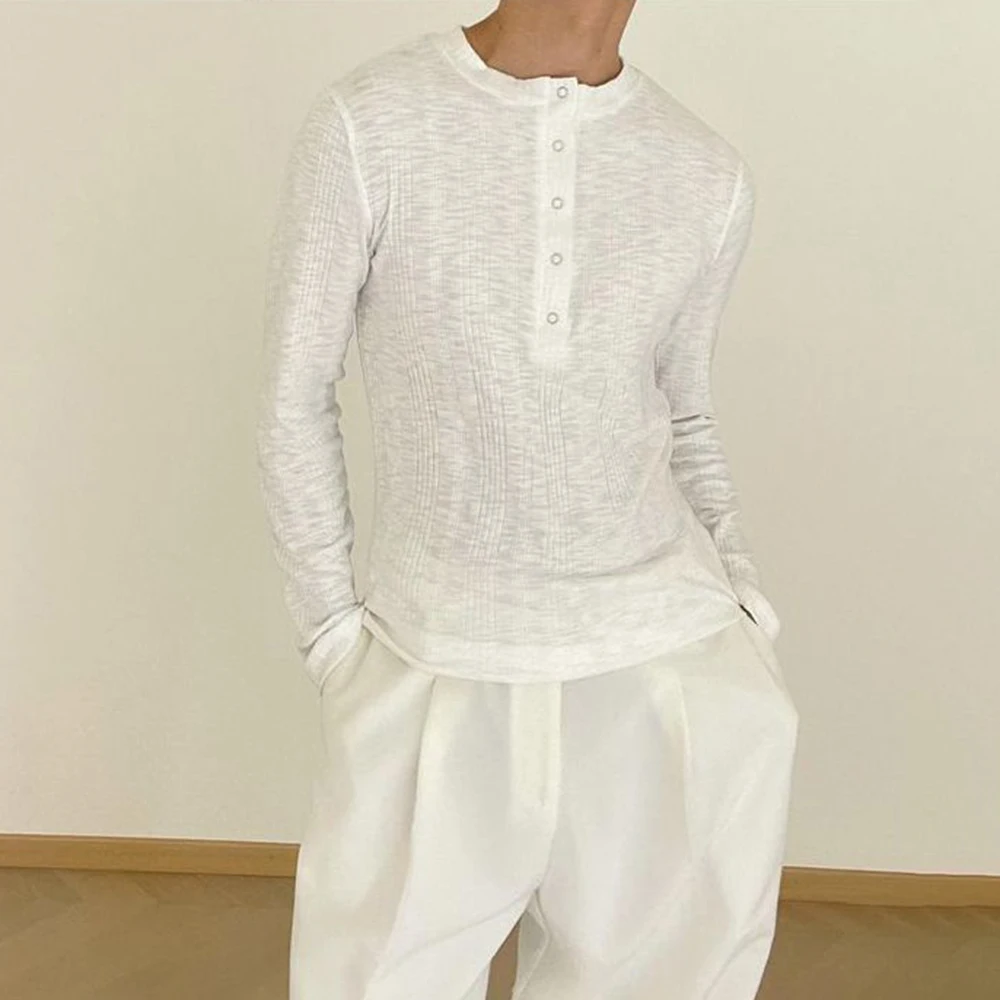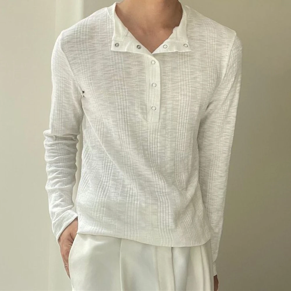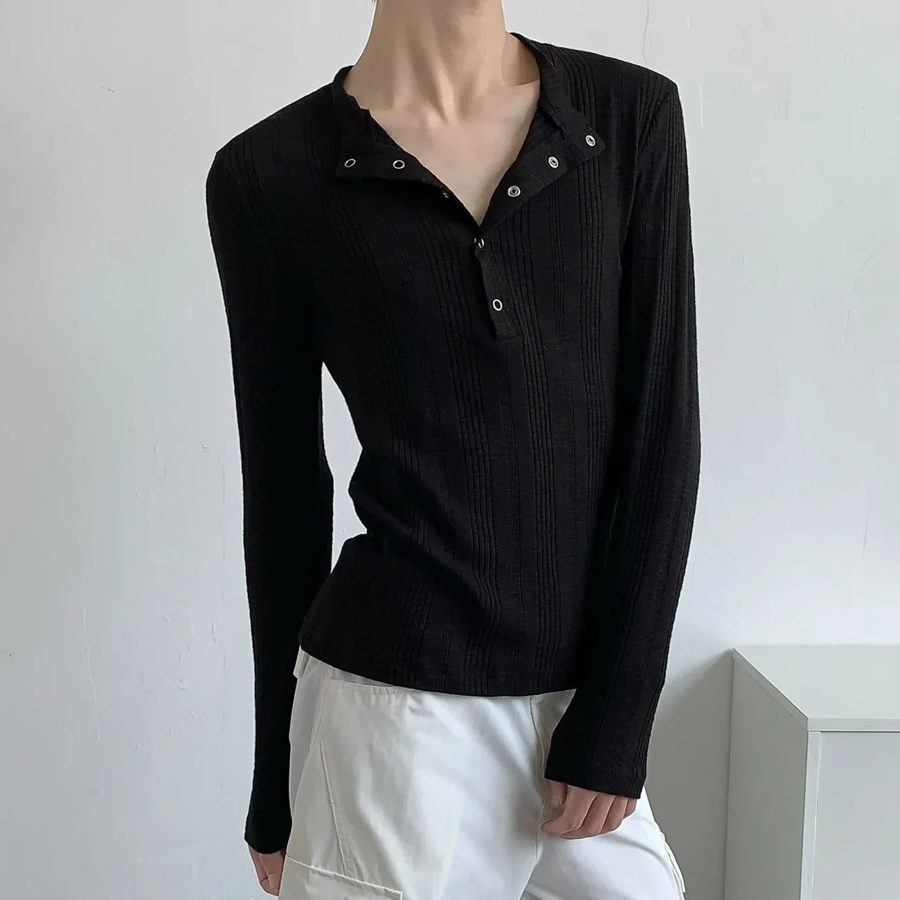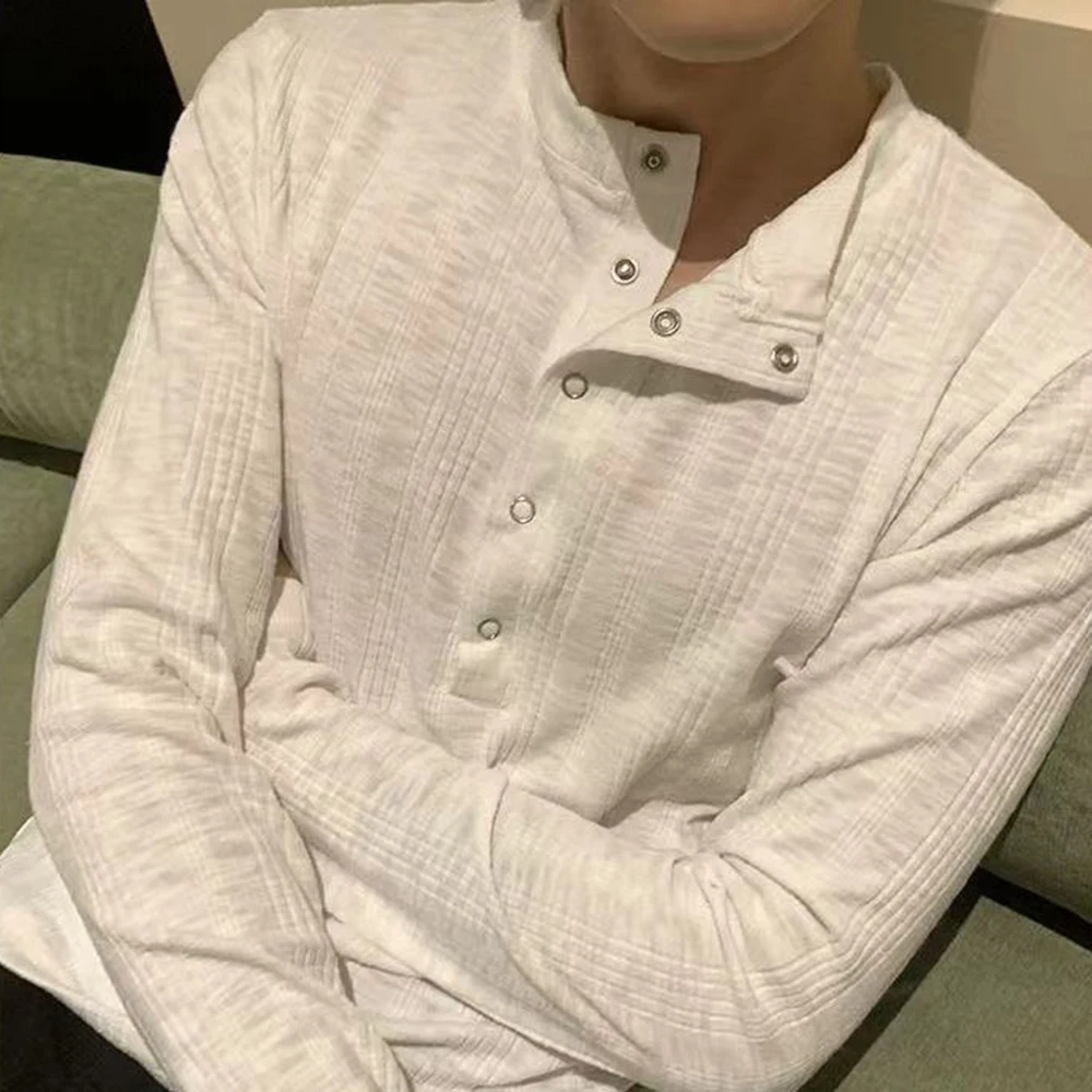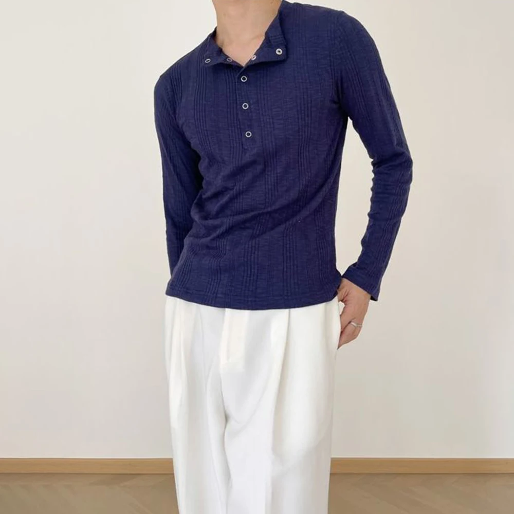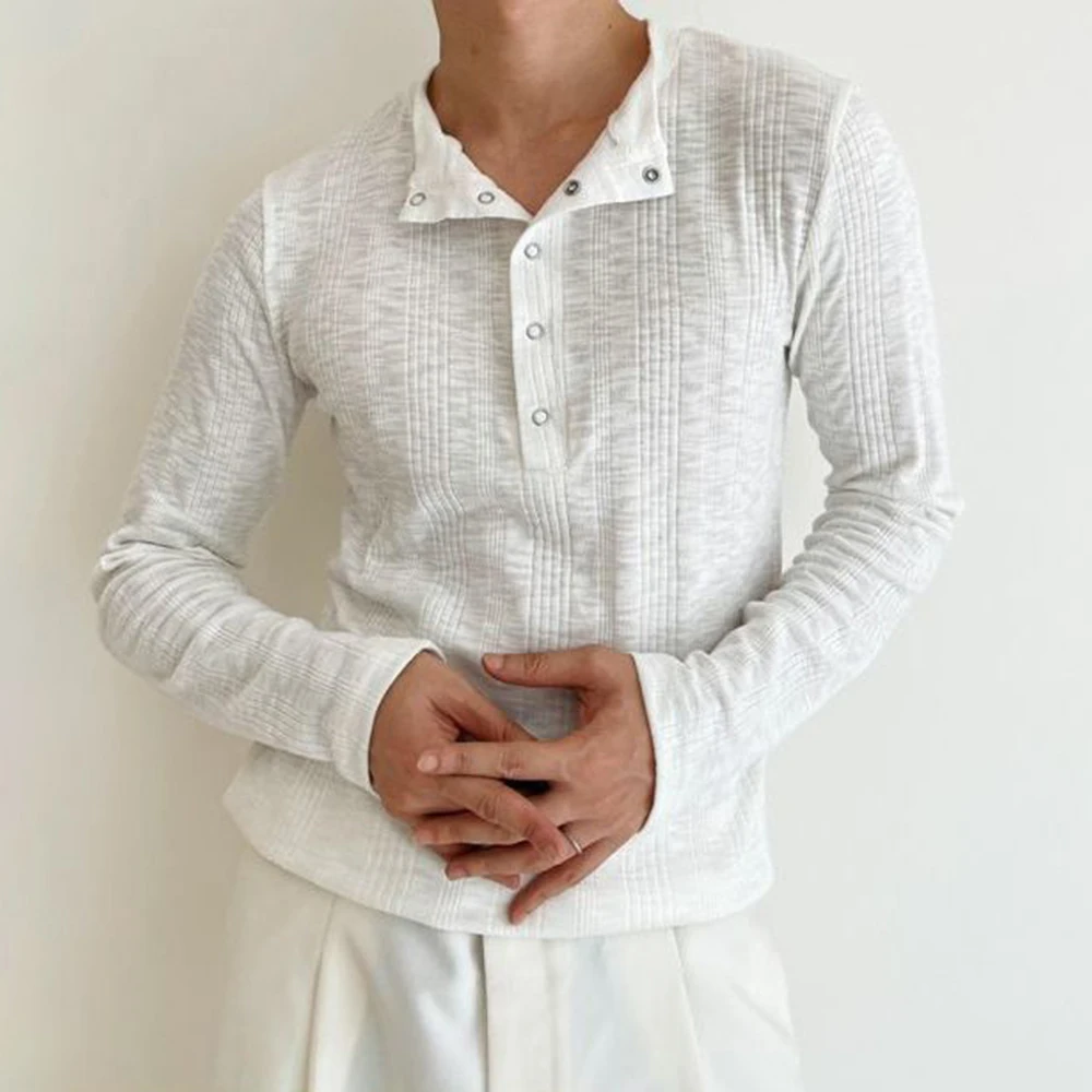 American Street Fashion Simple Slim Fit Solid Color Knitted Long-Sleeved Shirt Mens Design Lazy Casual Slim Fit Bottoming Shirt