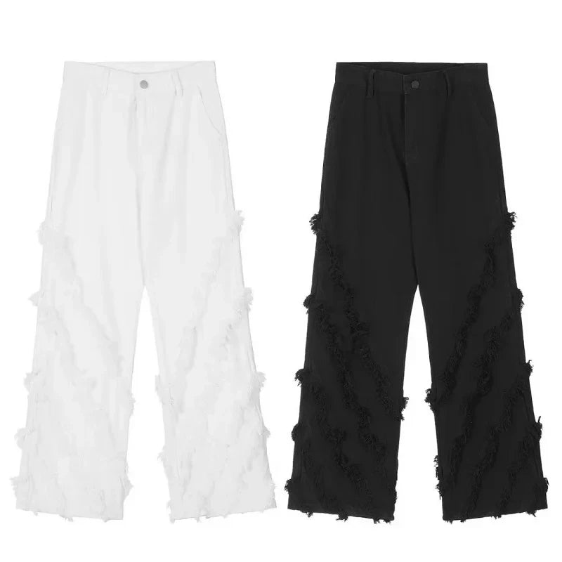 American Style Erosion Damage Raw Edge Street Jeans Men's Harajuku Style Hip-hop Dance Straight White Jeans Women's Y2k Clothing
