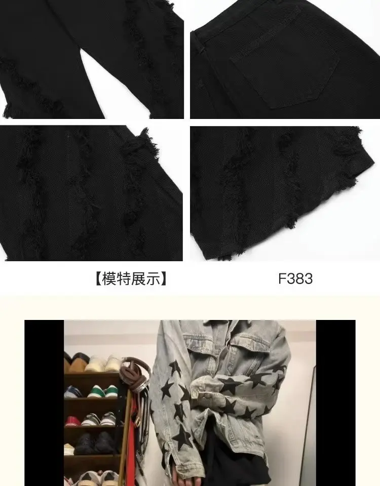 American Style Erosion Damage Raw Edge Street Jeans Men's Harajuku Style Hip-hop Dance Straight White Jeans Women's Y2k Clothing