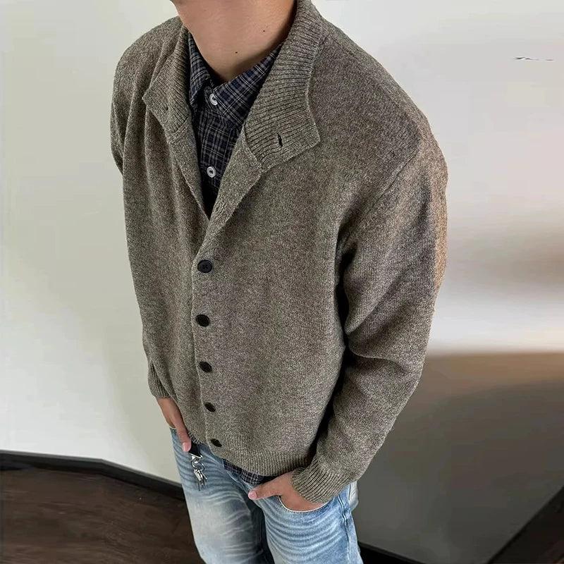 American Vintage Cardigan Coats Light Luxury Knitted Lapel Long Sleeve Men Sweater Jacket Leisure Premium Quality Knitwear M-3XL