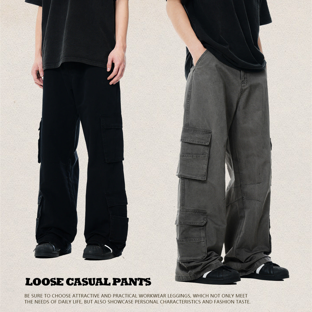 black men fashion urban 11kn American Overalls Men's and Women's Retro Multi-Pocket Loose Wide-Leg Cleanfit Casual Trousers