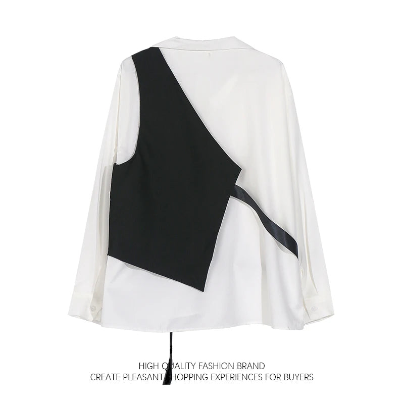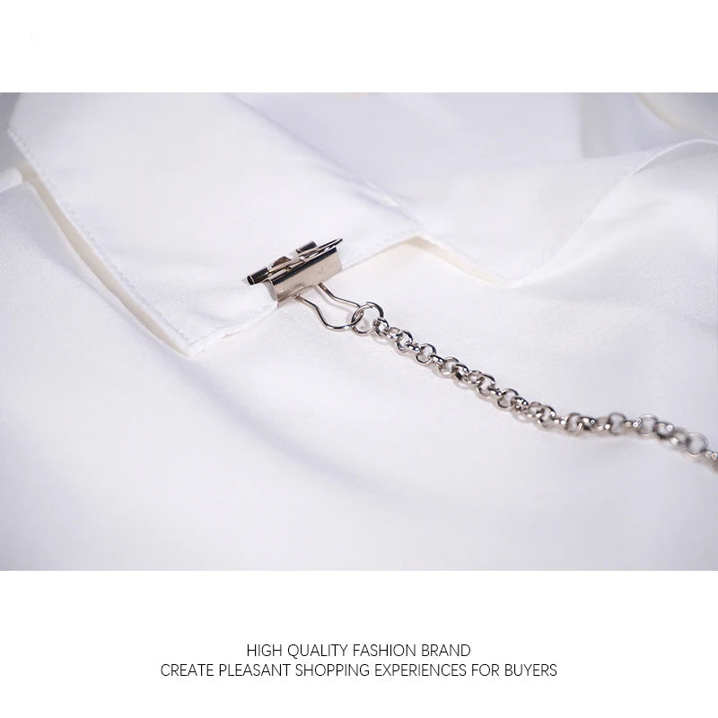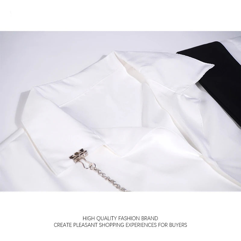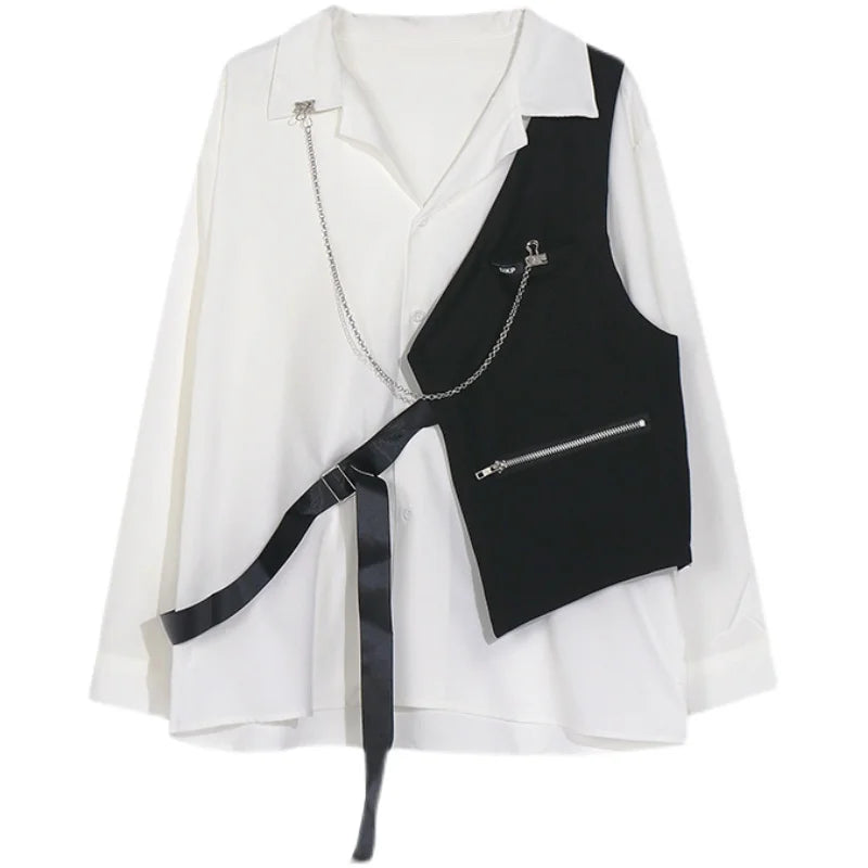 Japanese Functional Cargo Shirt Handsome High Street Long Sleeved Shirt Men Women Dark American Hip Hop Dark Black Chain Blouse
