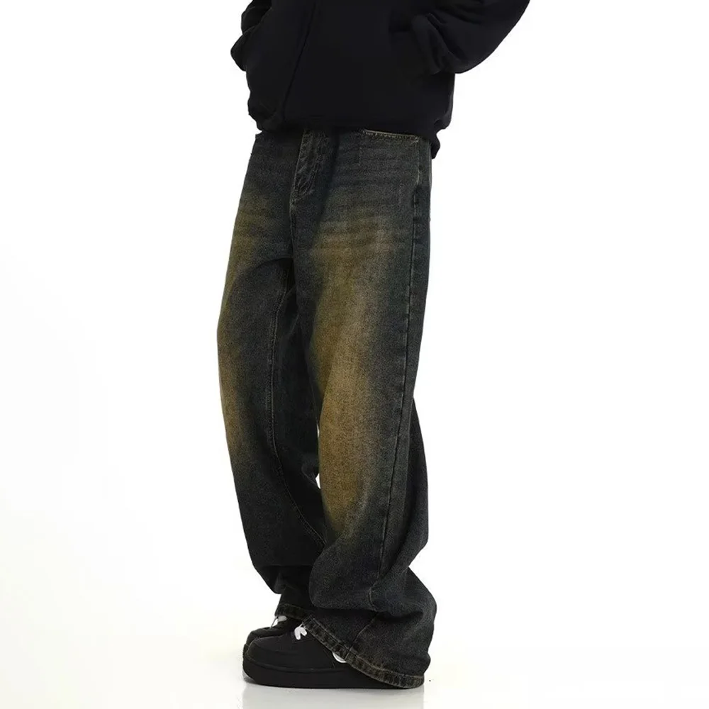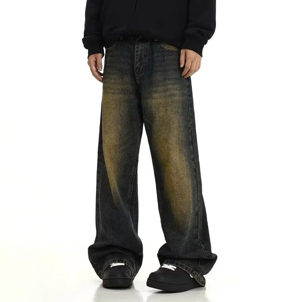 Mens Retro Casual Washed Jeans Personality American Streetwear Straight Versatile Trouser Fashion Men'S Clothing Jeans Summer