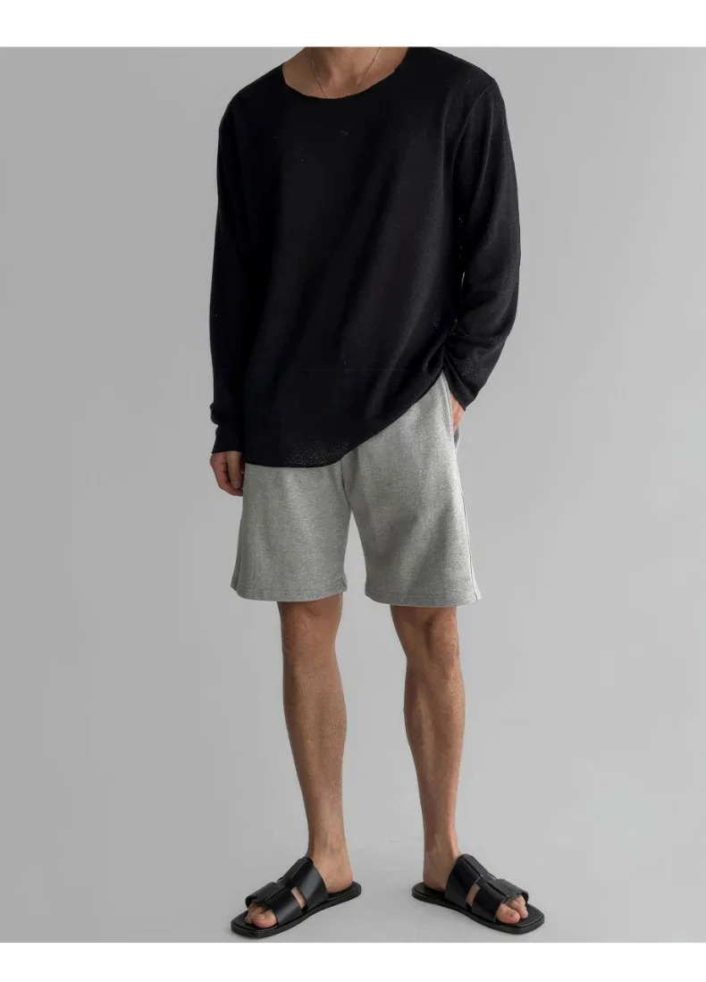 Thin Breathable Sun Protection Cover Shirt for Men Long Sleeved Knitted Slightly Translucent Sexy T-shirt American Light Mature