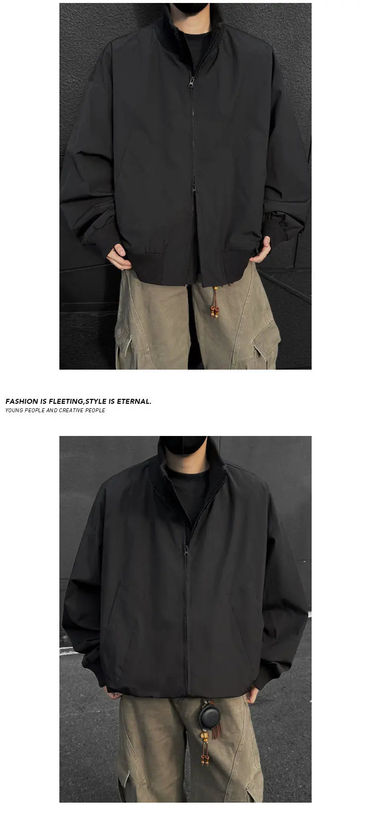 Jacket Mens Casual Jacket Solid Stand Collar Loose Fit Zipper Autumn Coat Ribbed Cuffs Relaxed Outerwear