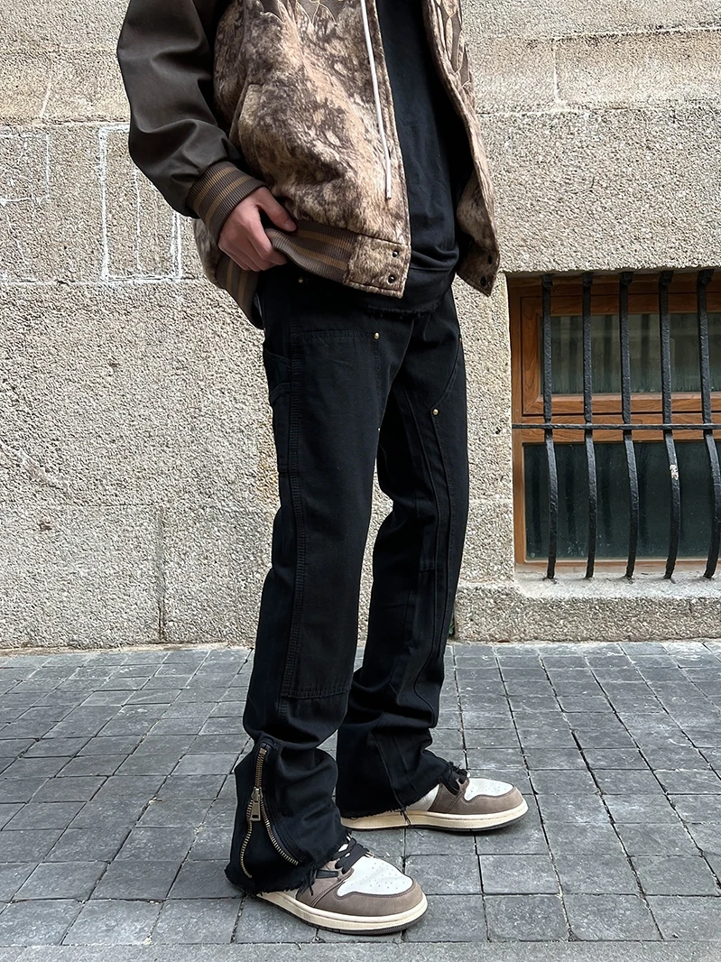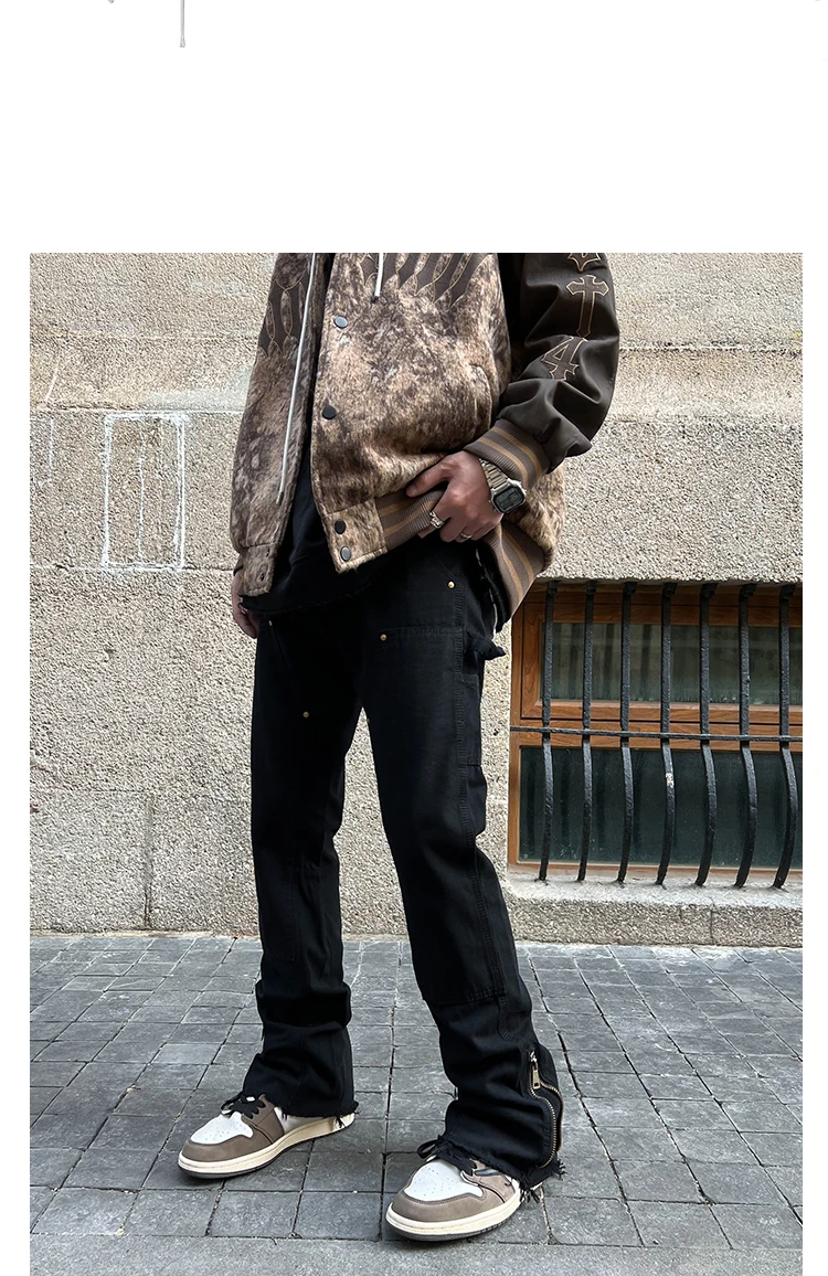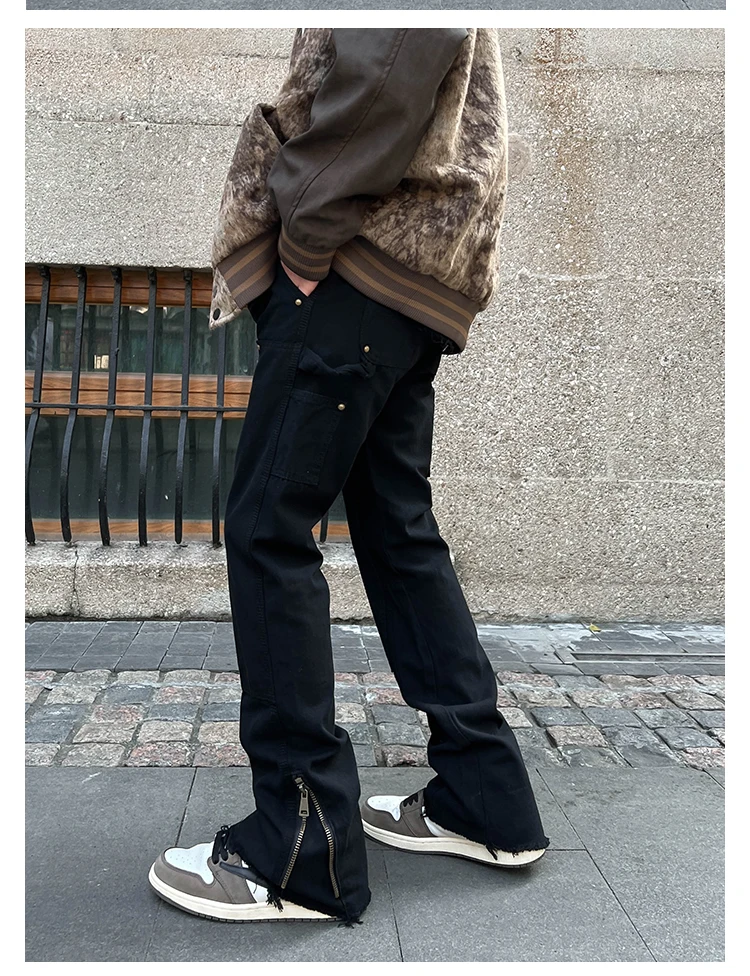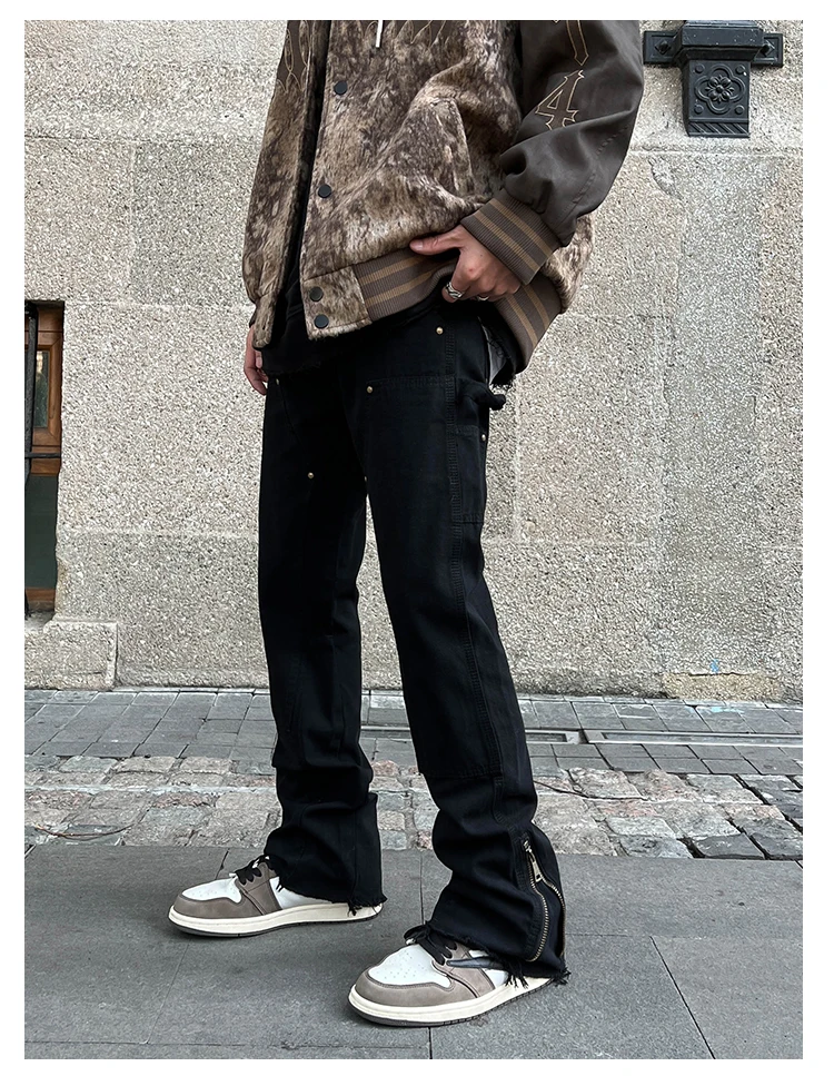 Jeans Men Spliced Rivet Side Zipper American Style Vibe Harajuku Streetwear Denim Trousers All-match Fashion Autumn College Chic