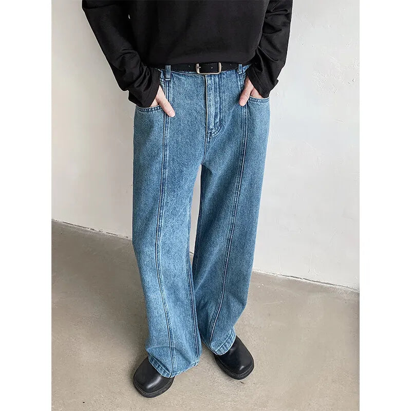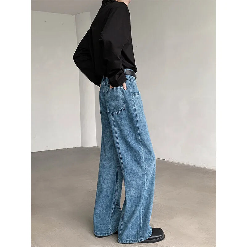 Baggy Blue Jeans Men Oversized Retro Straight Jeans Men Streetwear Korean Loose Wide Leg Jeans Mens Denim Trousers M-2XL