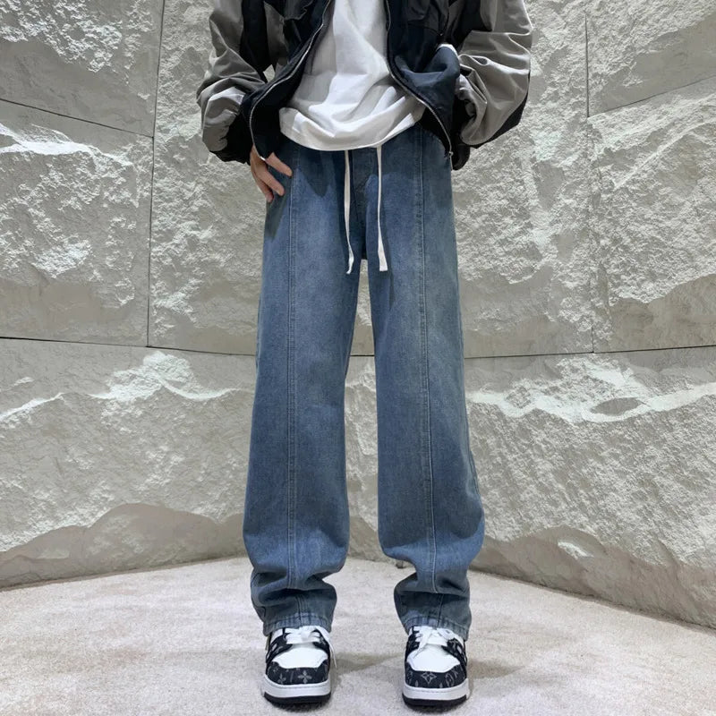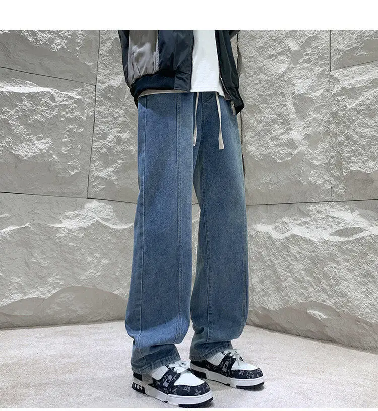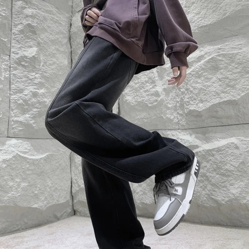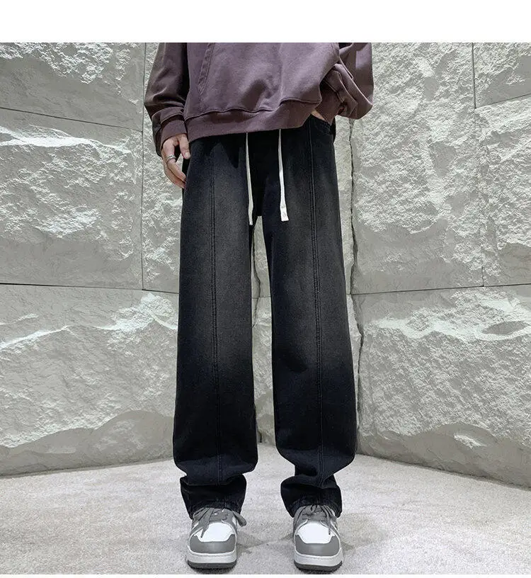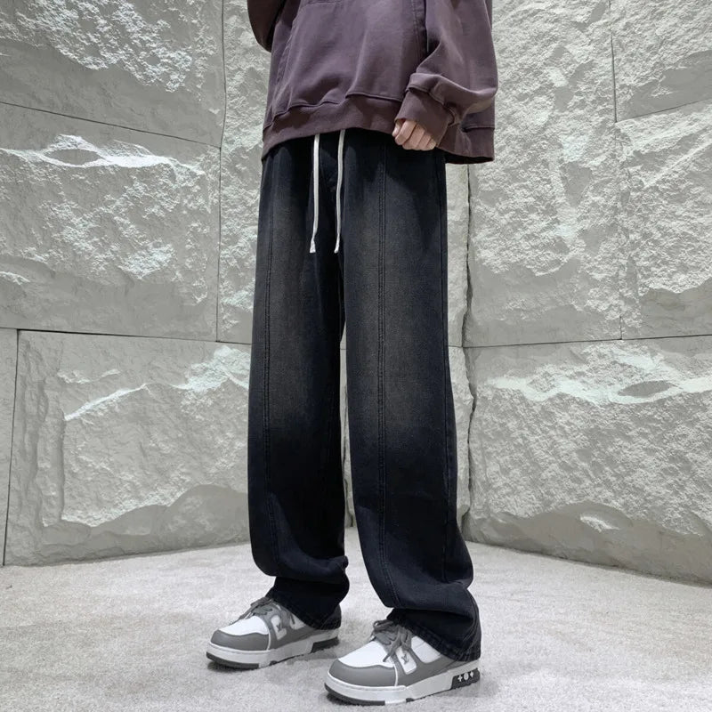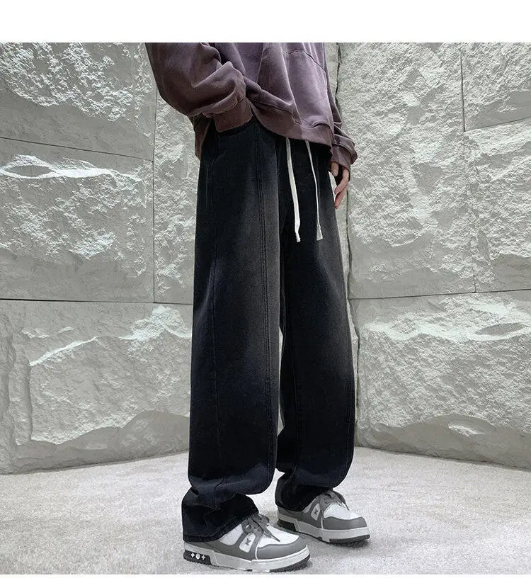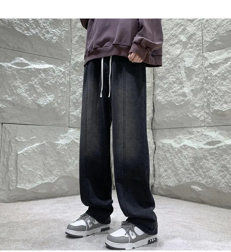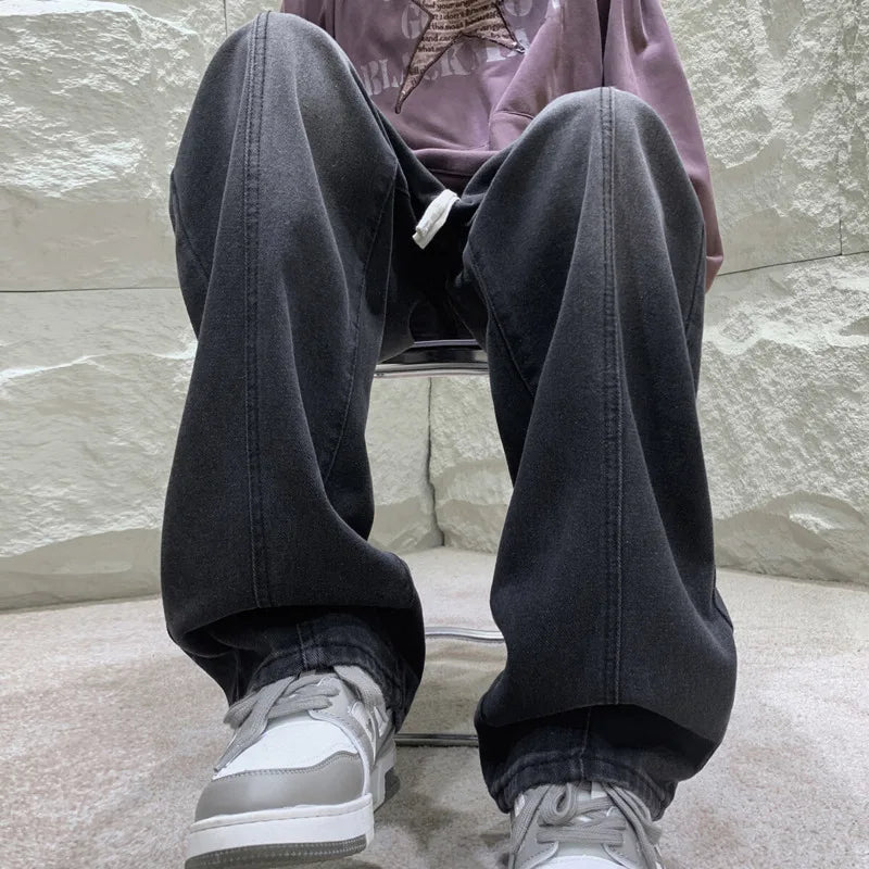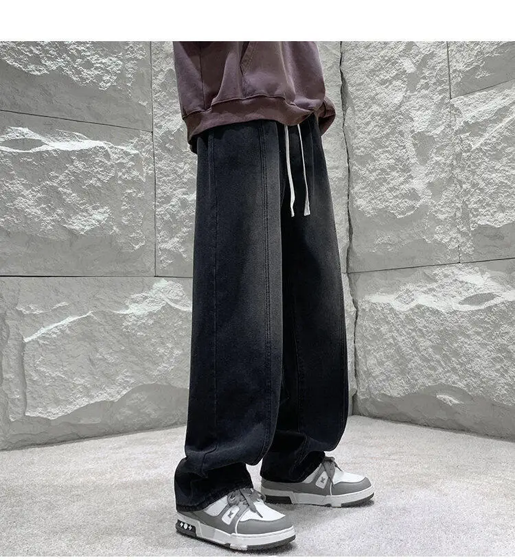 Black Baggy Jeans Men Fashion Retro Straight Jeans Men Streetwear Hip-hop Loose Wide Leg Jeans Mens Vintage Denim Trousers 4XL