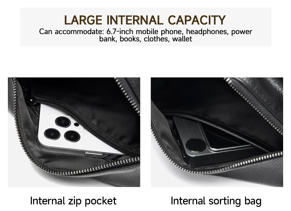 ✅【Mulit Pockets & Function】This leather Crossbody for men has 1 Main Bag, 1 Internal Zipper Bag, 1 Internal Storage Bag and 1 Back Zipper Bag. It's a good choice to be used as daily commuting Crossbody, outdoor Crossbody for Camping or Hiking, travel business trip bags, etc.