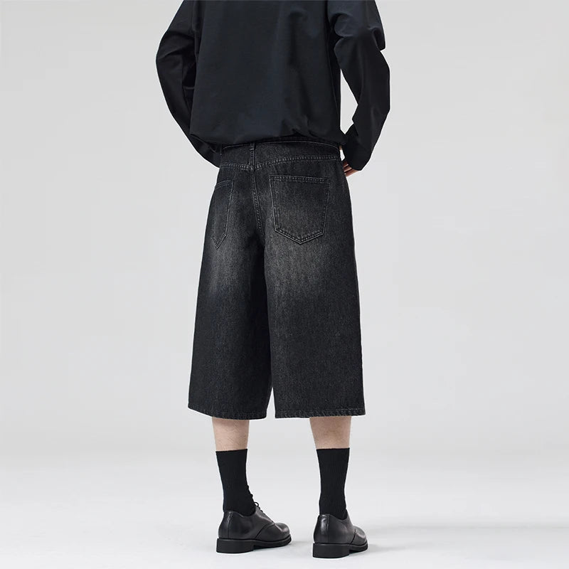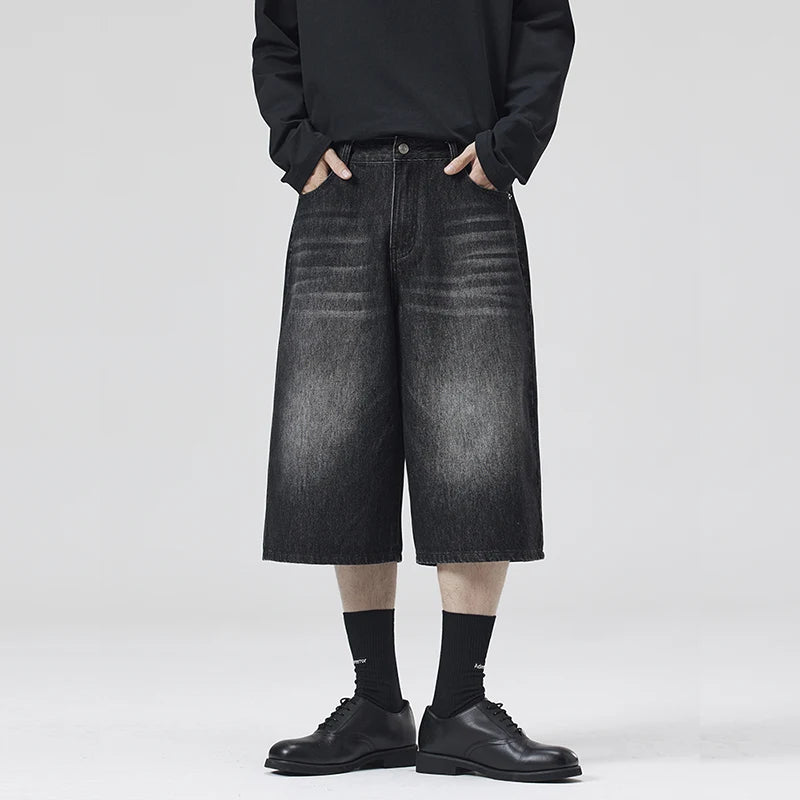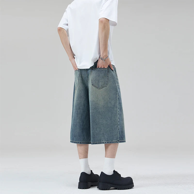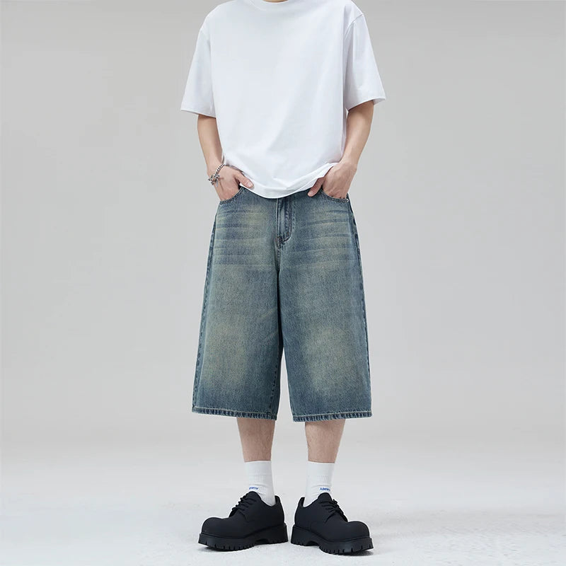 Oversized Baggy Men's Denim Shorts Summer Fashion Retro Casual Loose Wide-leg Calf-length Jeans Harajuku Y2K Streetwear