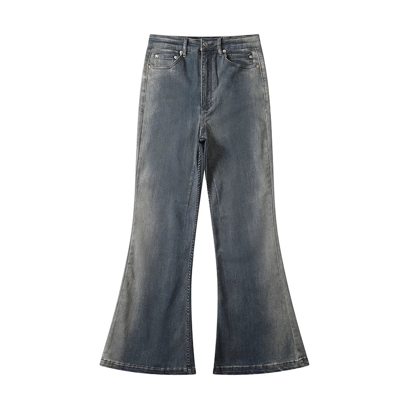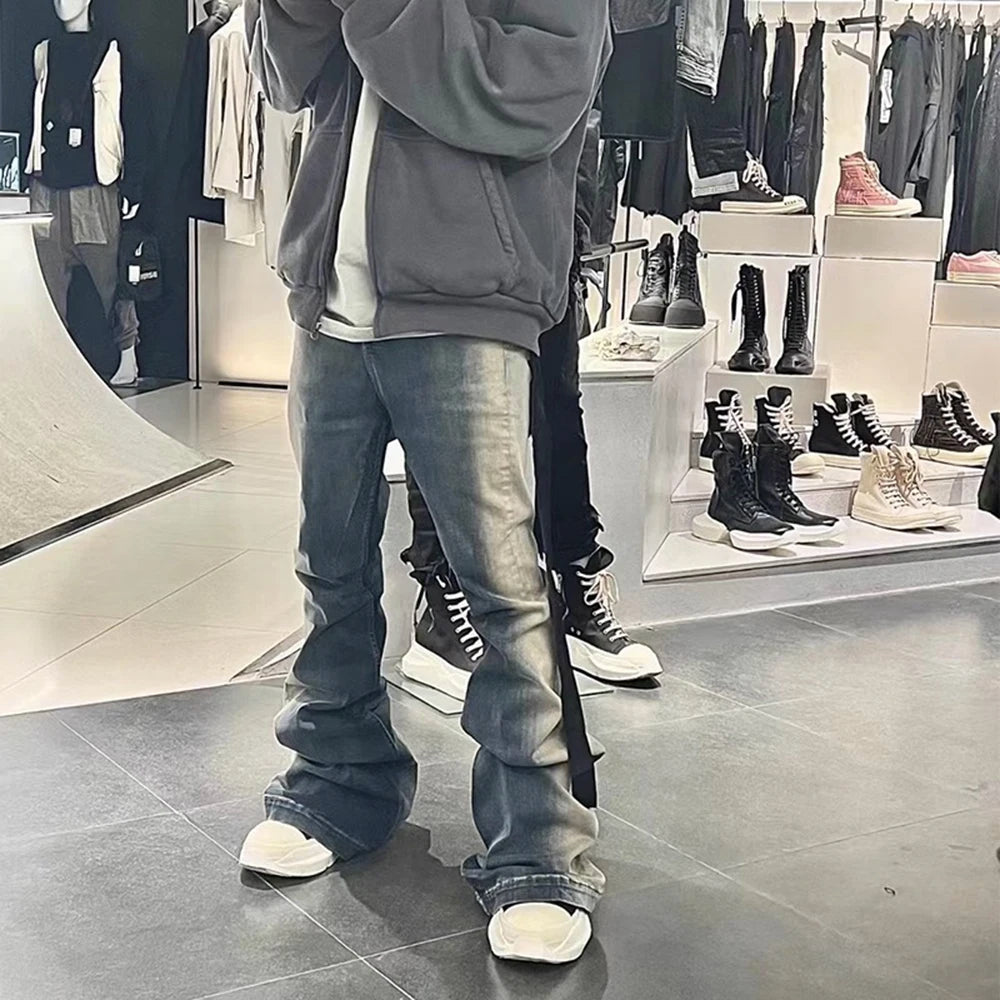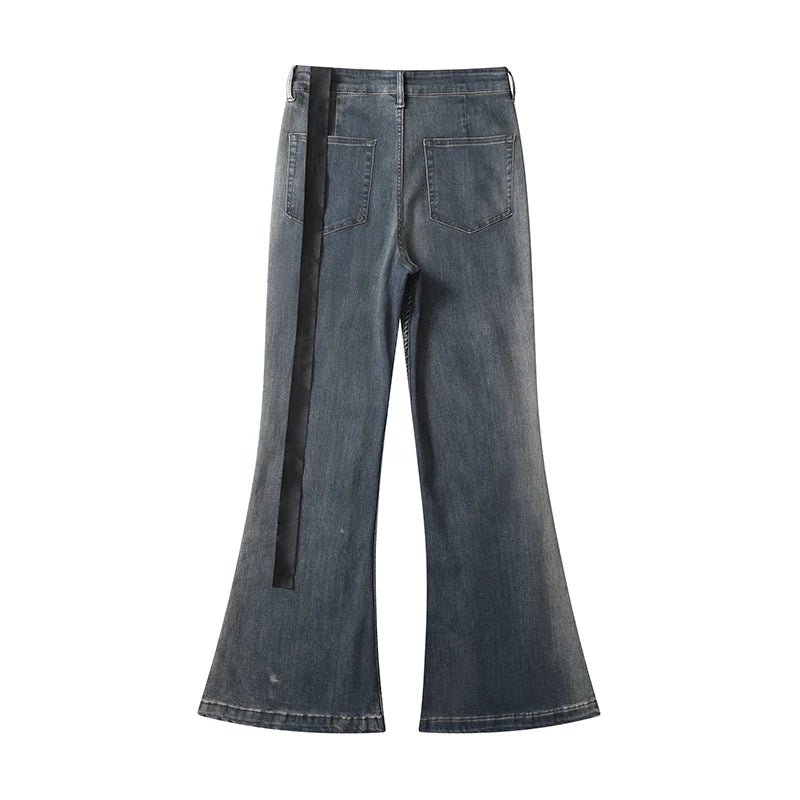 RO Style Gradient Washed Sashes Flare Jeans Unisex Streetwear Baggy Y2K Bell-bottoms Harajuku Loose Casual Denim Trousers