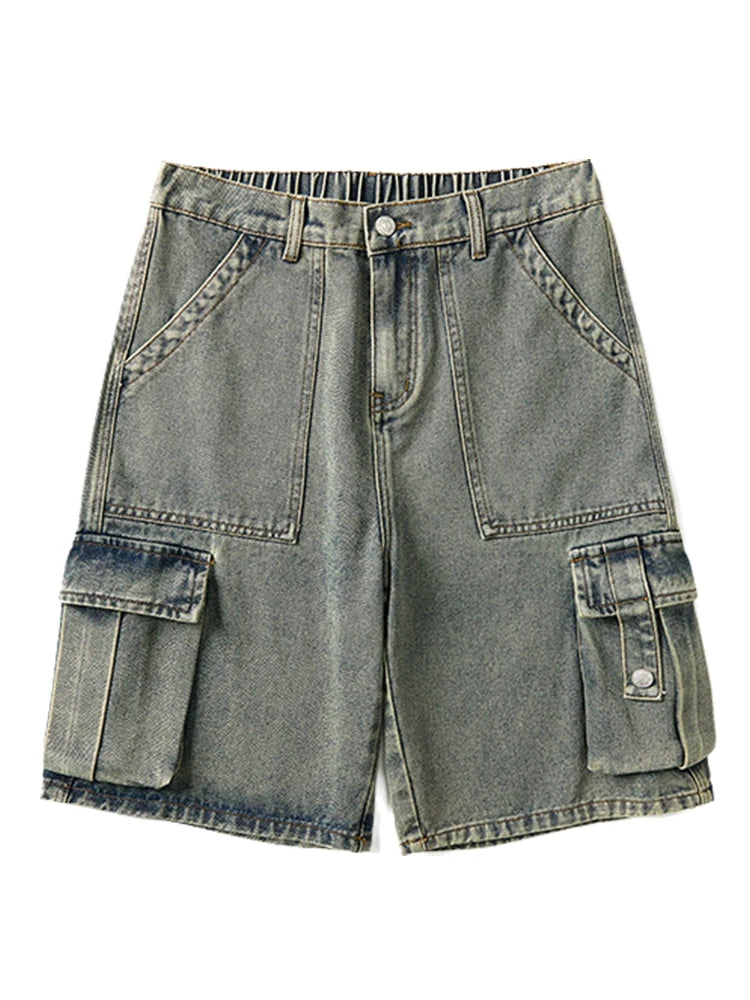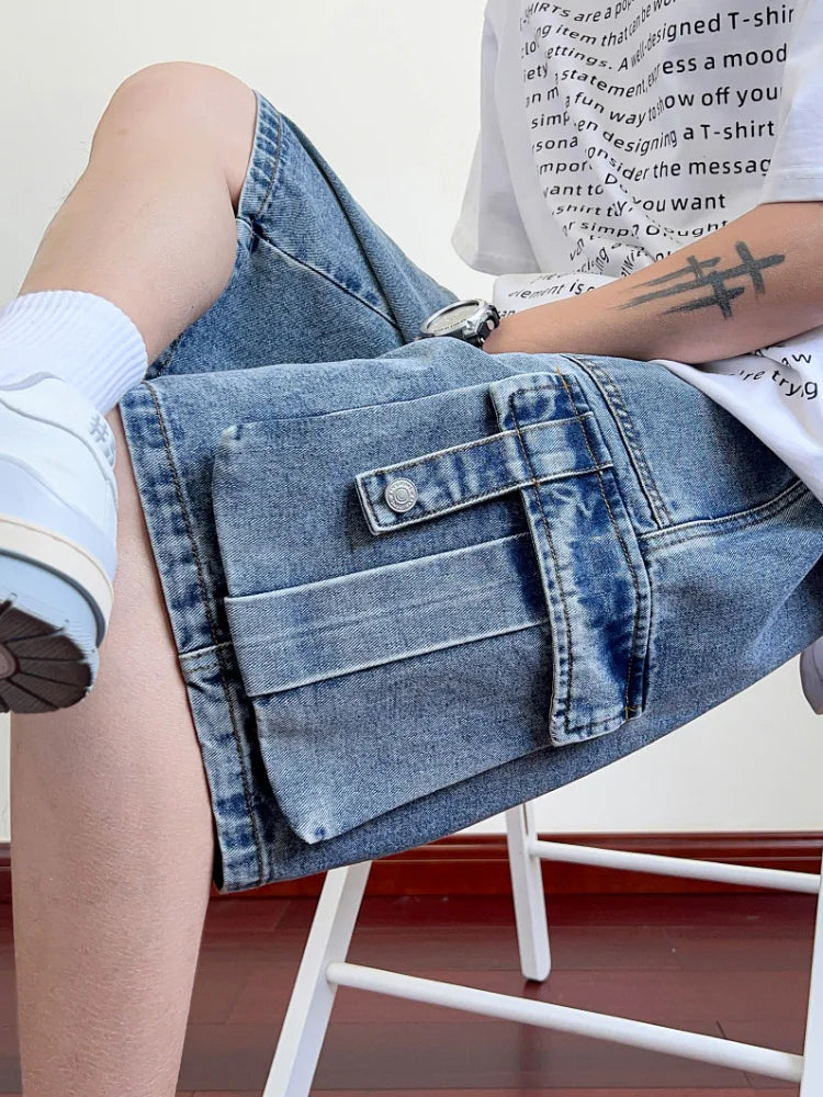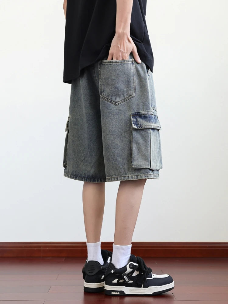 Summer Denim Cargo Shorts Men Flap Pockets Wide Leg Baggy Jeans Shorts Big Size 8XL 7XL 6XL Loose Fit Straight Jean Short Male