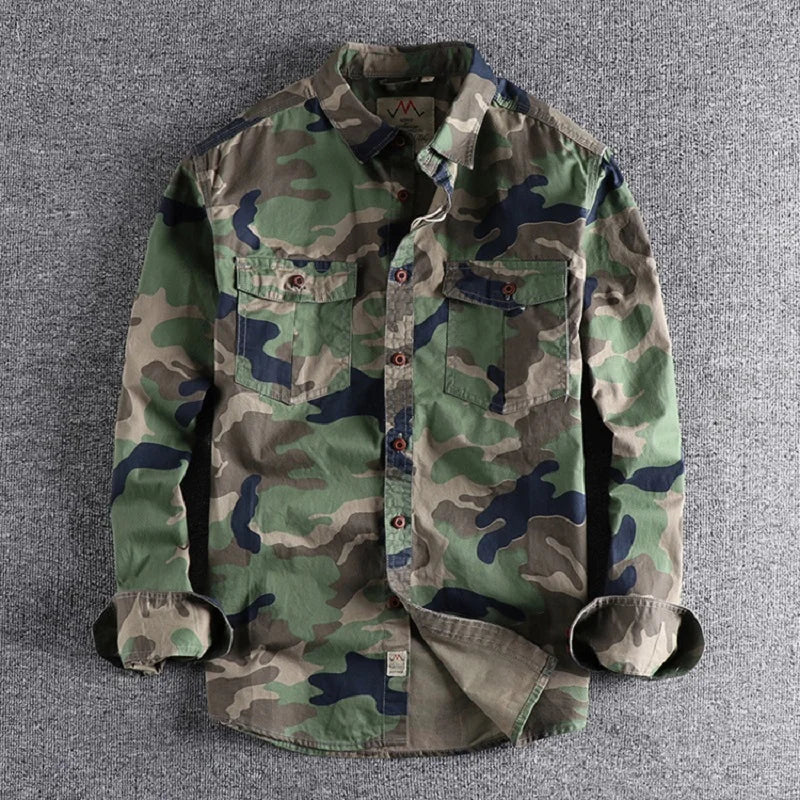Men Camouflage Cargo Shirts High Quality Durable Outdoor Hiking Sport Daily Military Tactical Style Casual Camicia Camo Shirt
