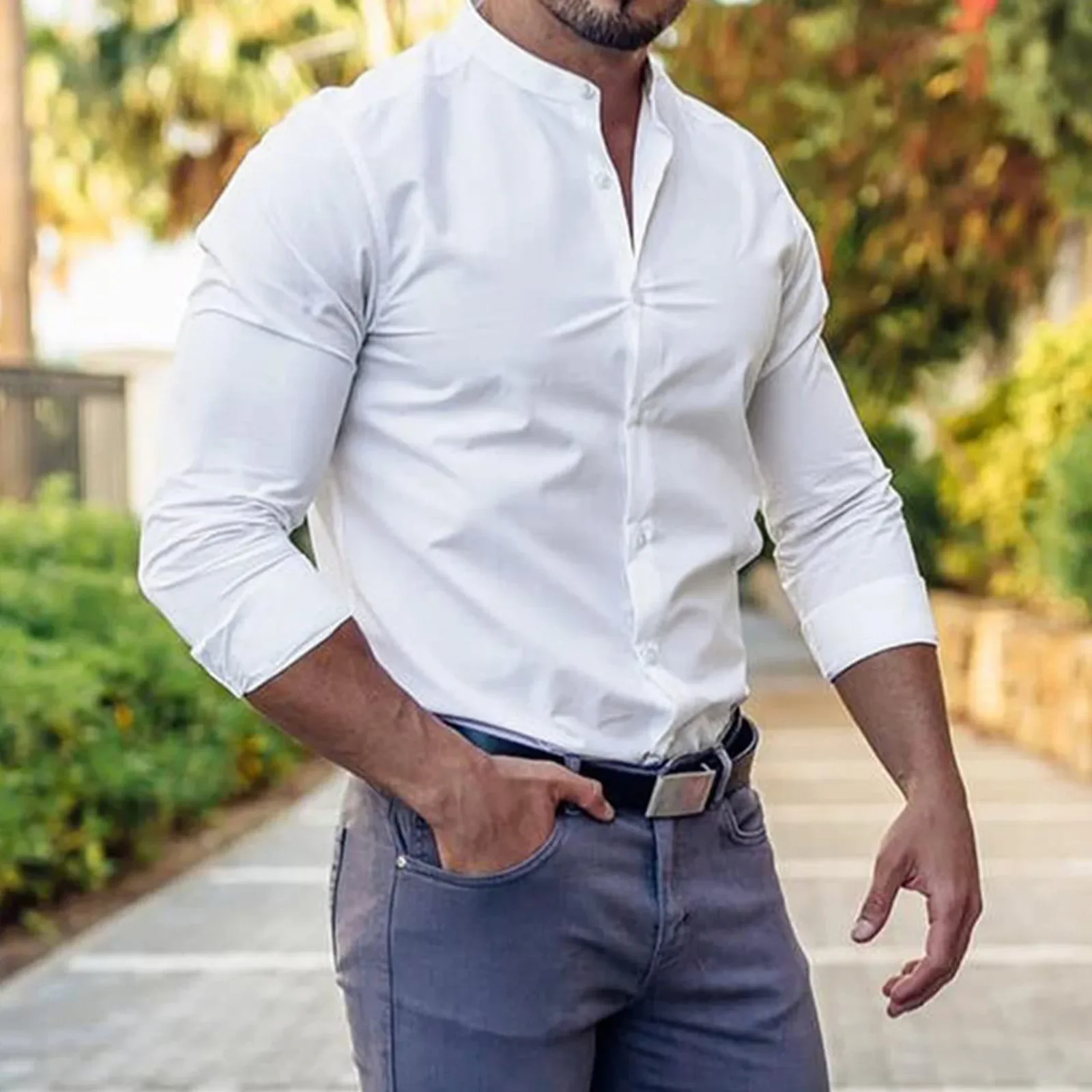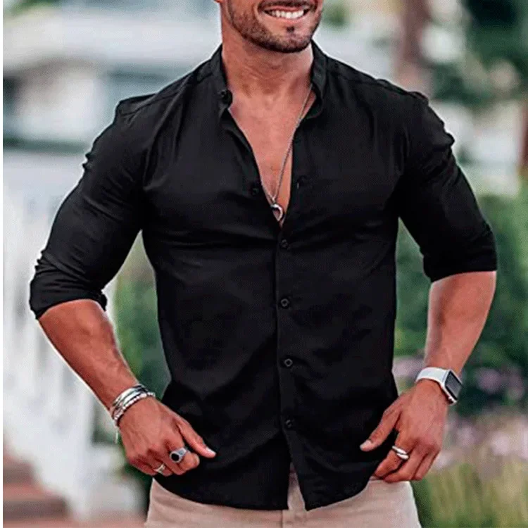 Trend Men's Business Casual Shirts Long Sleeve Slim Fit Party Daily Tops Camisas Long Sleeve T Shirt