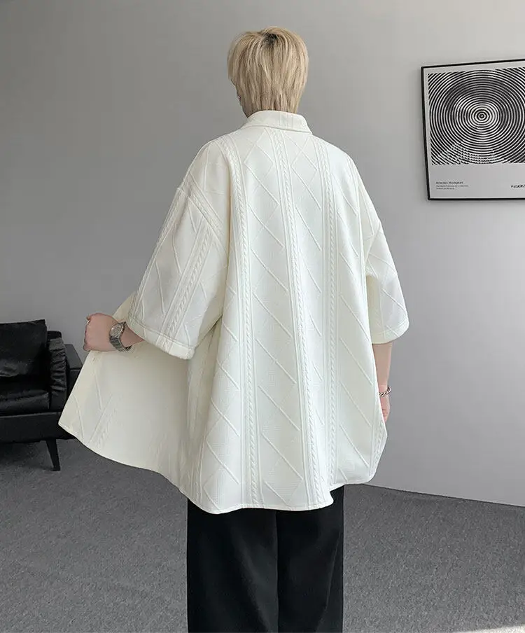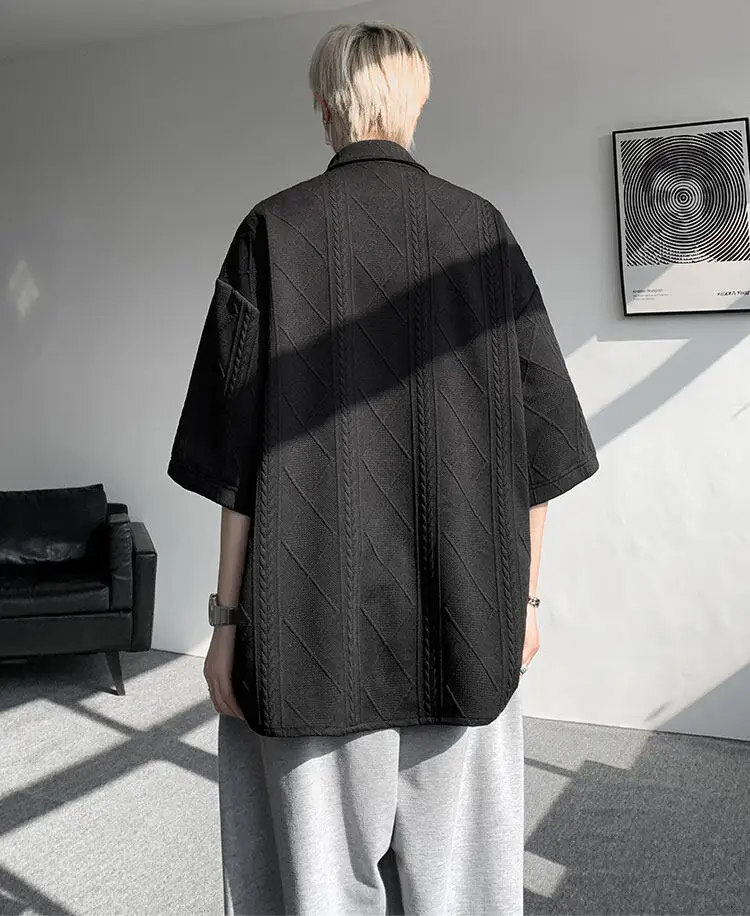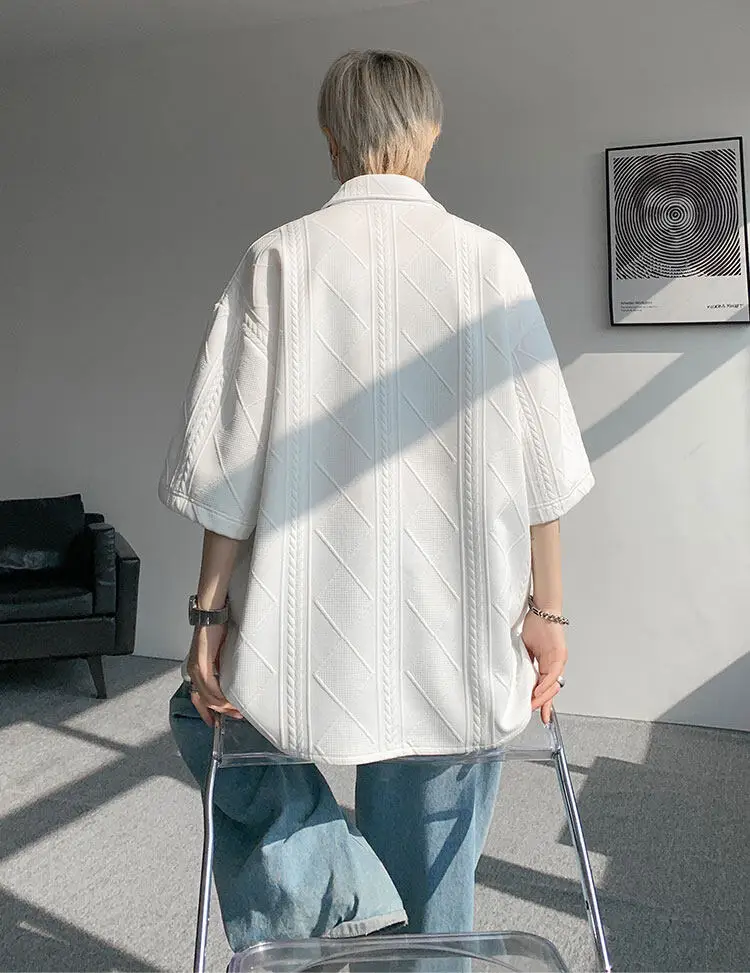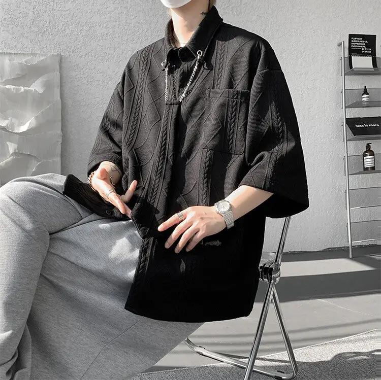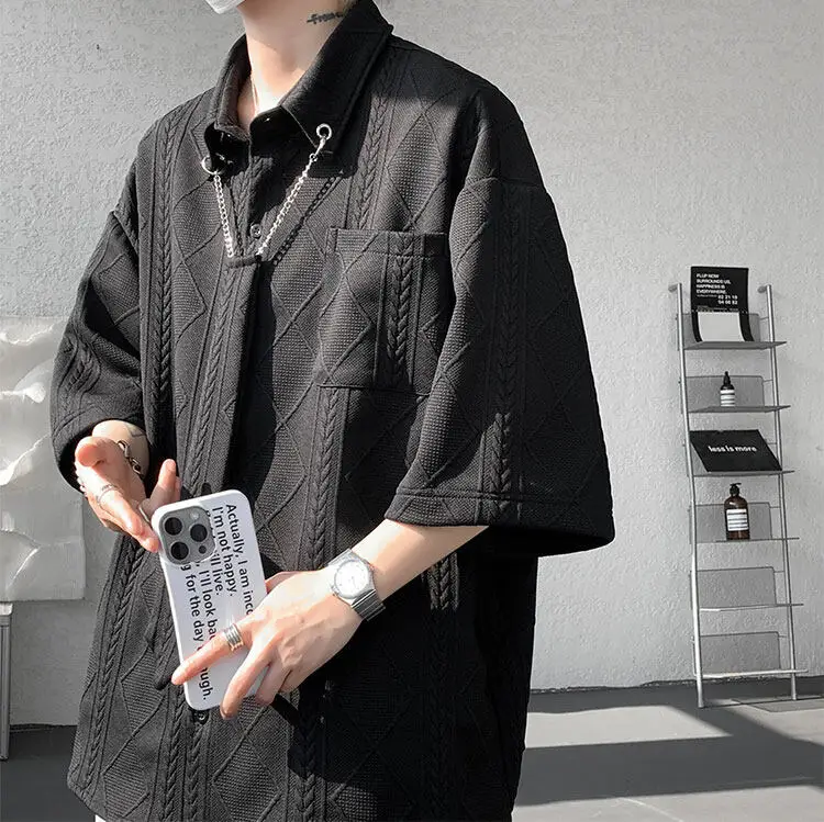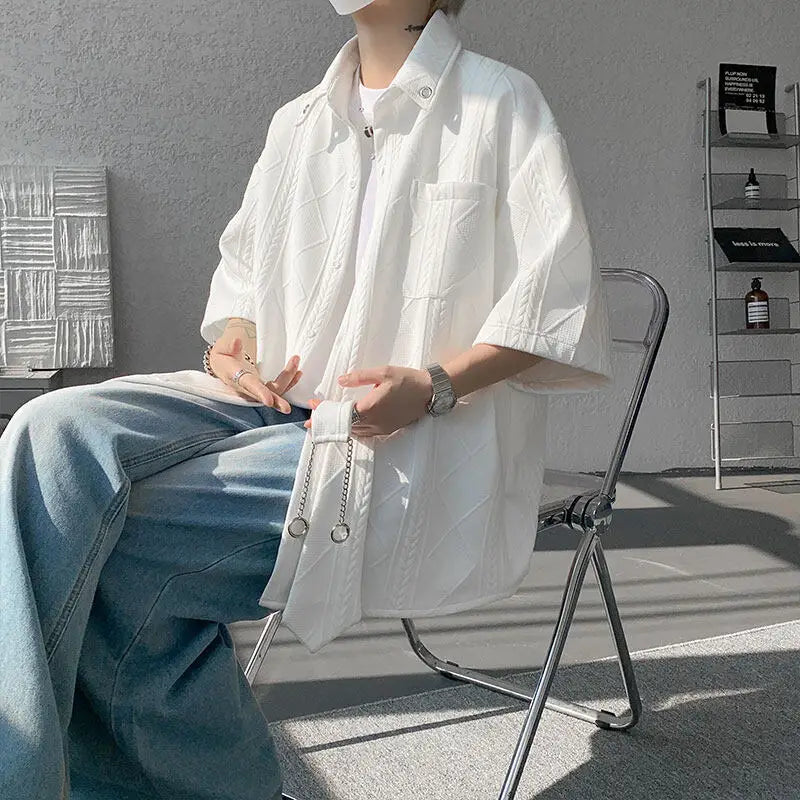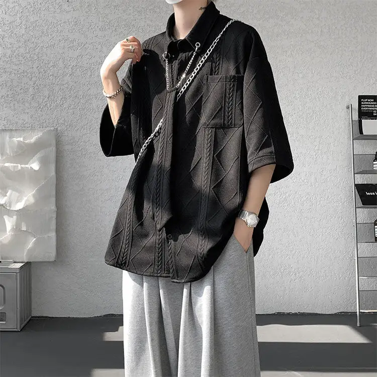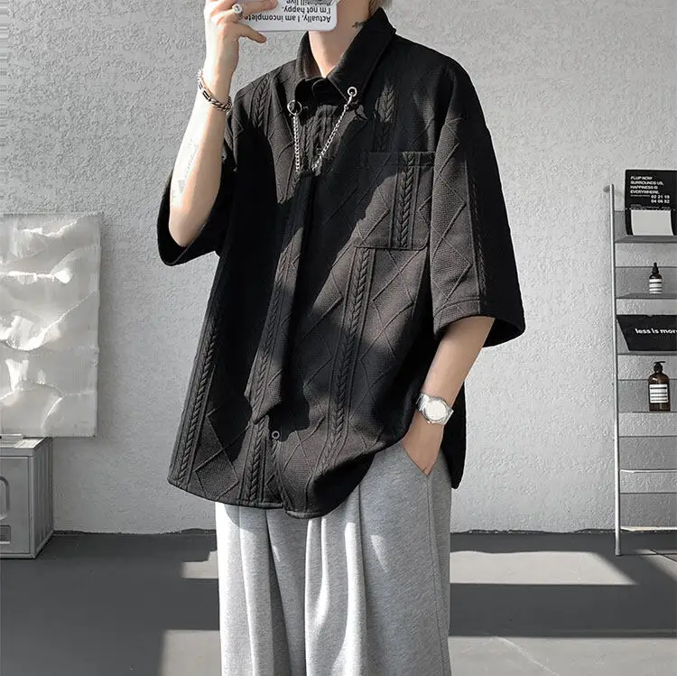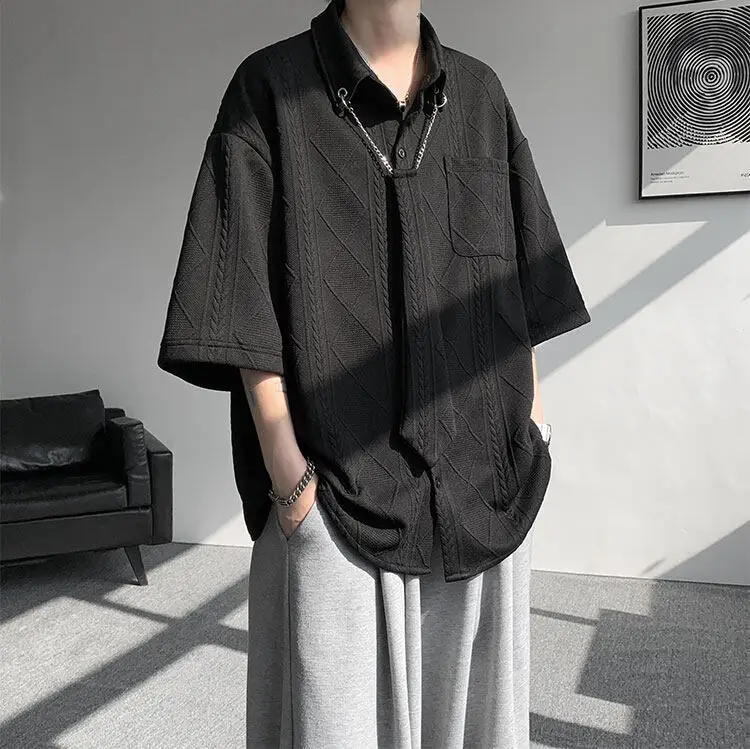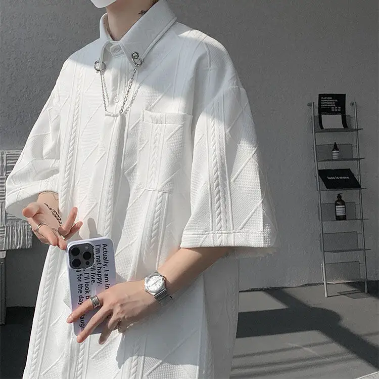 2025 White Texture Short-sleeved Shirts Men Korean Chic All-match Blouses Casual Loose Single Breasted Black Shirt with Tie