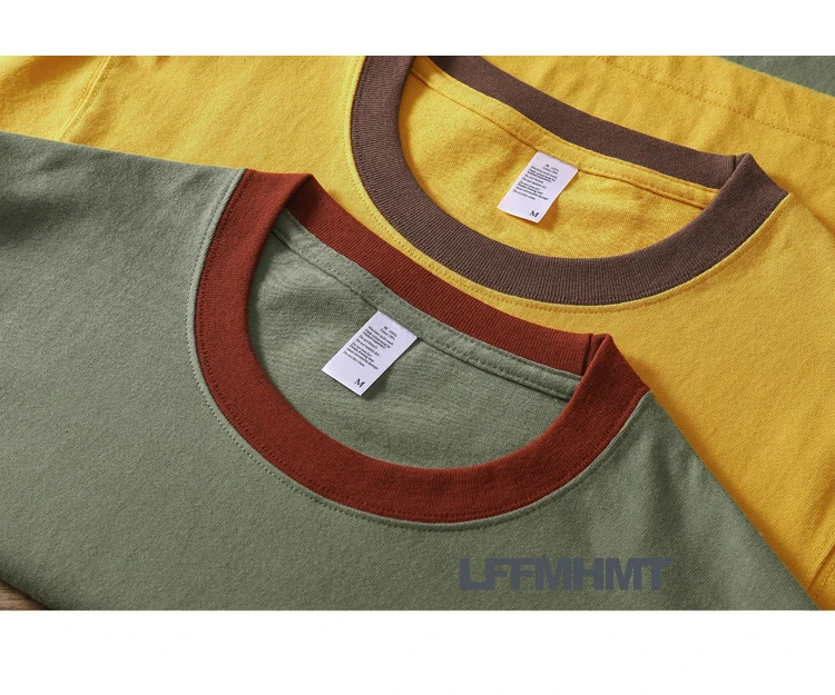 270G Cotton Premium Summer Fashion Patchwork Men's T-shirt Chinese Trendy Couple Style Solid Simple Casual Basic Blank Tees Male LFFMHMT