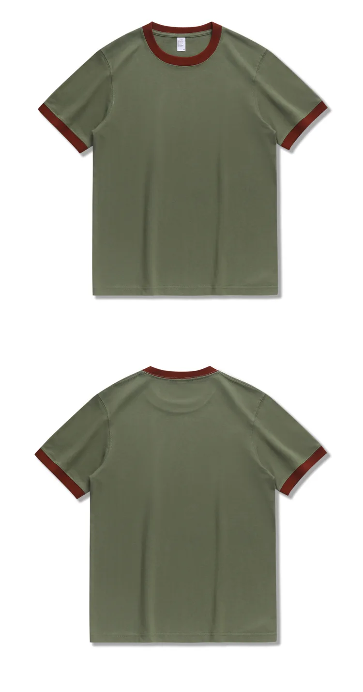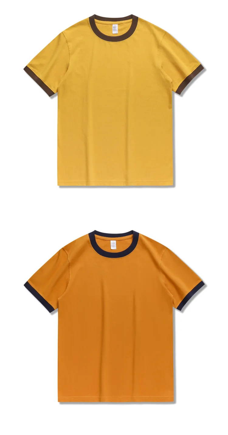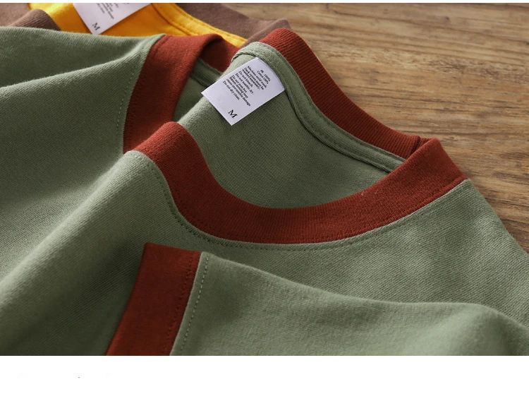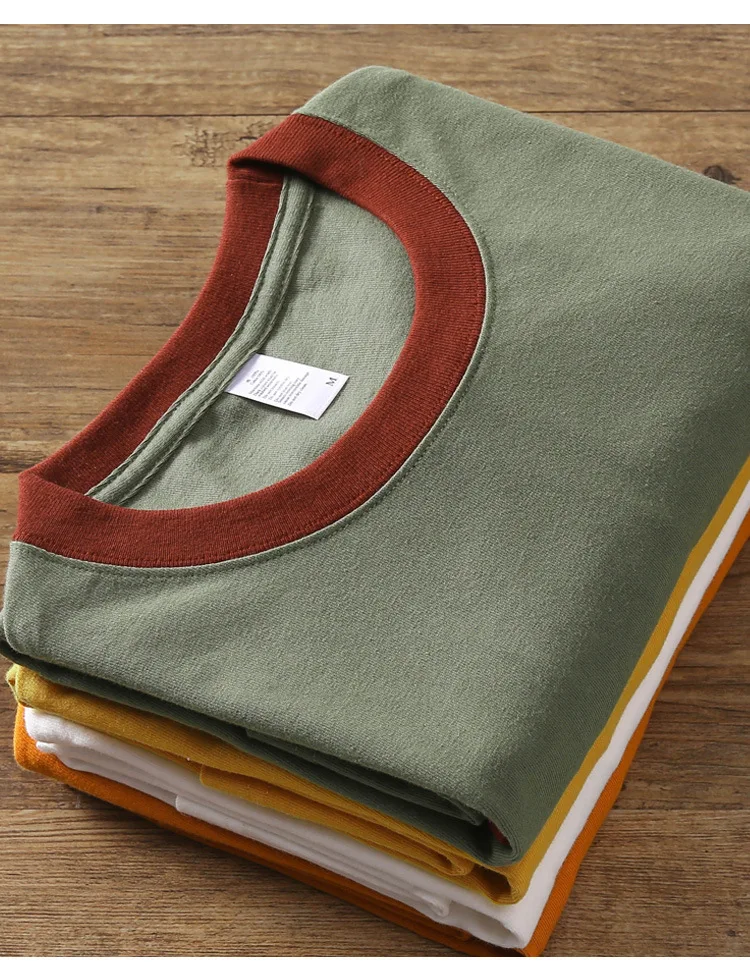 270G Cotton Premium Summer Fashion Patchwork Men's T-shirt Chinese Trendy Couple Style Solid Simple Casual Basic Blank Tees Male