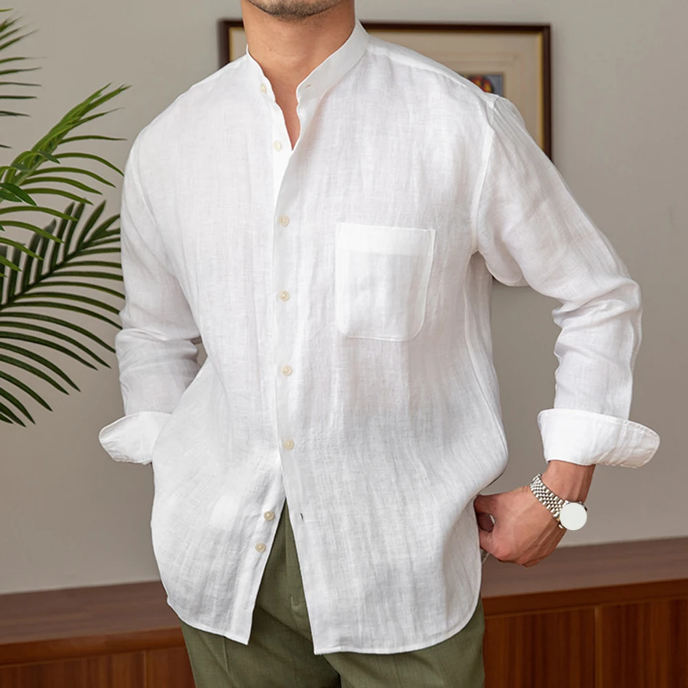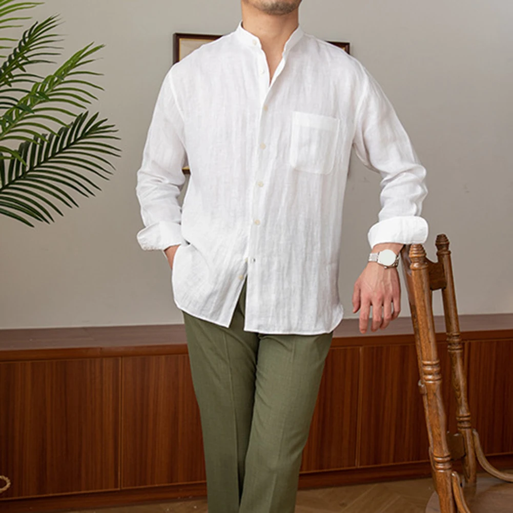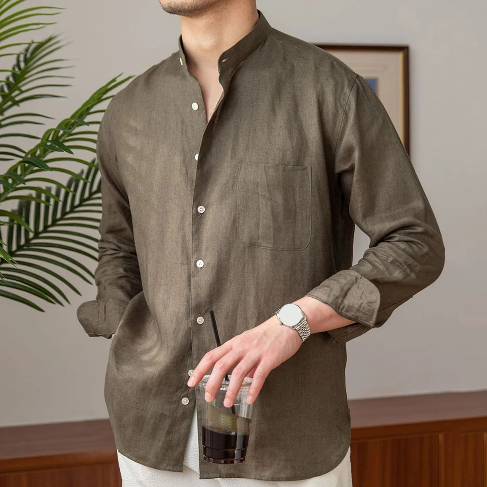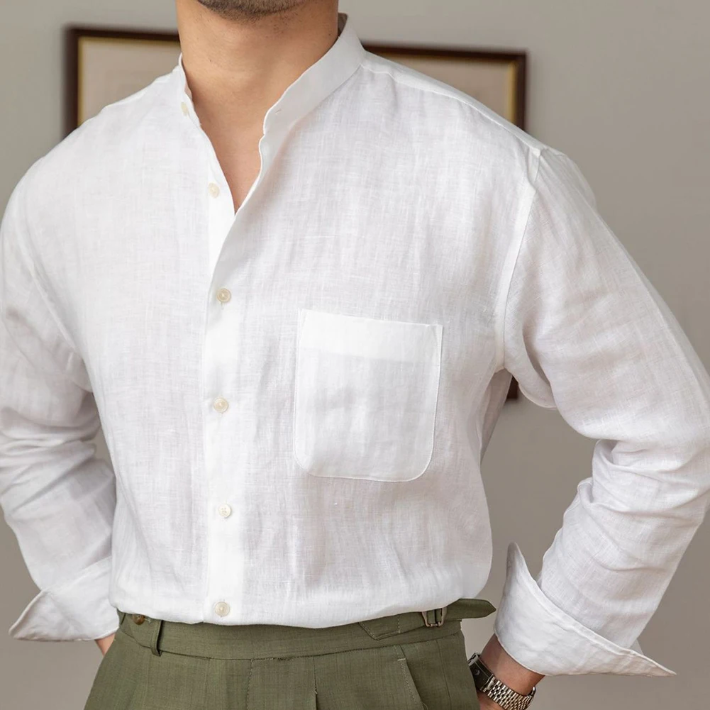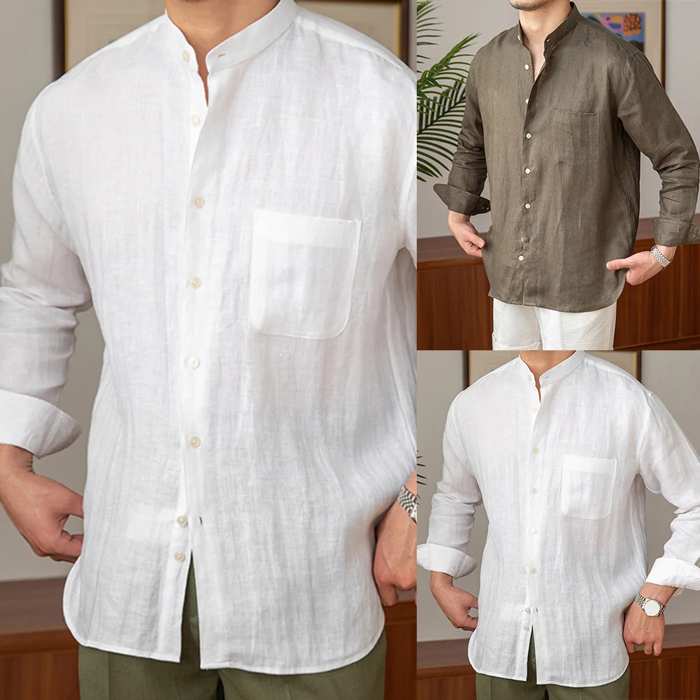 * Item Features:Mens,Commuting,Breathable,Shirt,Versatile,Stand Collar,Tops