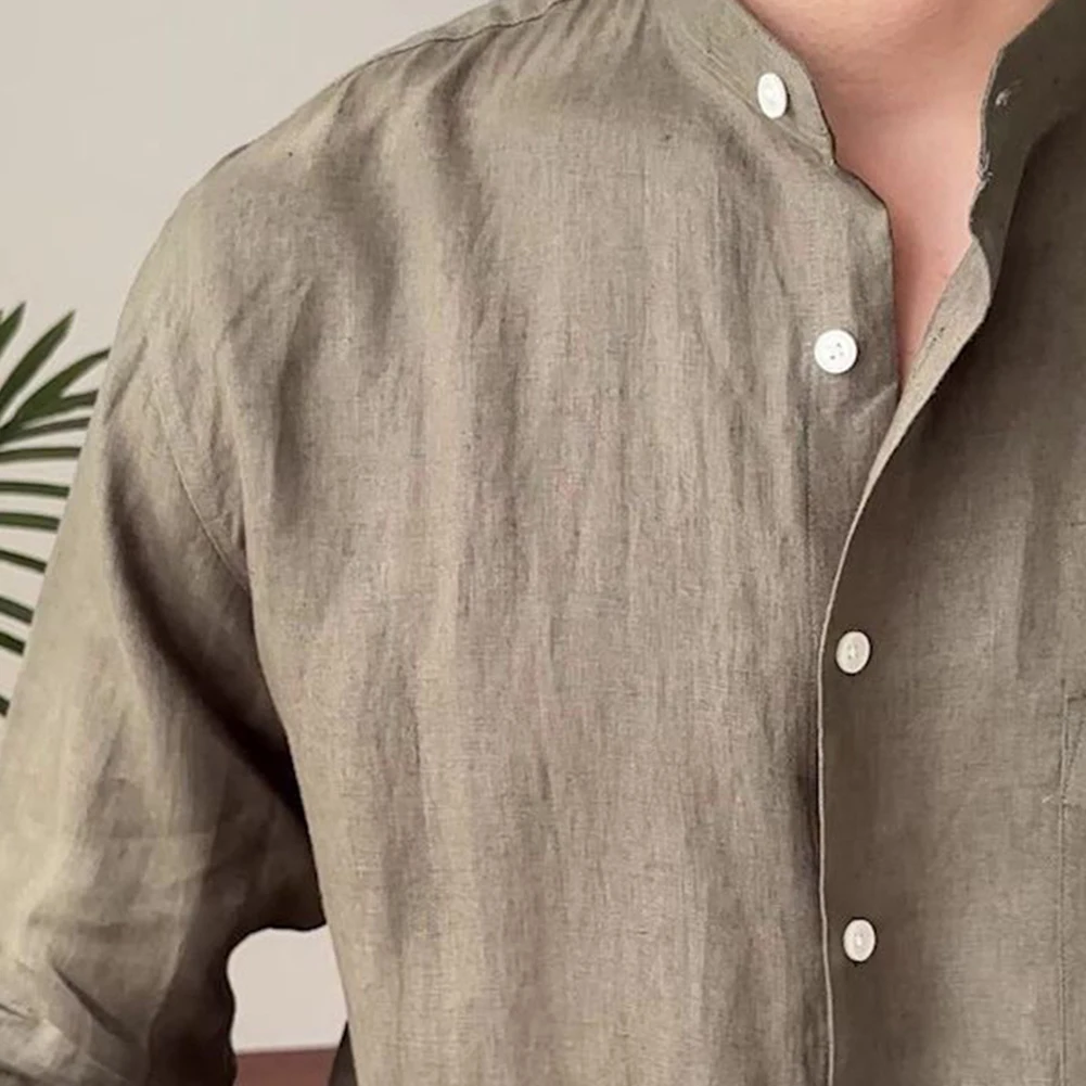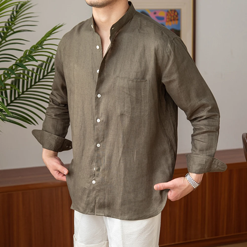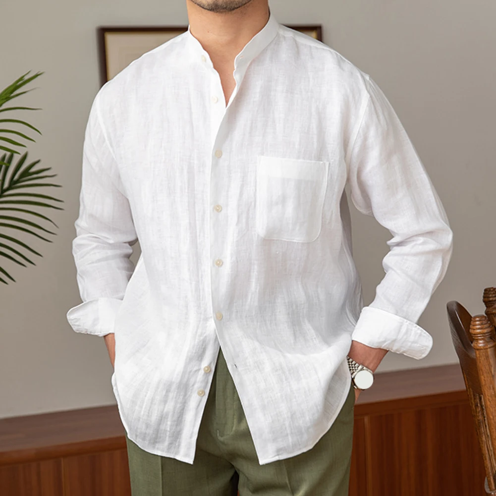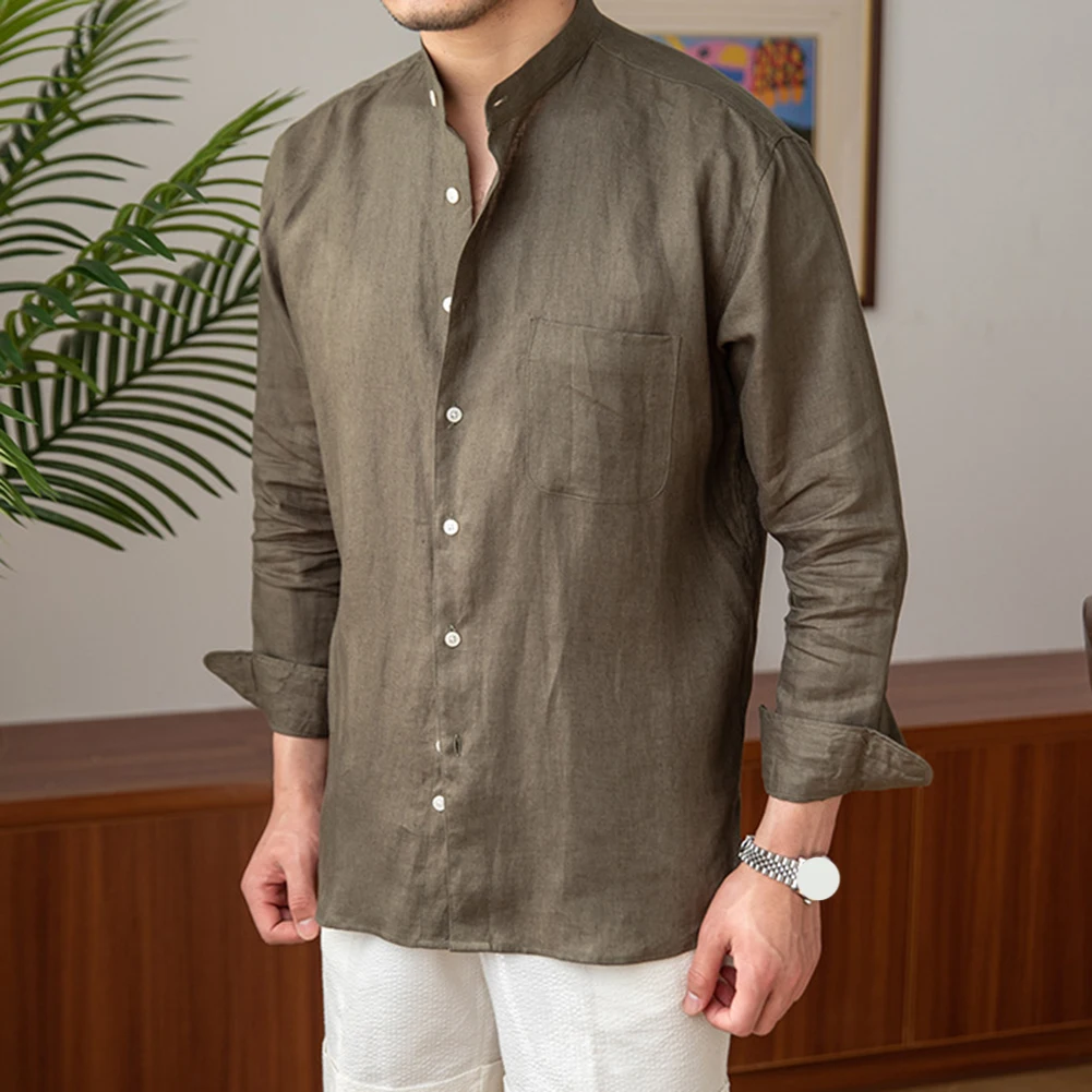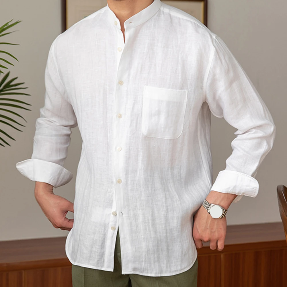 * Item Features:Mens,Commuting,Breathable,Shirt,Versatile,Stand Collar,Tops
