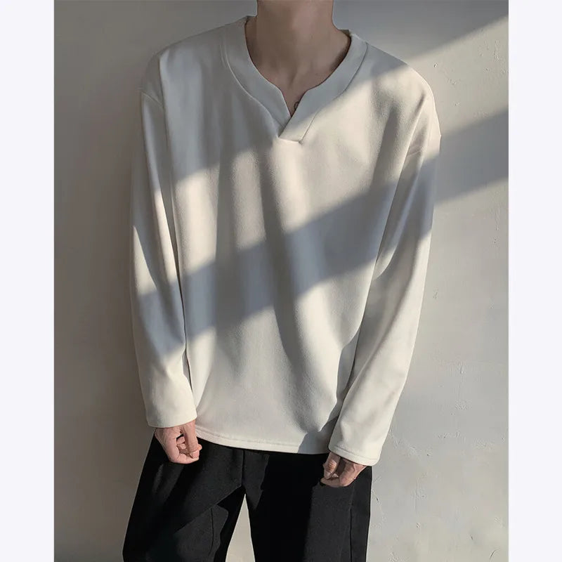 Autumn Long Sleeved T-shirt Men Fashion V-neck Pullover T Shirt Men Streetwear Korean Loose Pullover T Shirt Mens Top M-3XL