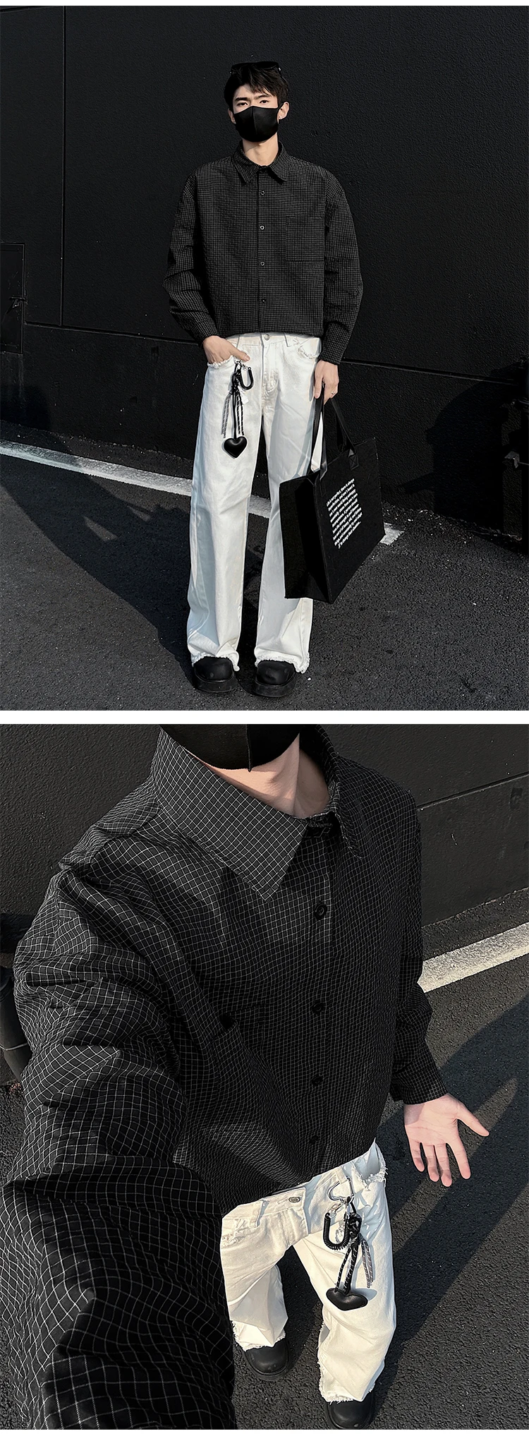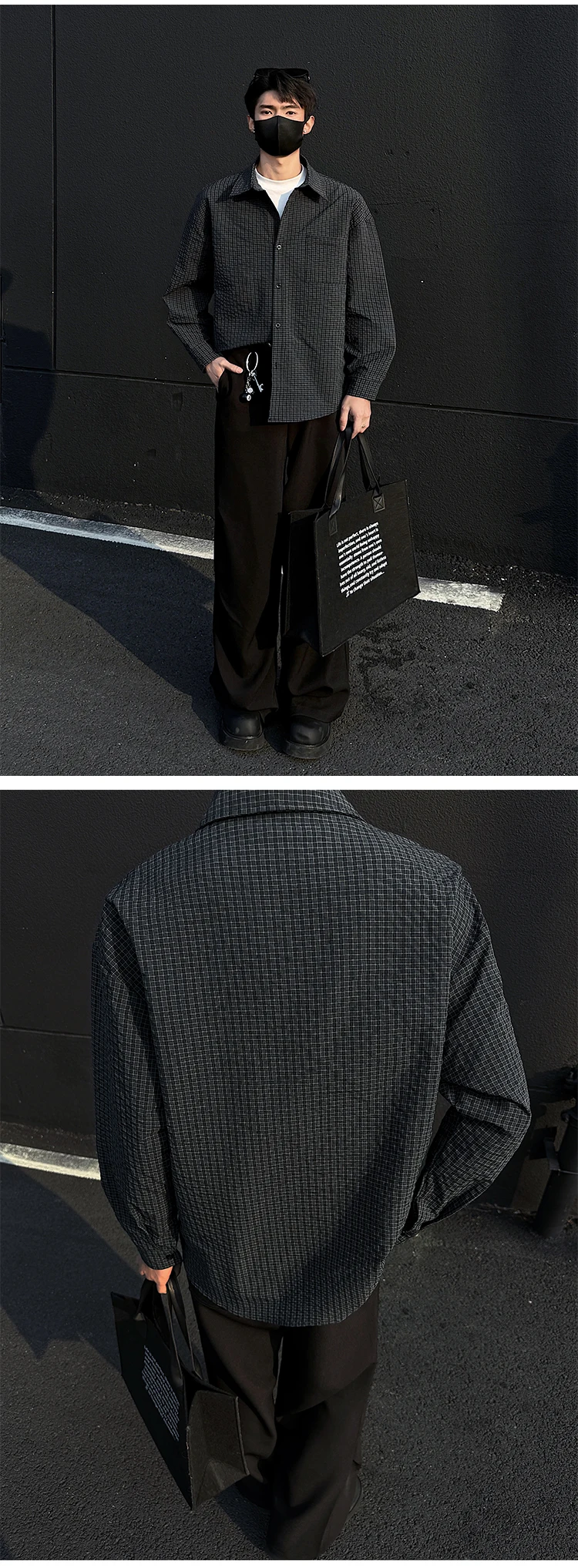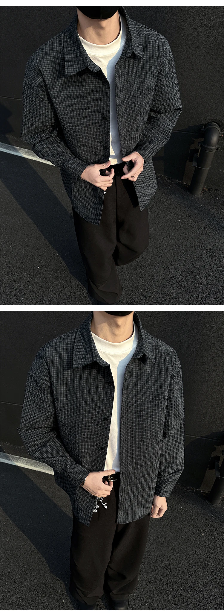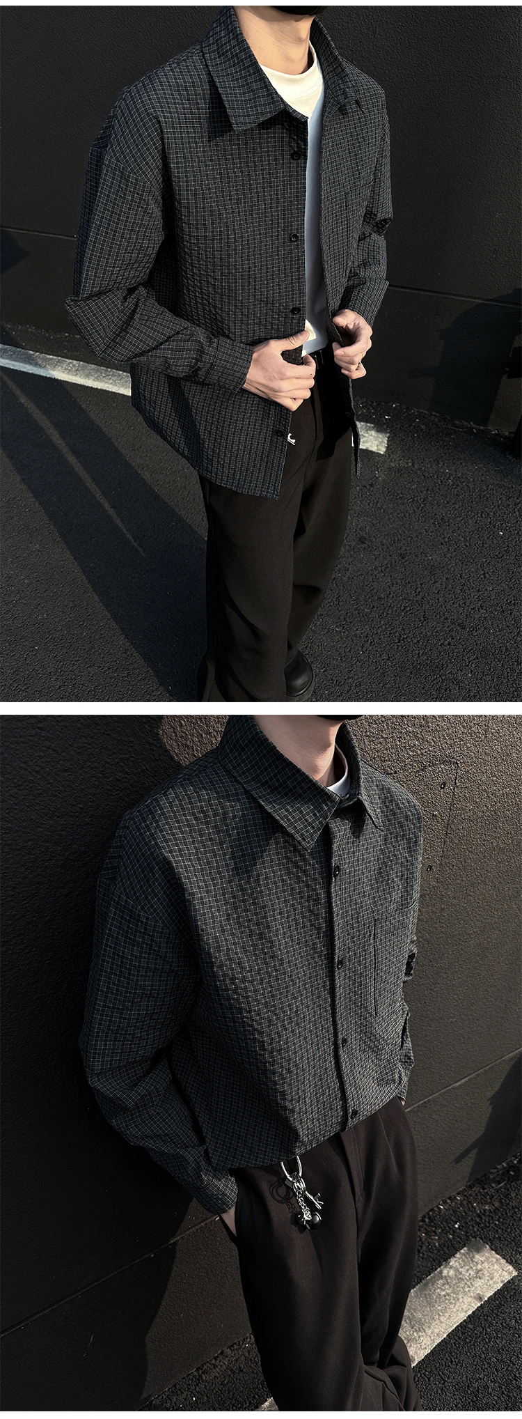Black White Long-sleeved Shirt Men Fashion Social Mens Dress Shirt Korean Loose Casual bubble Shirts Mens summer trend