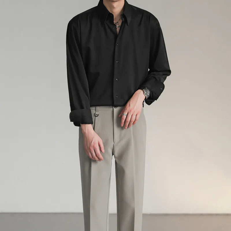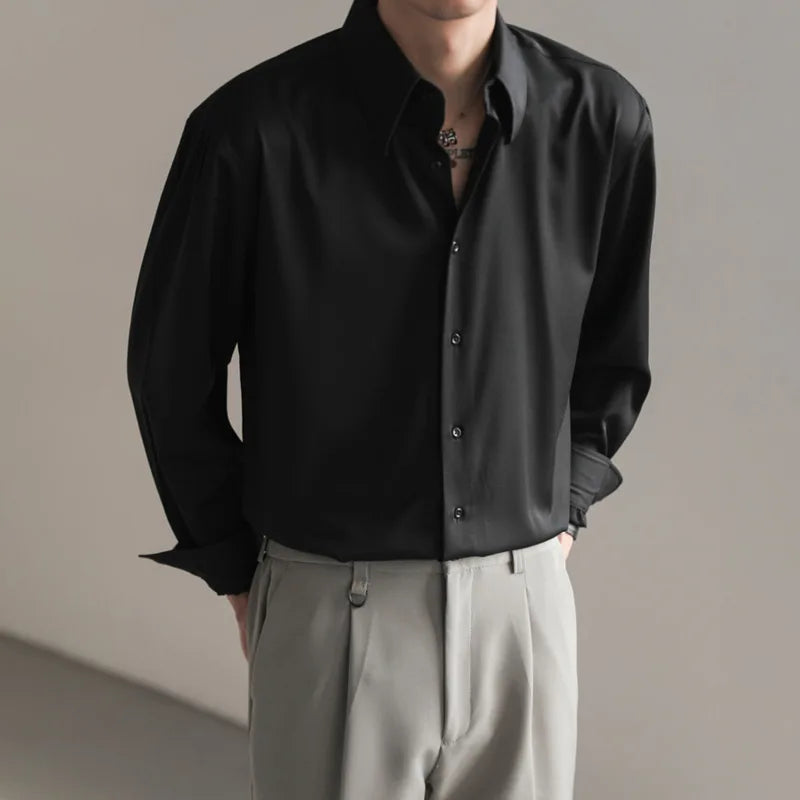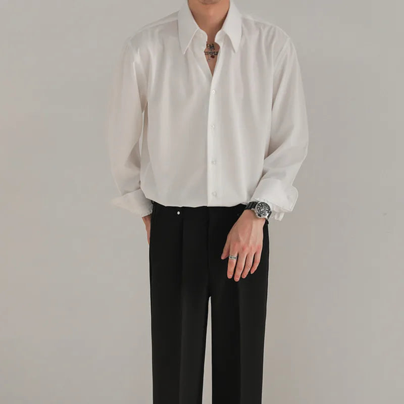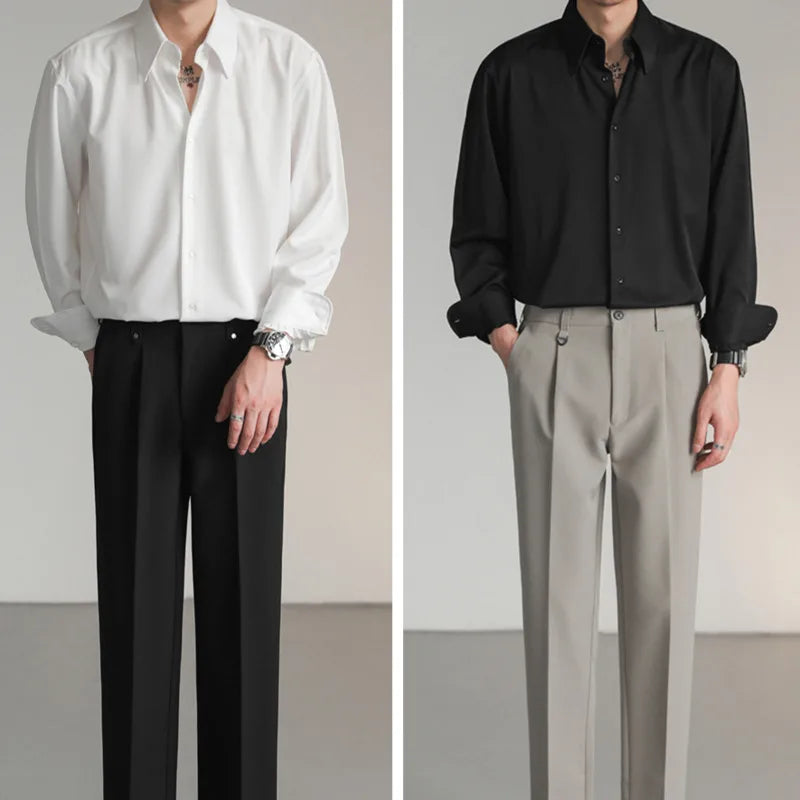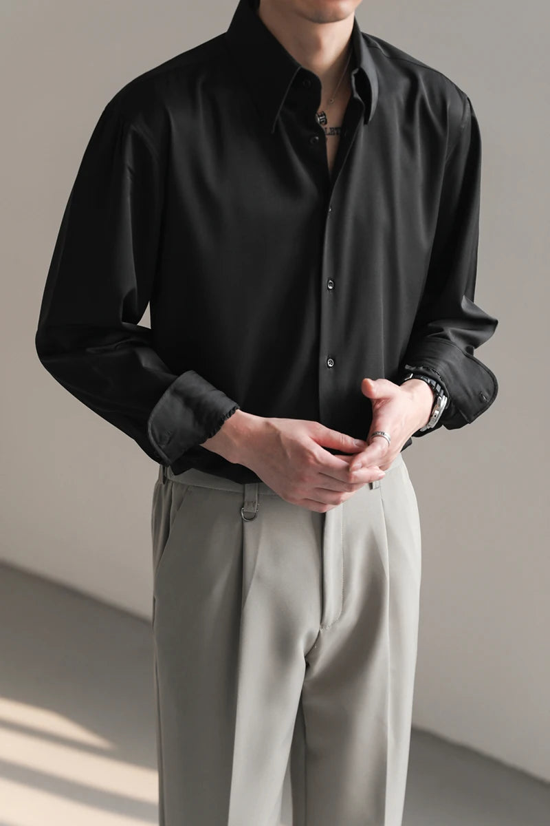 Black White Shirt Men Fashion Social Mens Dress Shirt Korean Loose Long Sleeved Shirt Mens Office Formal Shirts Ice Silk M-2XL