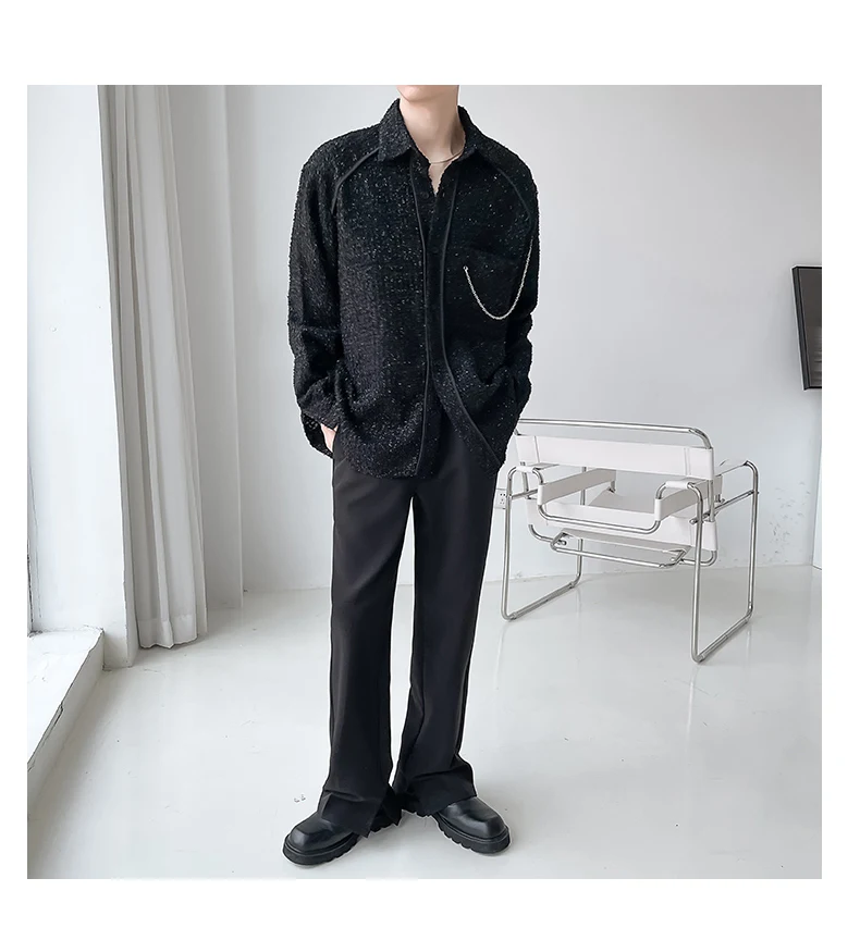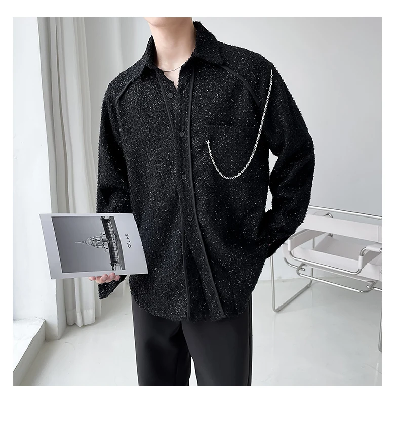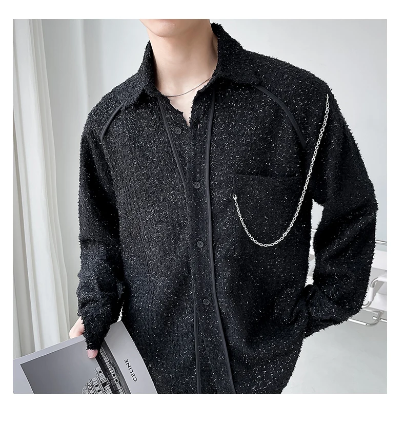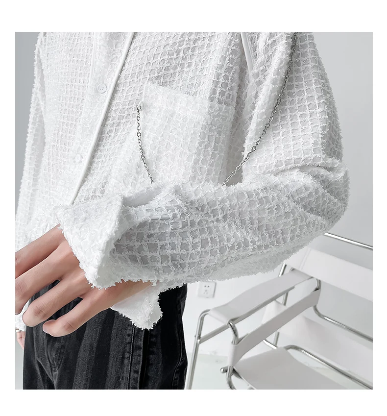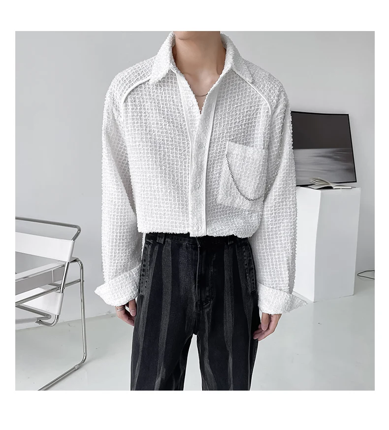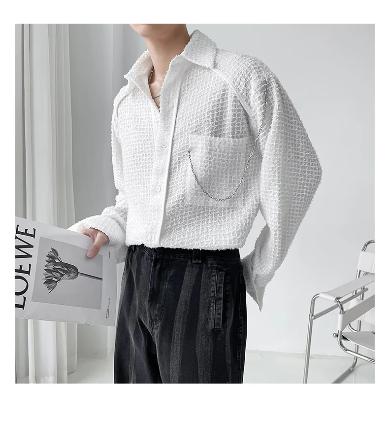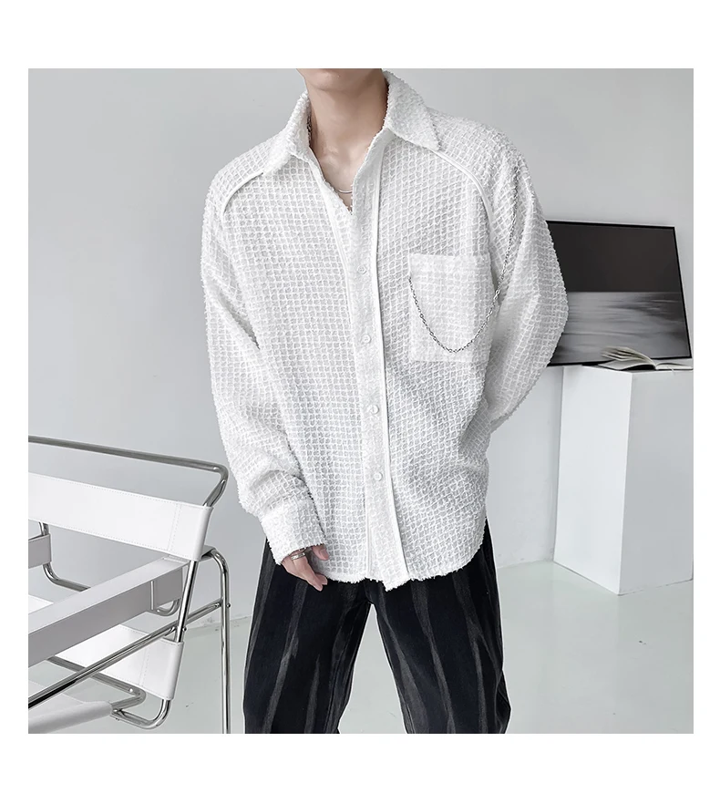 Chain Long Sleeved Shirt Men Fashion Society Mens Black Dress Shirt Korean Loose Casual White Shirt Mens Office Formal Shirts