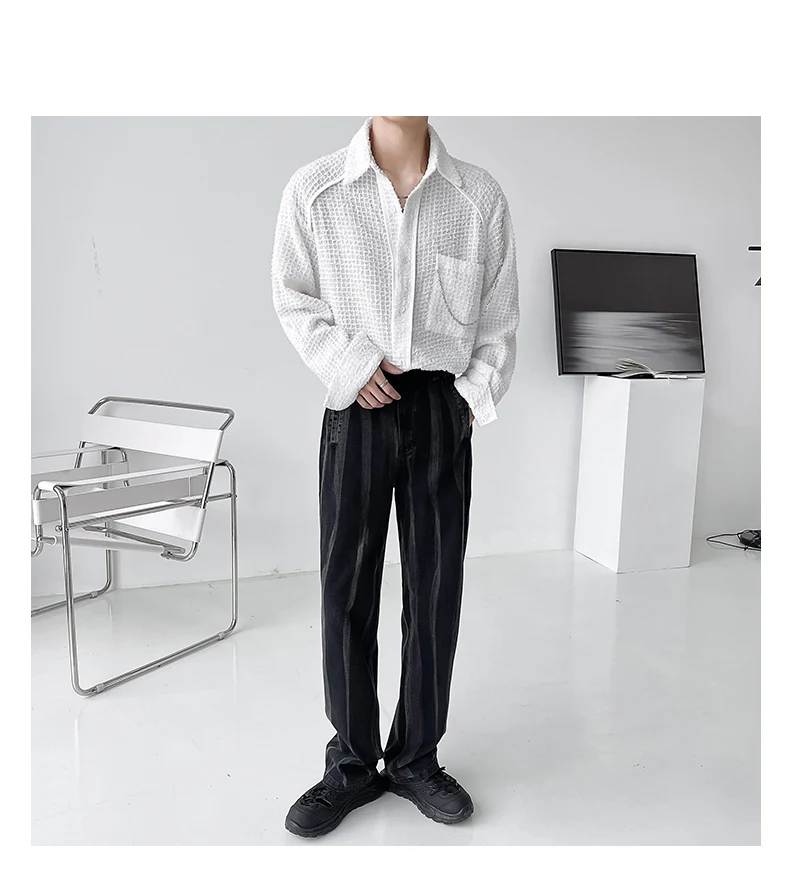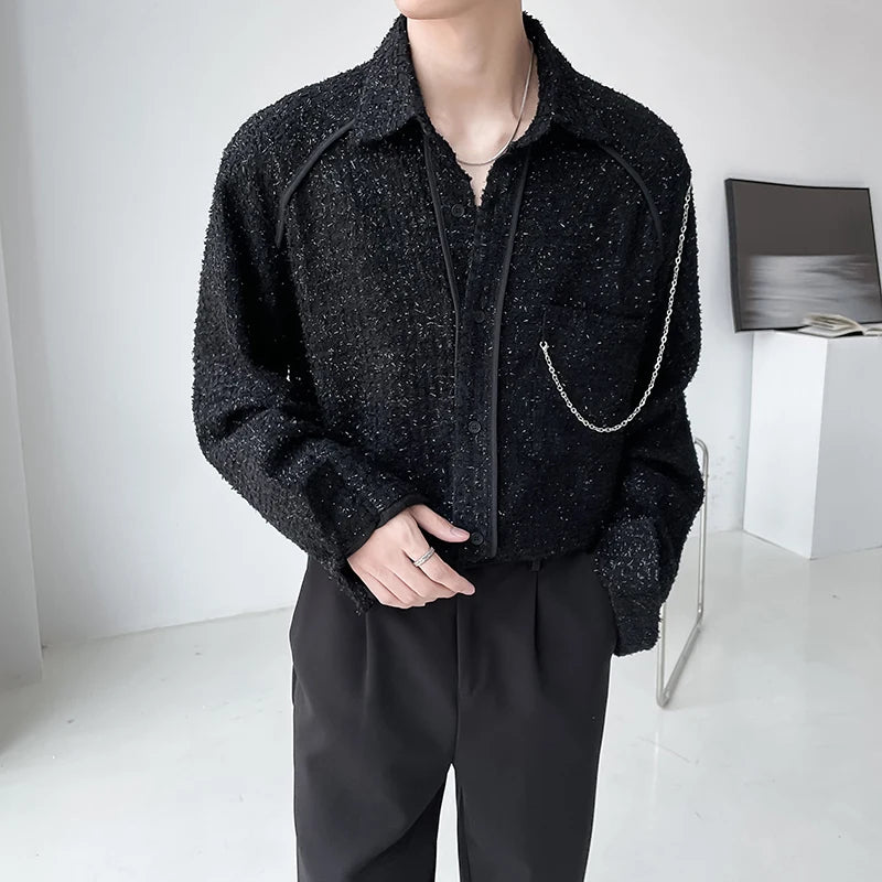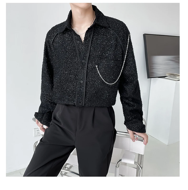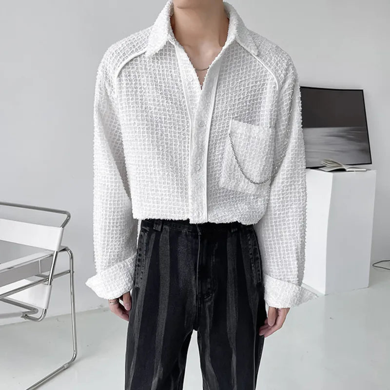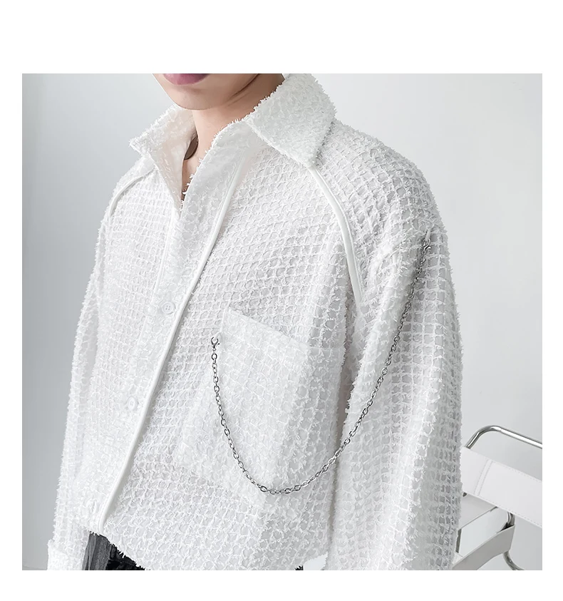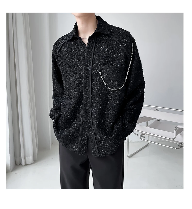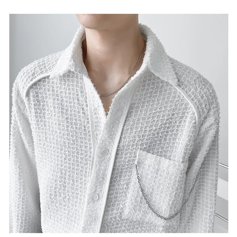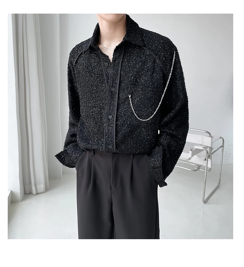 Chain Long Sleeved Shirt Men Fashion Society Mens Black Dress Shirt Korean Loose Casual White Shirt Mens Office Formal Shirts