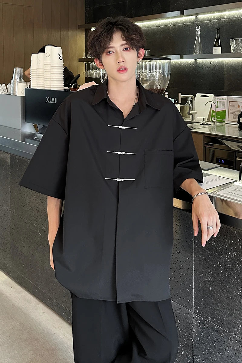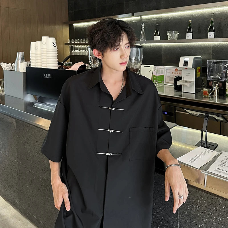 Chic Buttons Decor Shirt Men Lapel Short Sleeve Korean Style Fashion Men Clothing Summer Personality Streetwear Casual Shirts