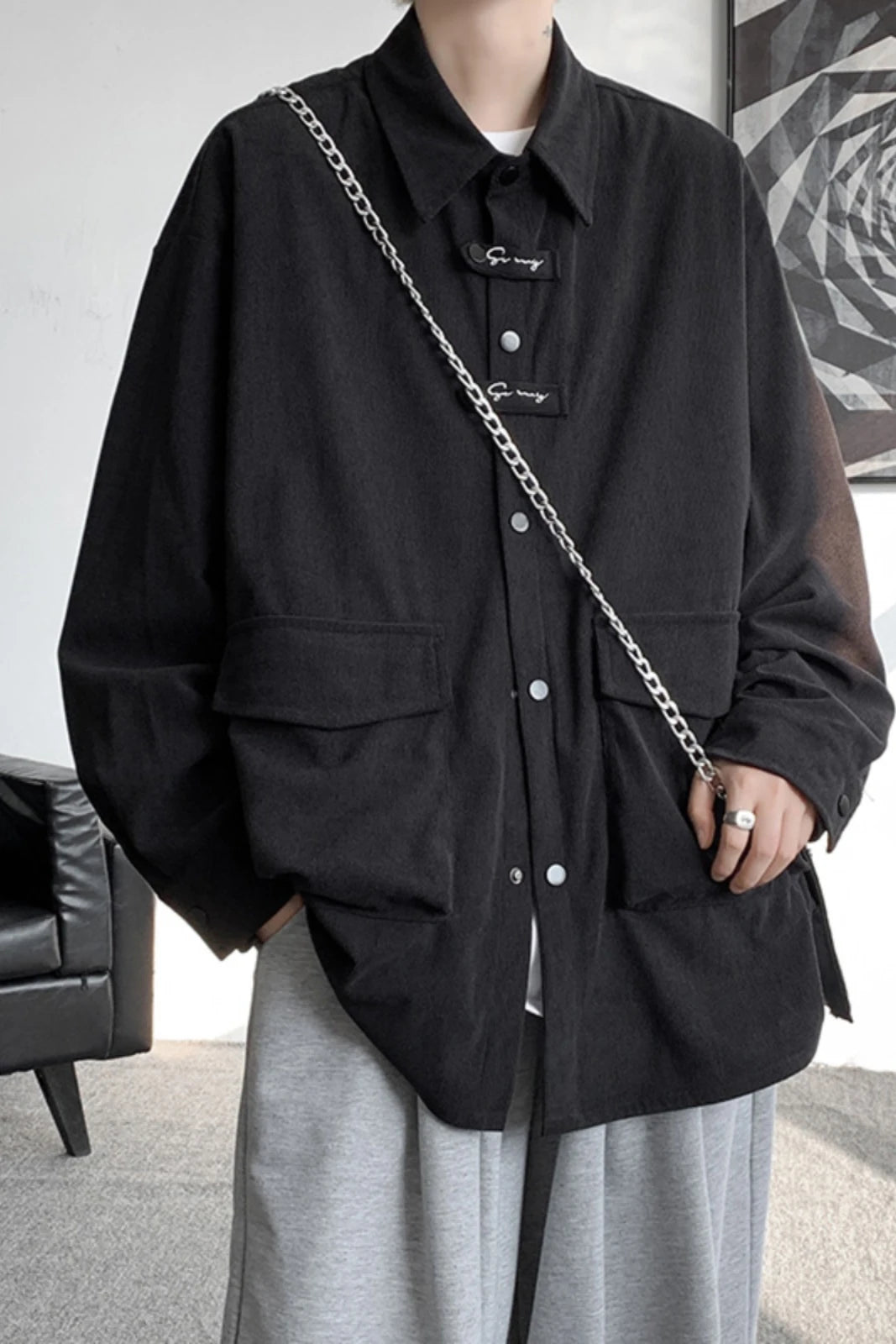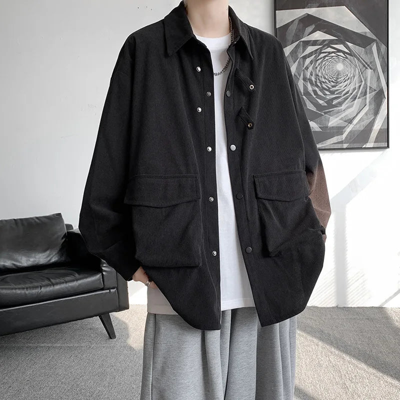 Corduroy Shirt Men Casual Turn Down Button Long Sleeve Shirts Streetwear Leisure Luxury Clothing Chemise Homme