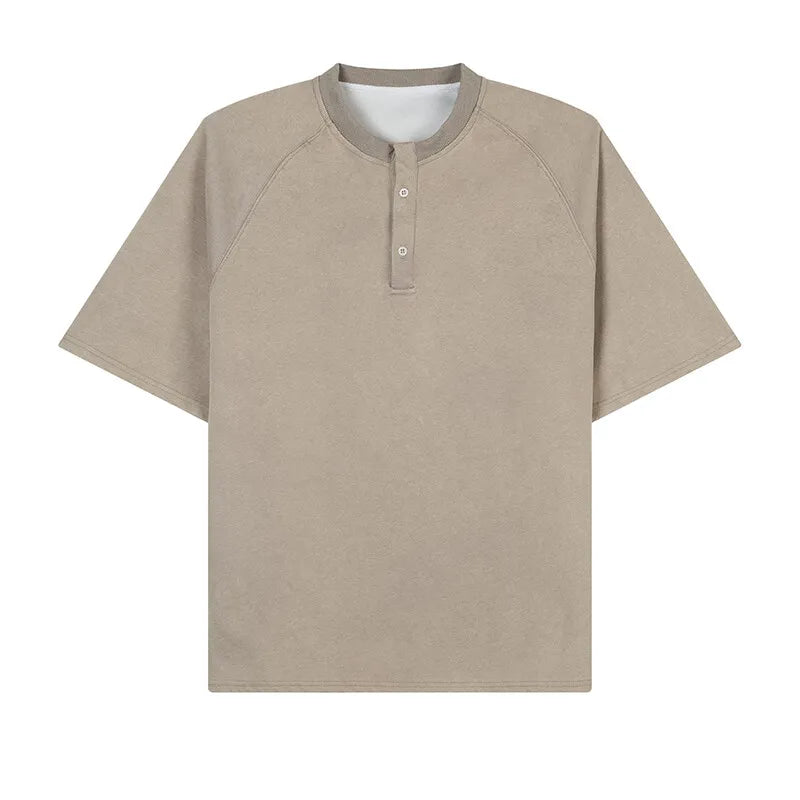 Cotton Breathable Buttoned Crew Neck Tshirt men Casual Comfort Lightweight Fashion Tee Top Basic Menswear Classic Plain tShirt