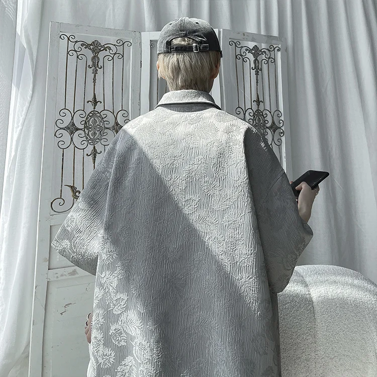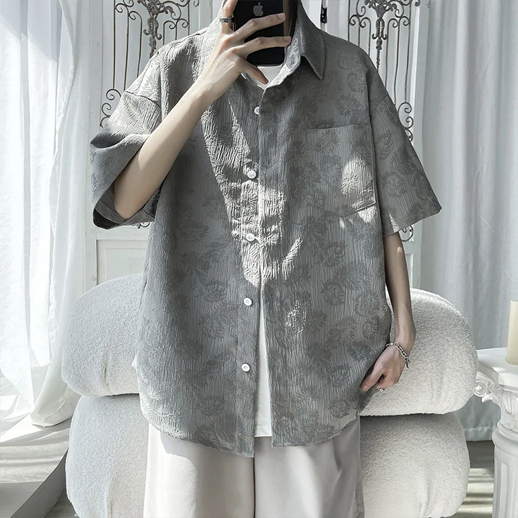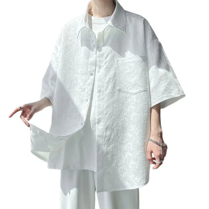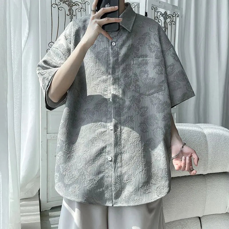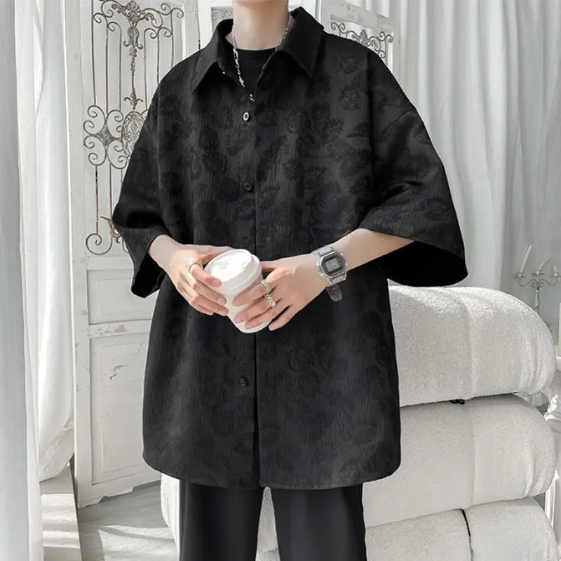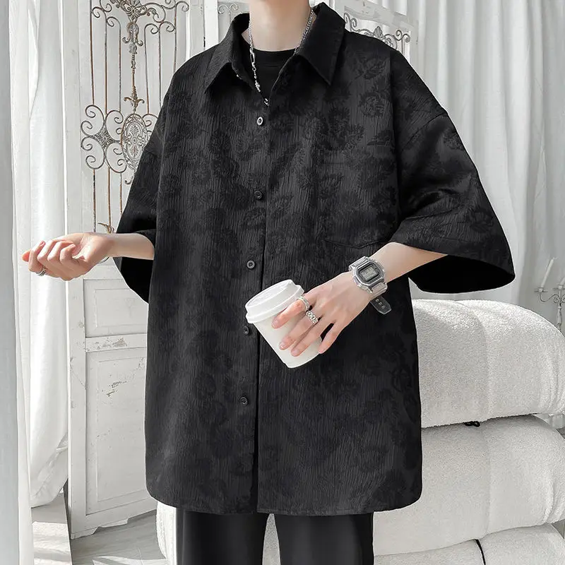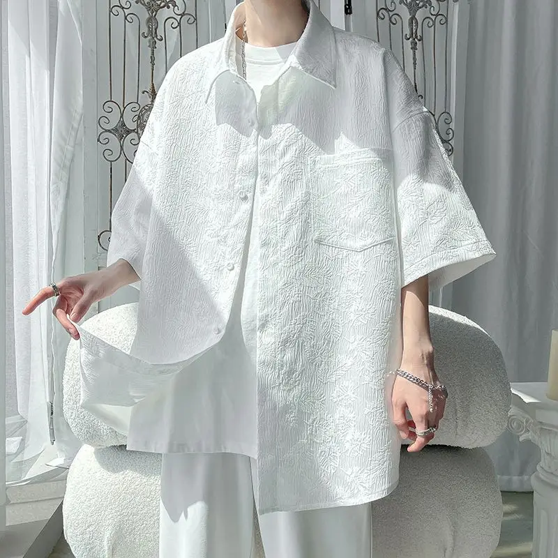 Elegant Fashion Harajuku Slim Fit Ropa Hombre Loose Casual All Match Outerwear Button Pockets Pointed Collar Middle Sleeve Shirt