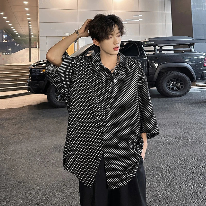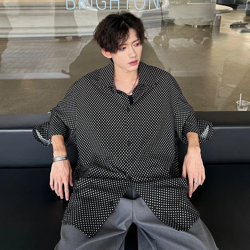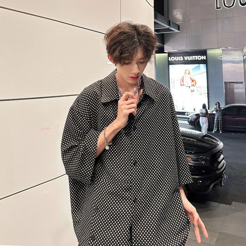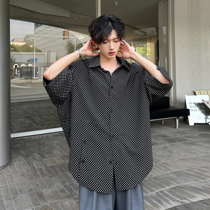 Fashion Plaid Batwing Blouse Men 3/4 Sleeves Elegant Shirt Button Decor Women Tops Oversized Casual Streetwear Party Shirts