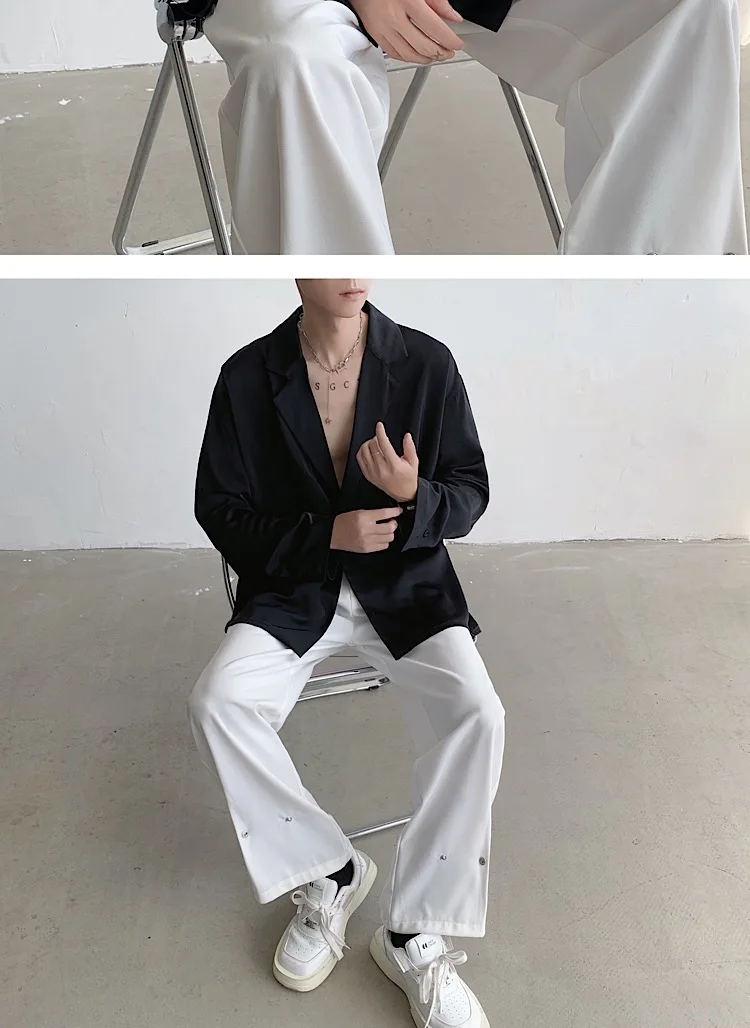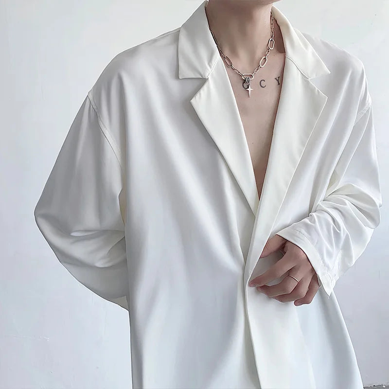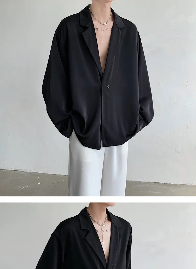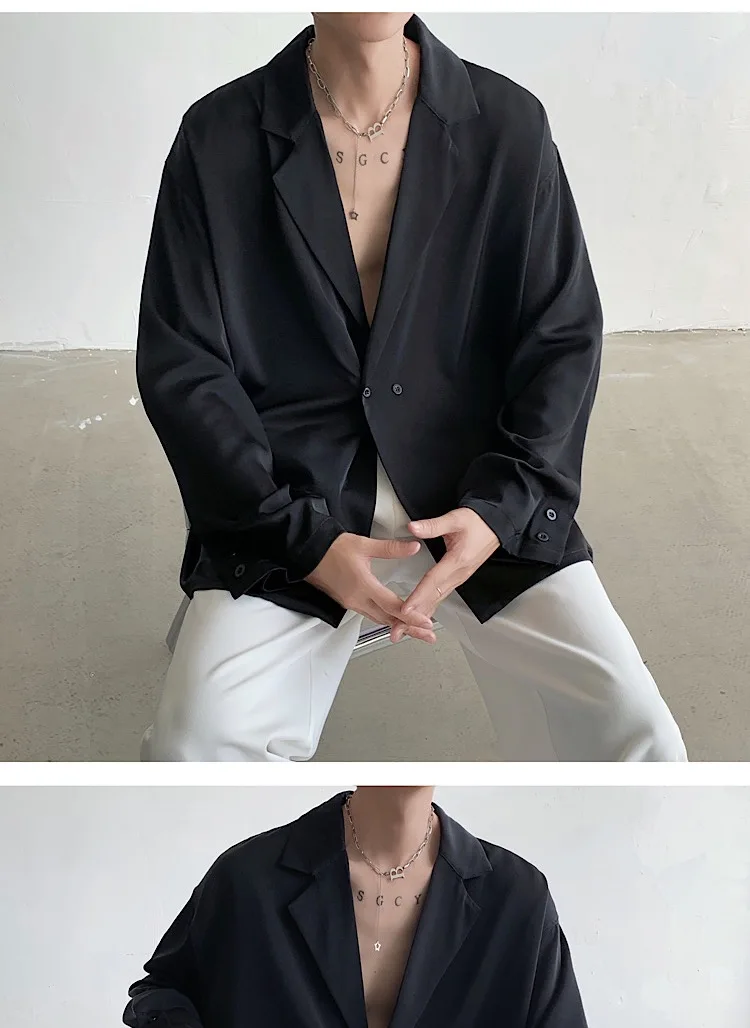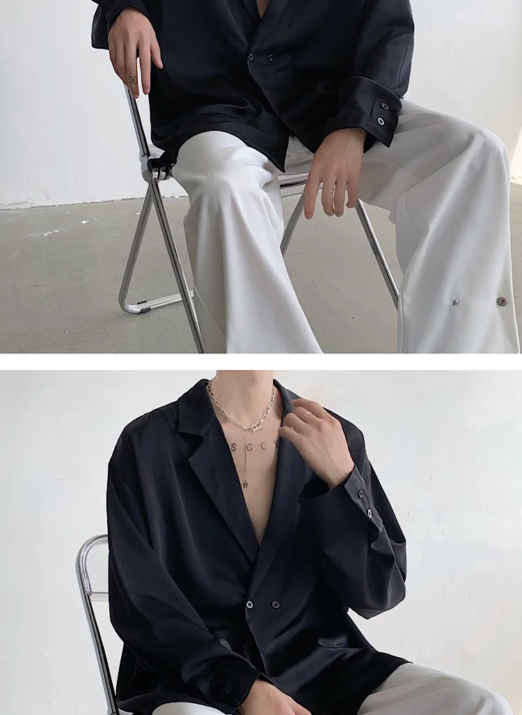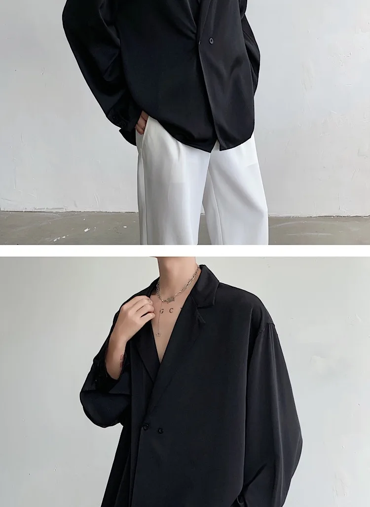 Korean Men Solid Color Lapel Double-breasted Casual Shirt Fashion Long Sleeve Tops Streetwear Loose Leisure Camisa Masculina