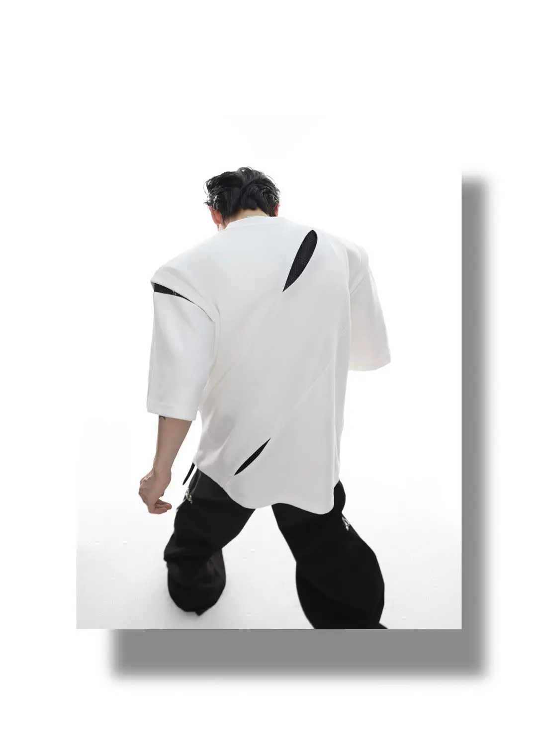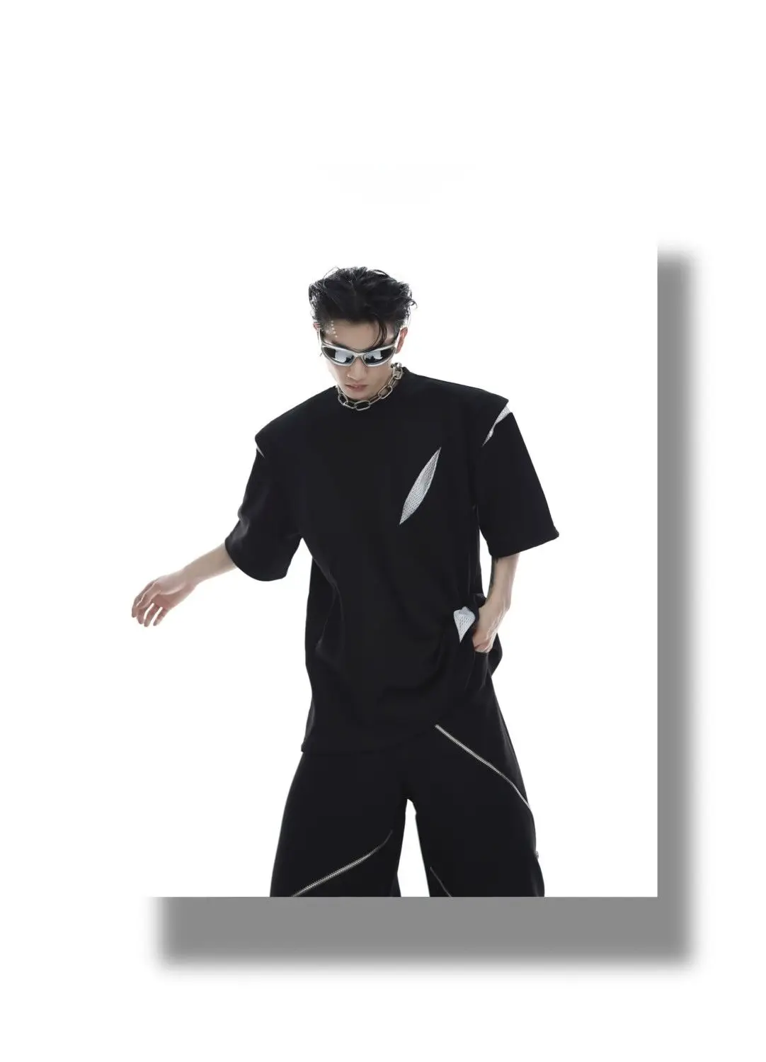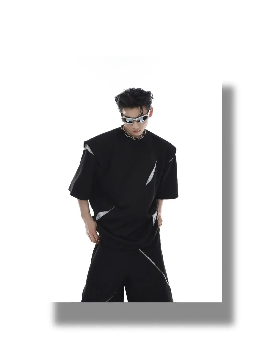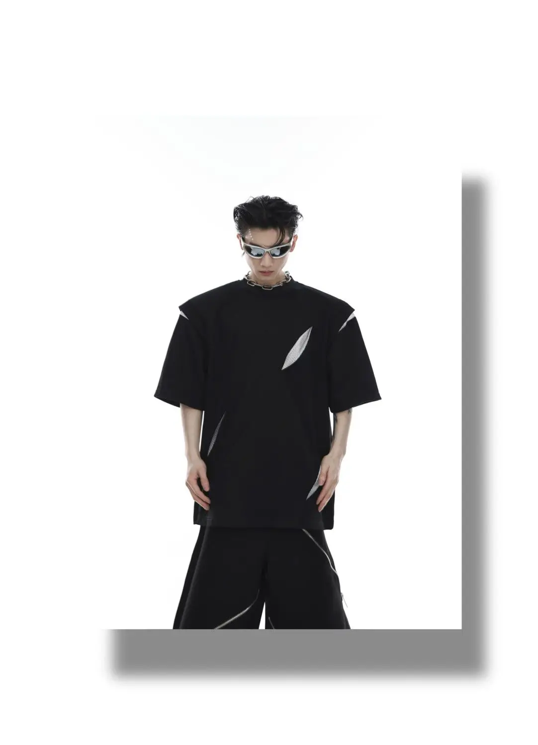 Korean Niche Deconstruction Segmented Shoulder Pad Short Sleeve Splicing Design T-shirt High-end Trendy Half-sleeved Men Women