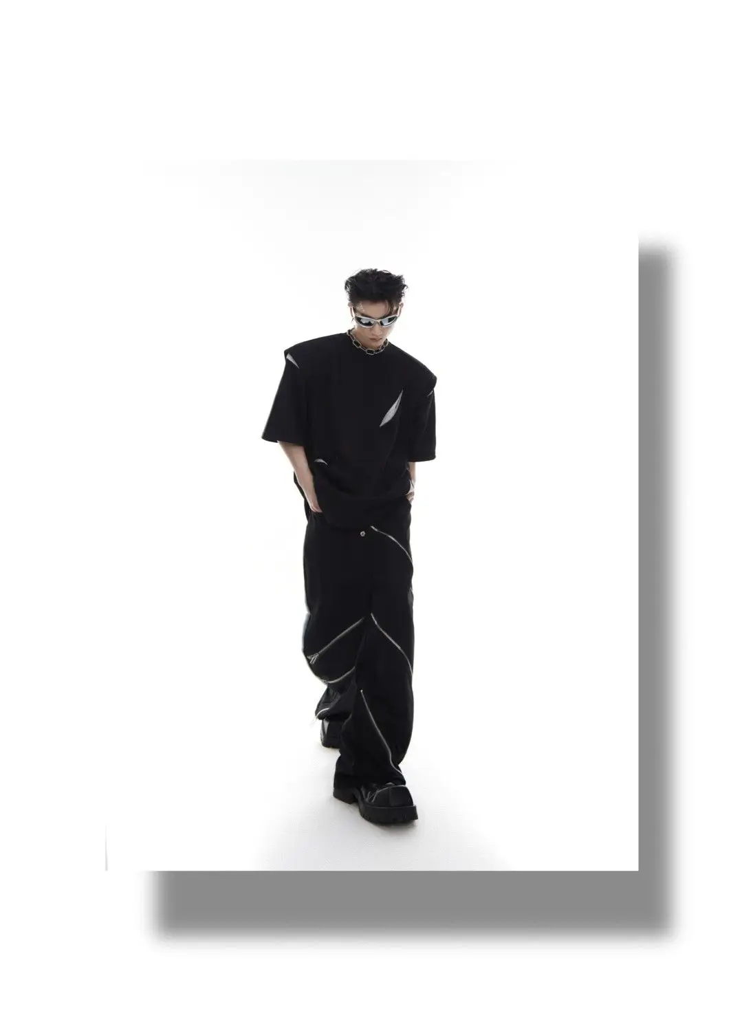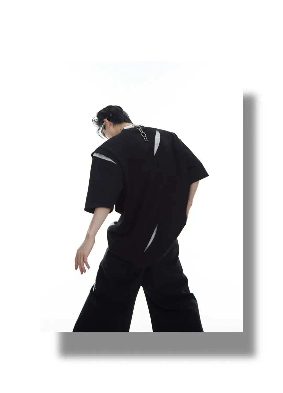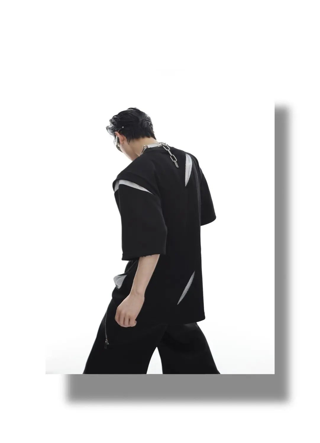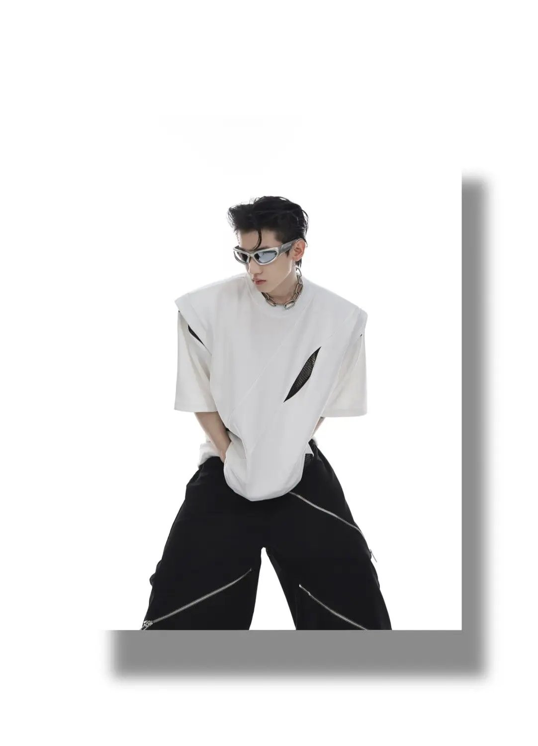 Korean Niche Deconstruction Segmented Shoulder Pad Short Sleeve Splicing Design T-shirt High-end Trendy Half-sleeved Men Women