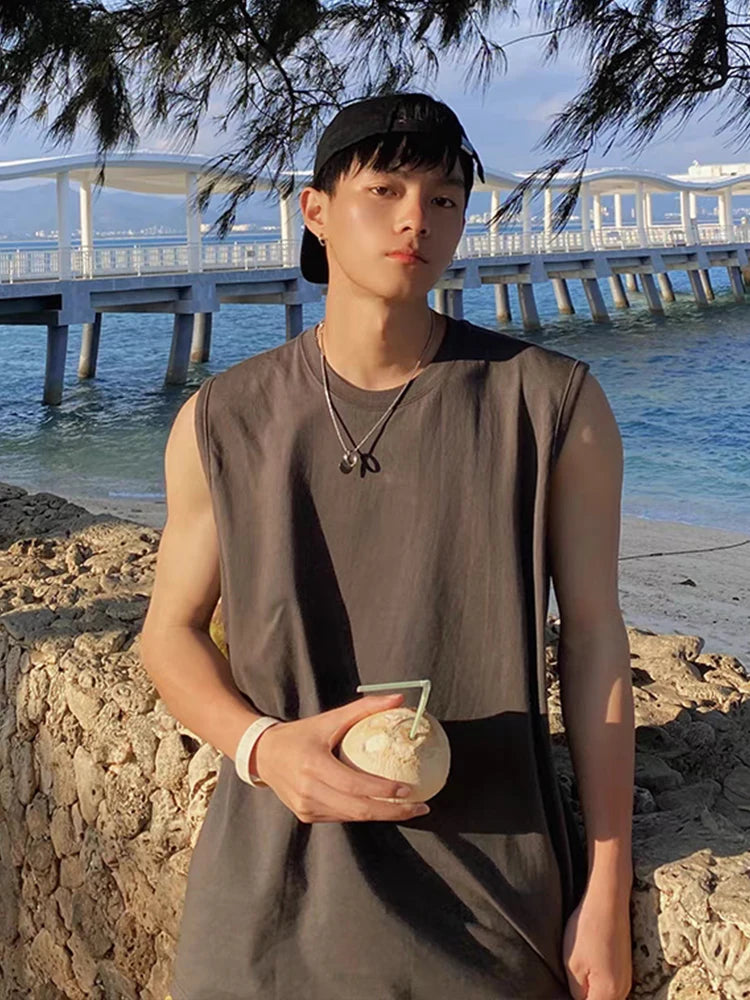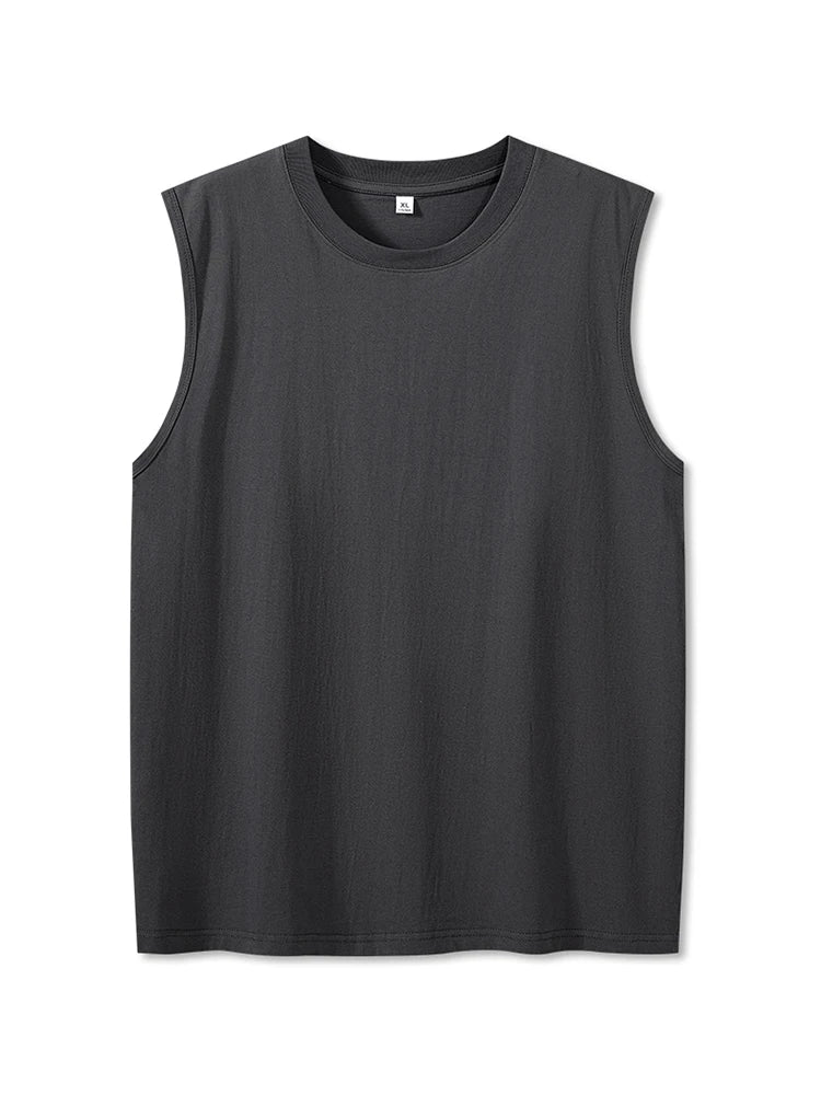 Korean Style Men Tank Top Loose Fit Gym Vest Sports Tops 100% Cotton Men's Basic Sleeveless Tee Shirts