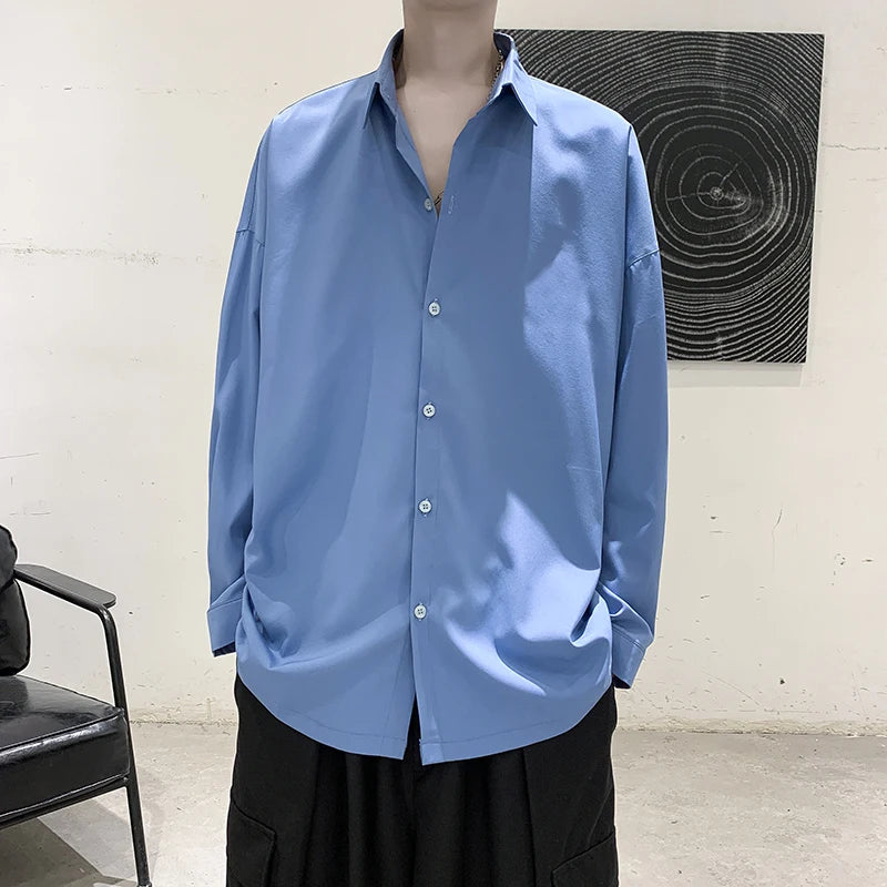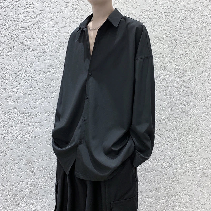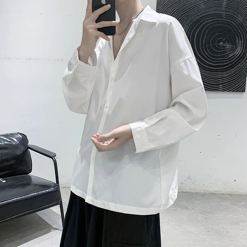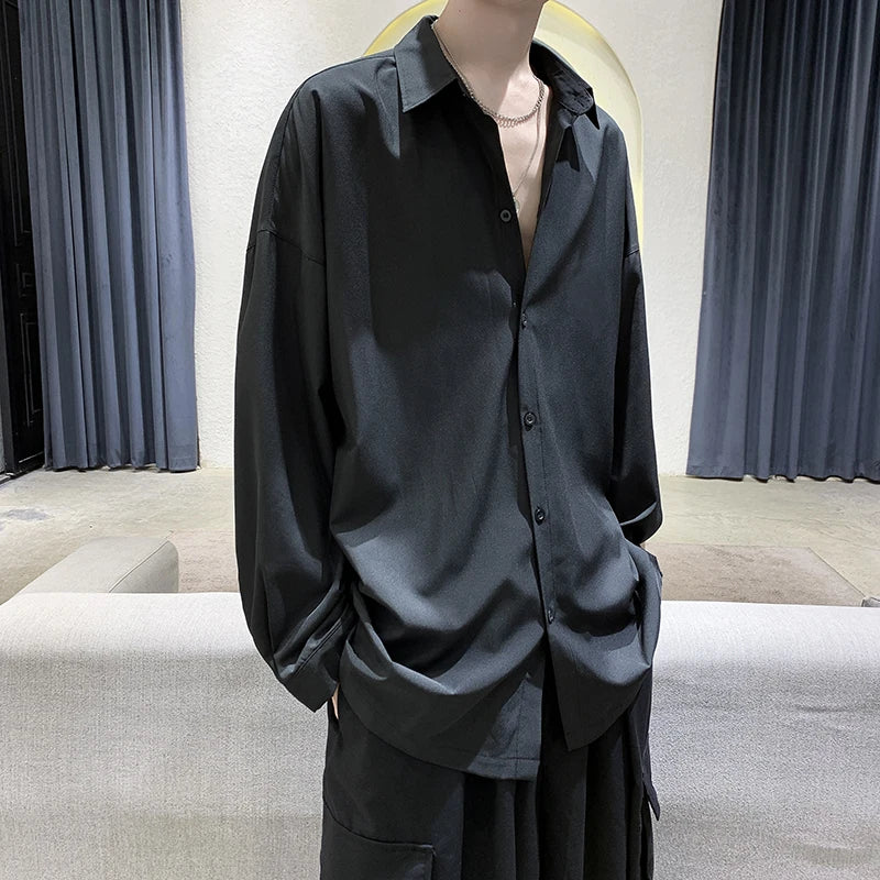 Men Black Solid Long-sleeved Shirts Mens Harajuku Fashion Oversize Shirt Male Gray Casual Streetwear Loose Blouses Plus Size
