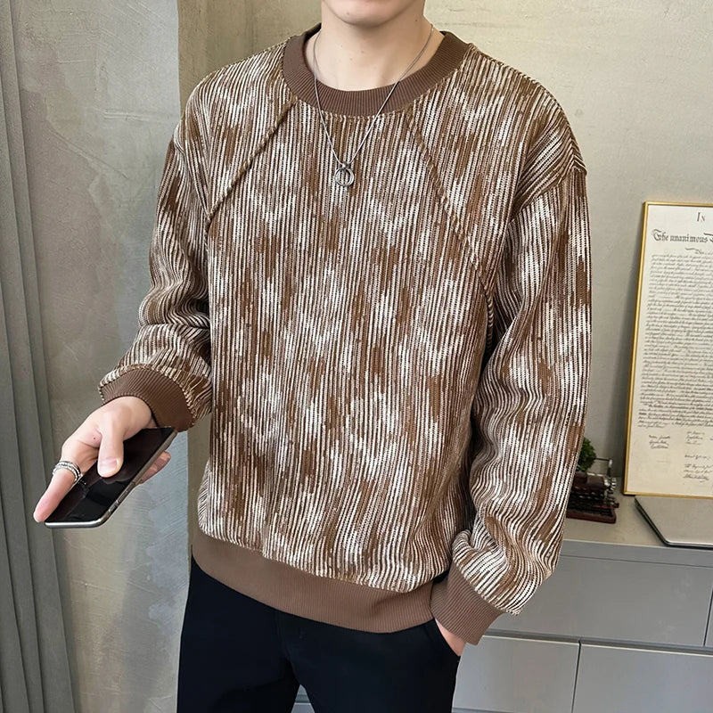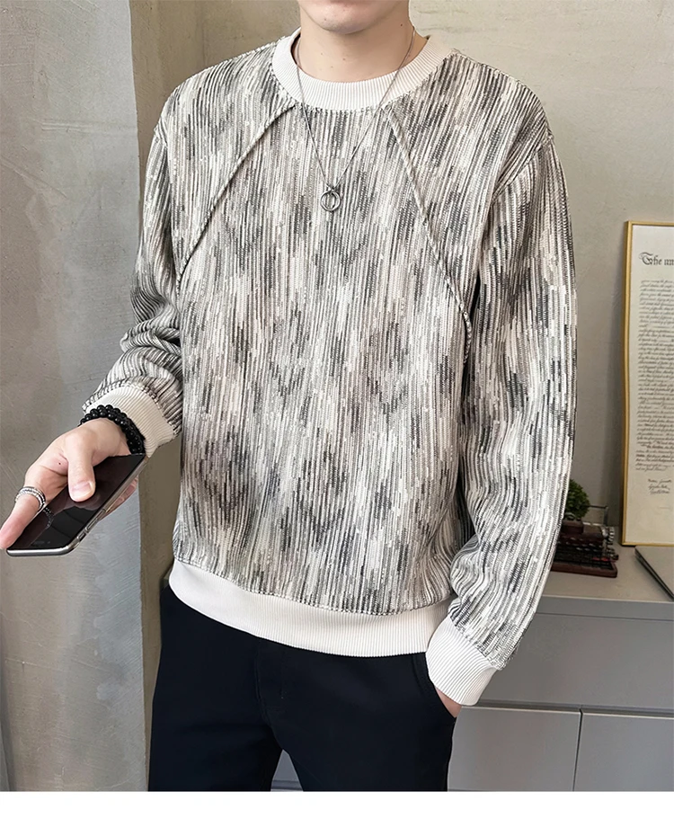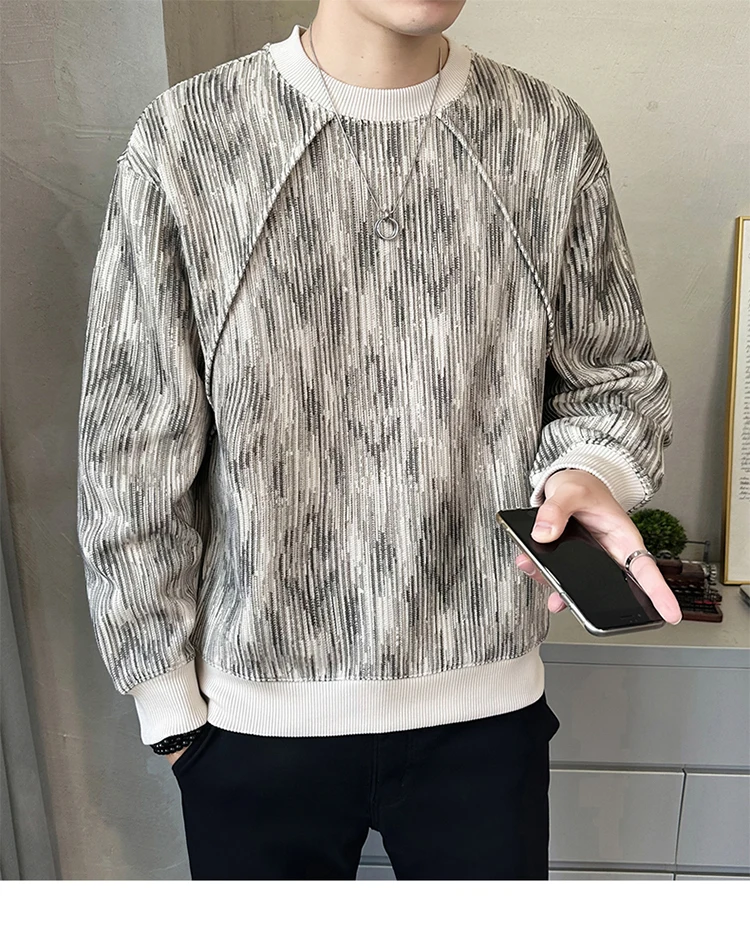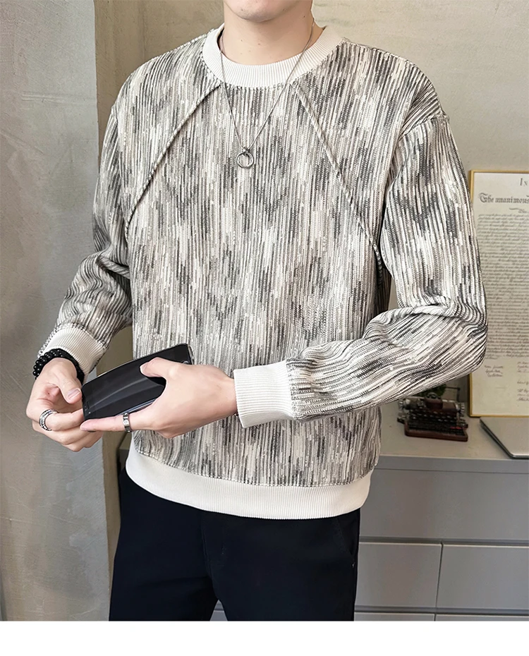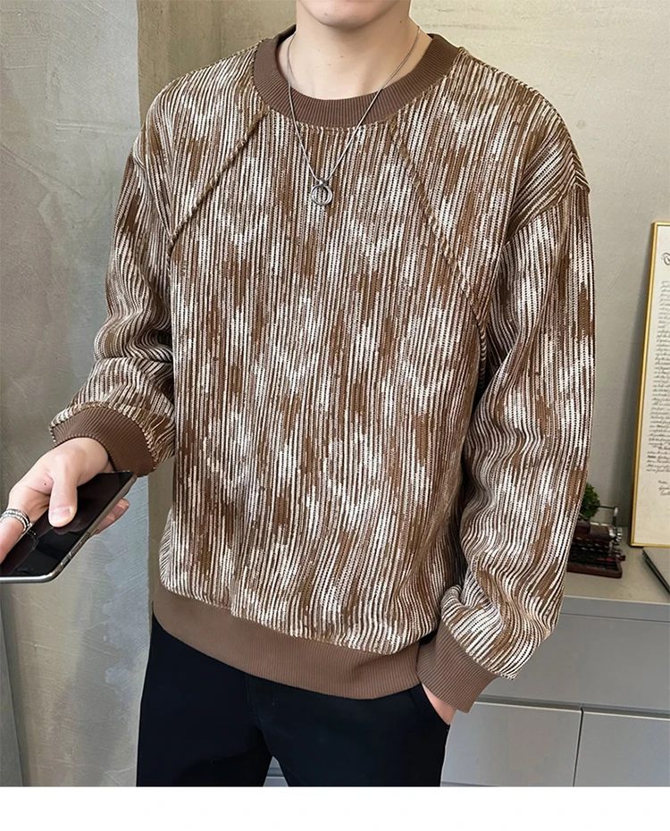 Gotmes Men's Autumn Round Neck Sweater Korean Loose Casual Oversize Knit Pullover Youth Trend Fashion Striped Sweater Men