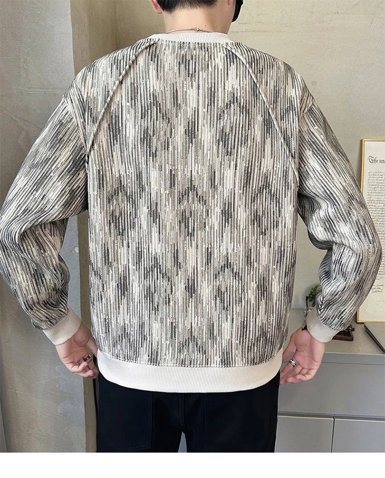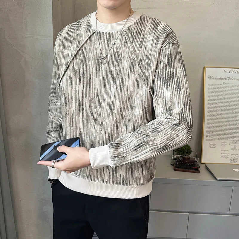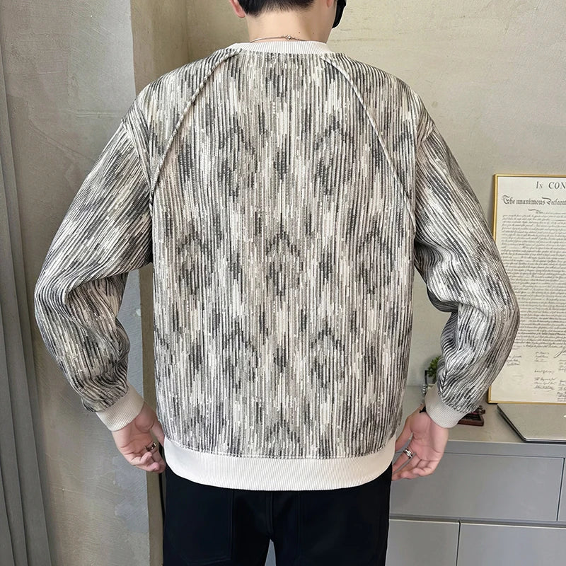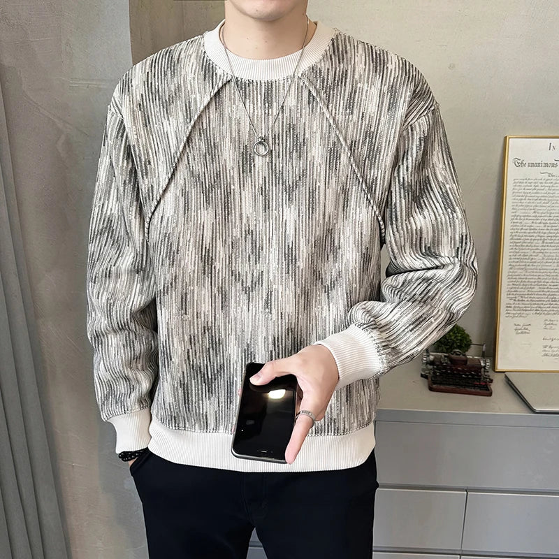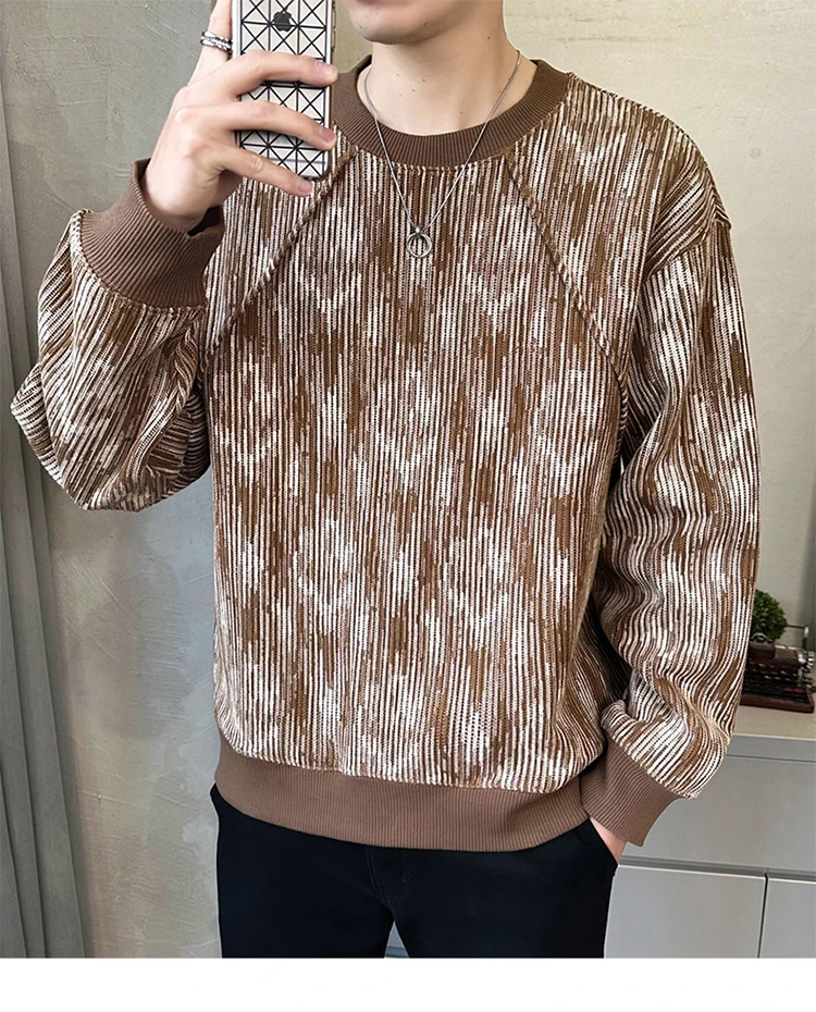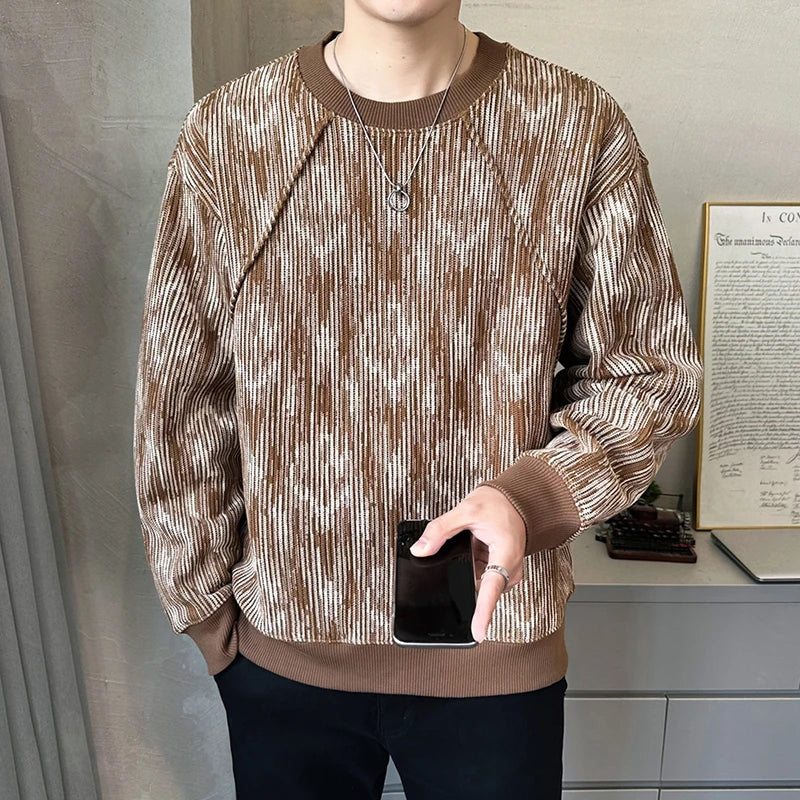 Gotmes Men's Autumn Round Neck Sweater Korean Loose Casual Oversize Knit Pullover Youth Trend Fashion Striped Sweater Men