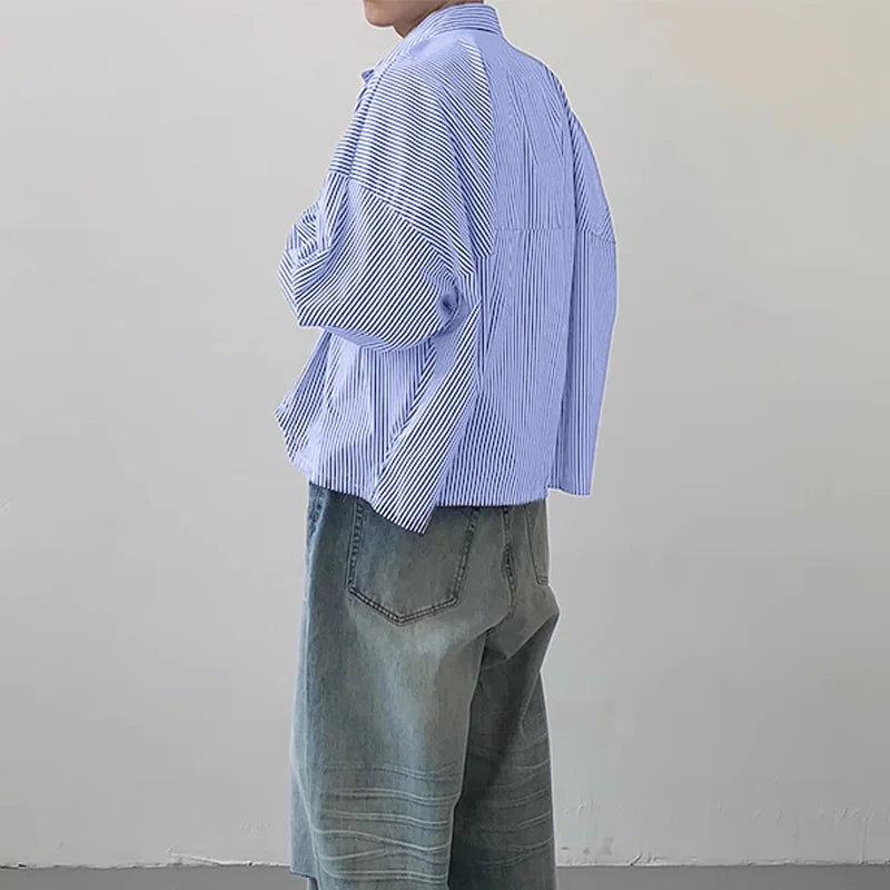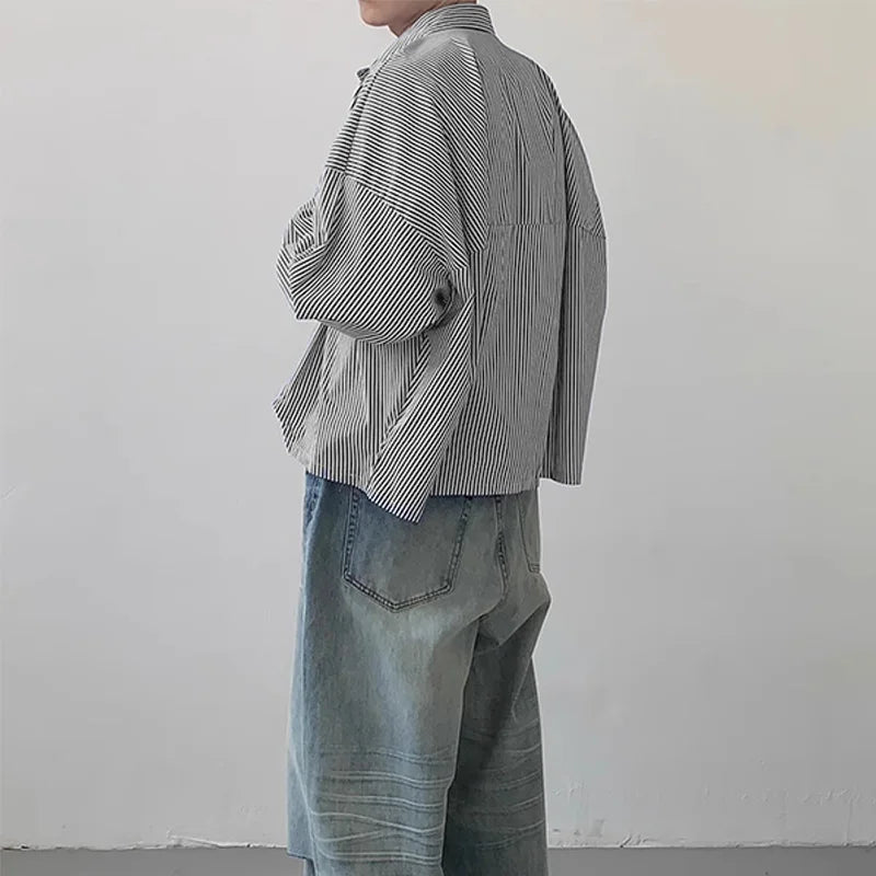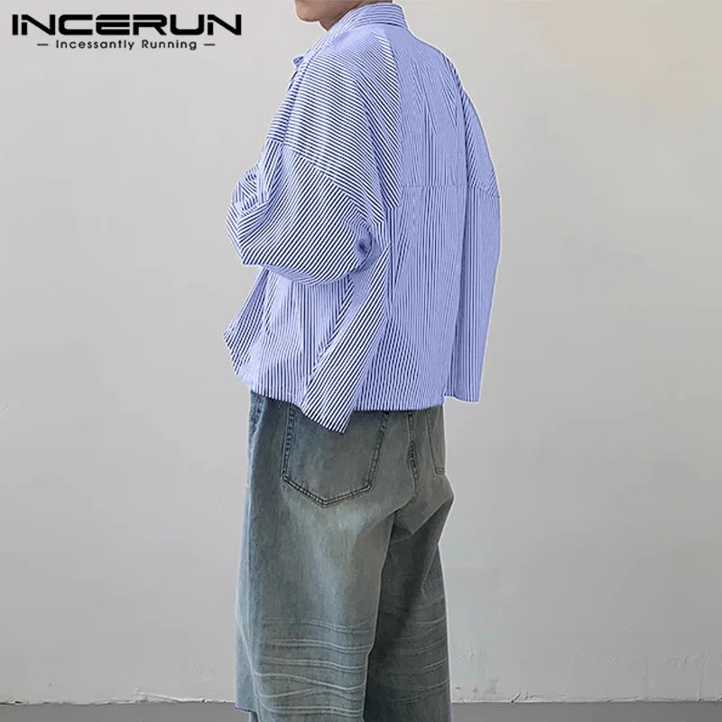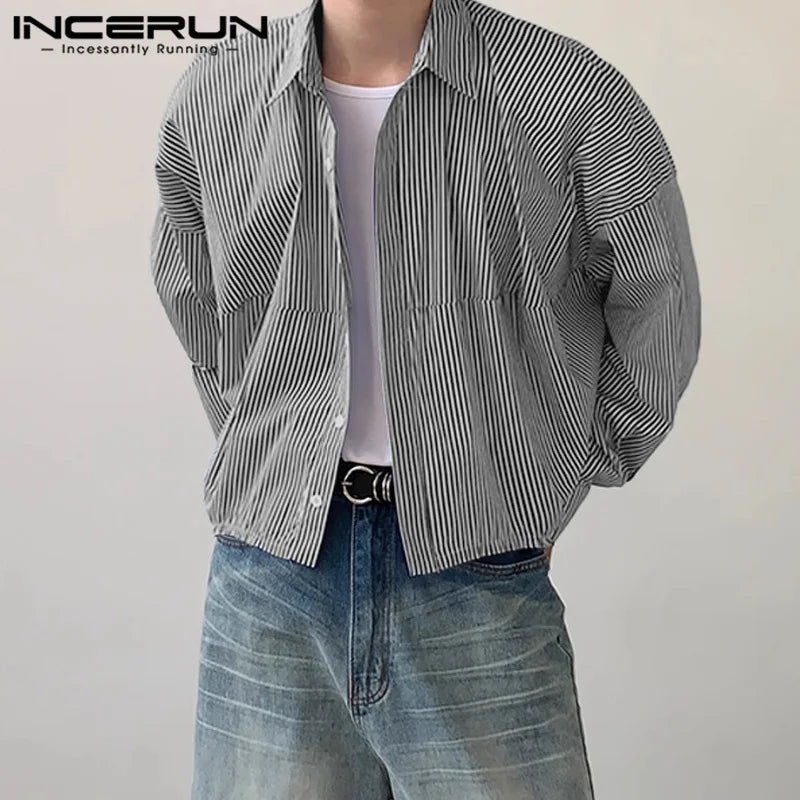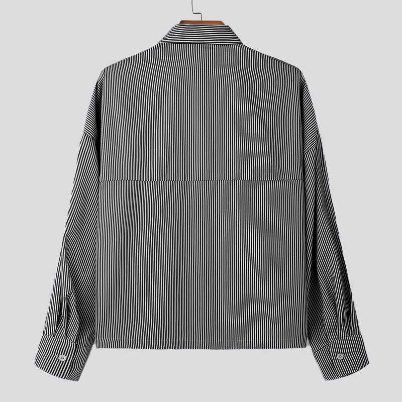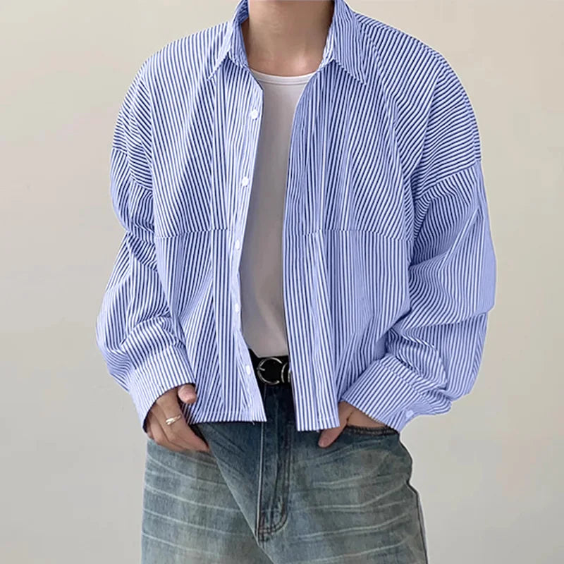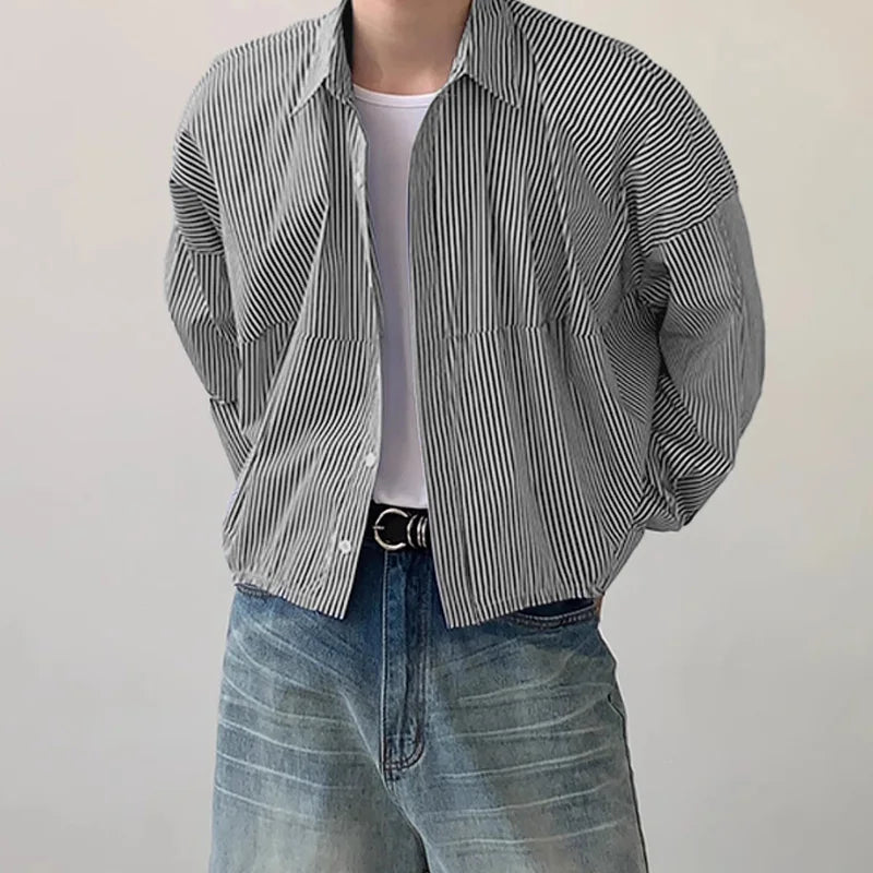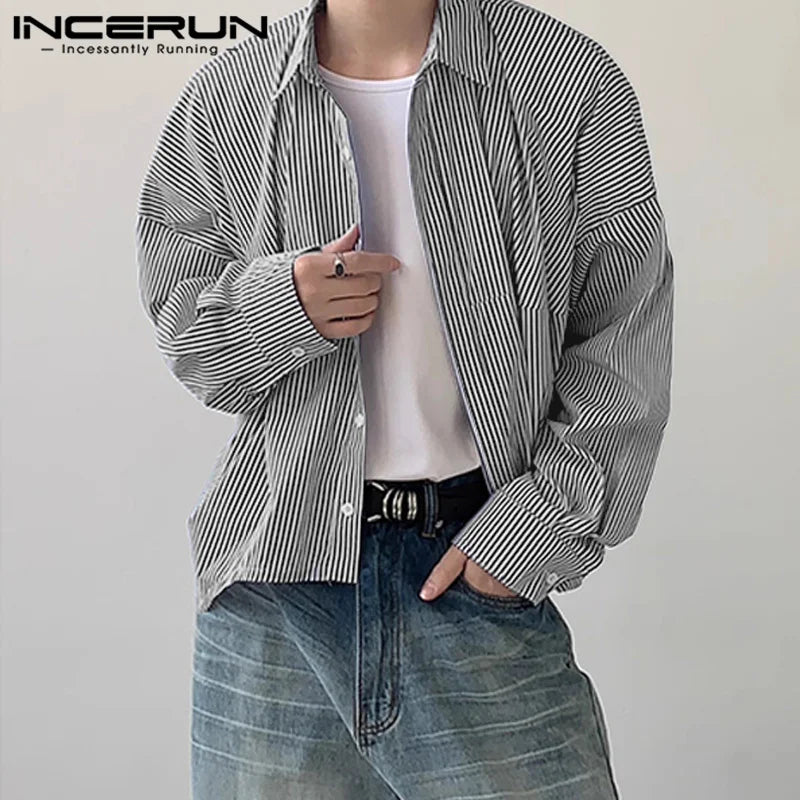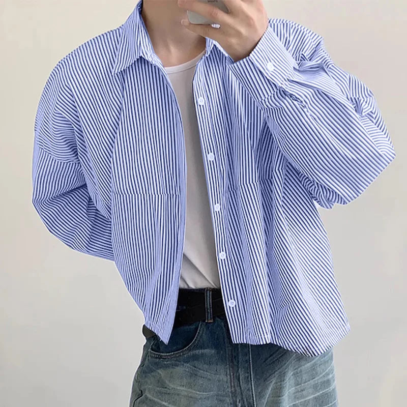 Men Striped Shirt Lapel Long Sleeve Loose Korean Style Men Clothing Streetwear 2024 Fashion Casual Male Shirts S-5XL