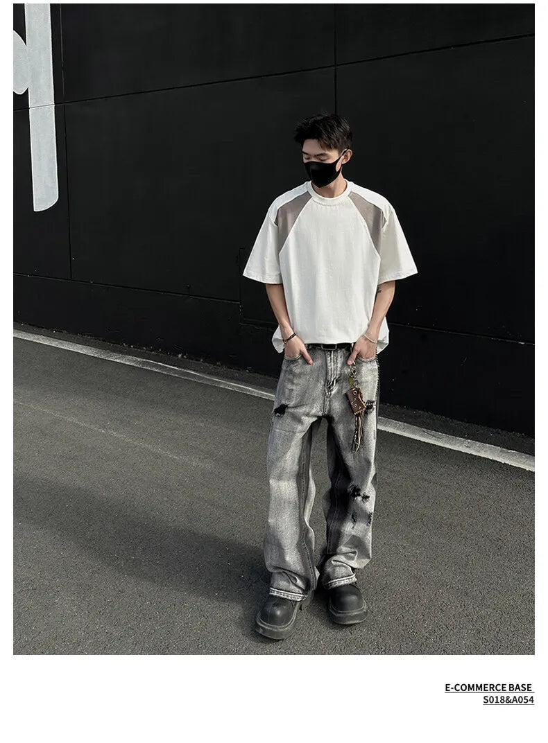 Men's High-End Mesh Ice Silk Short-Sleeved T-Shirt Shirt Short-Sleeved