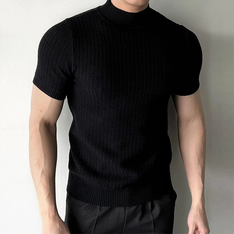 Men's Clothing Fashion Jacquarded Tops Luxury High Quality Knit O Neck Short-sleeved T-shirt Leisure Popular Retro Slim Knitwear