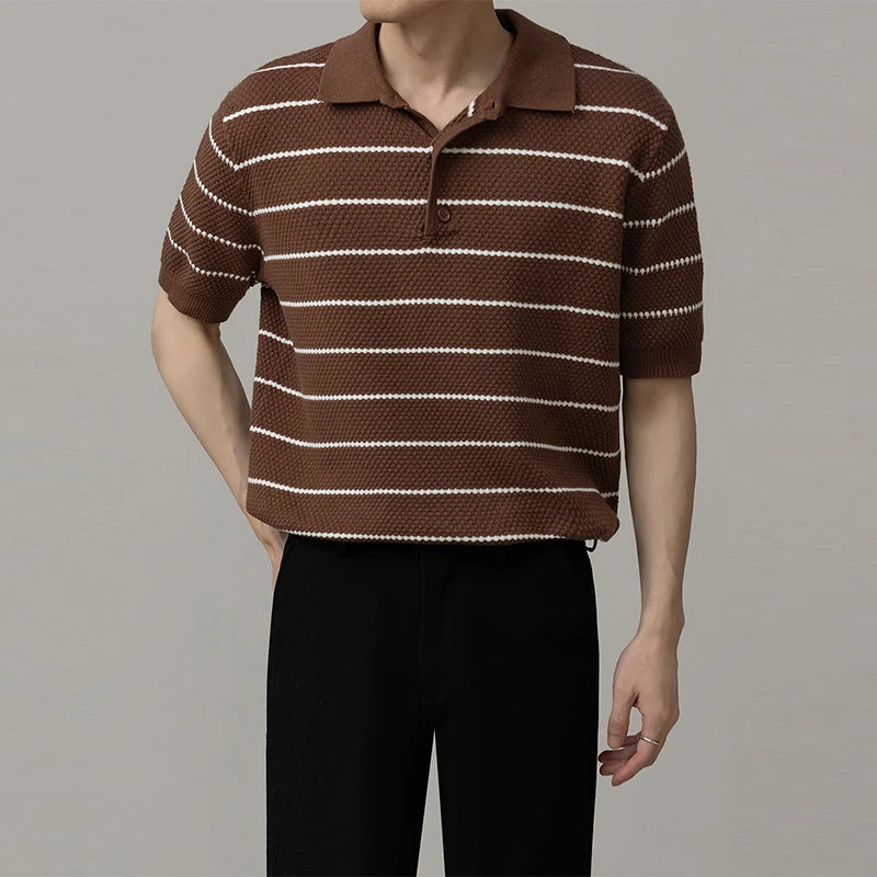 Men's Clothing Light Luxury Business Striped Polo Shirt Casual Slim-fit Knitted Short Sleeve T-shirt High Quality Patchwork Tops